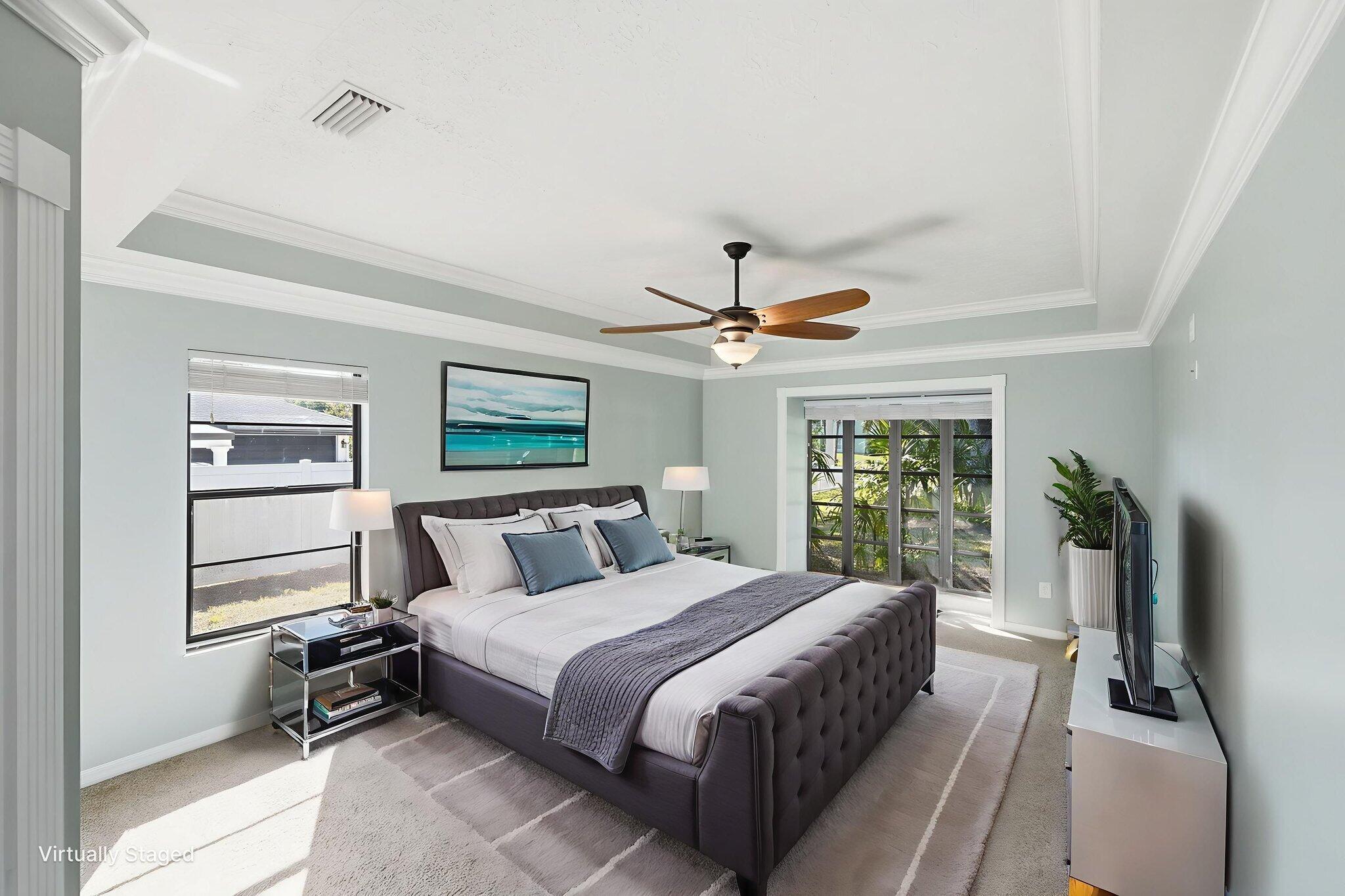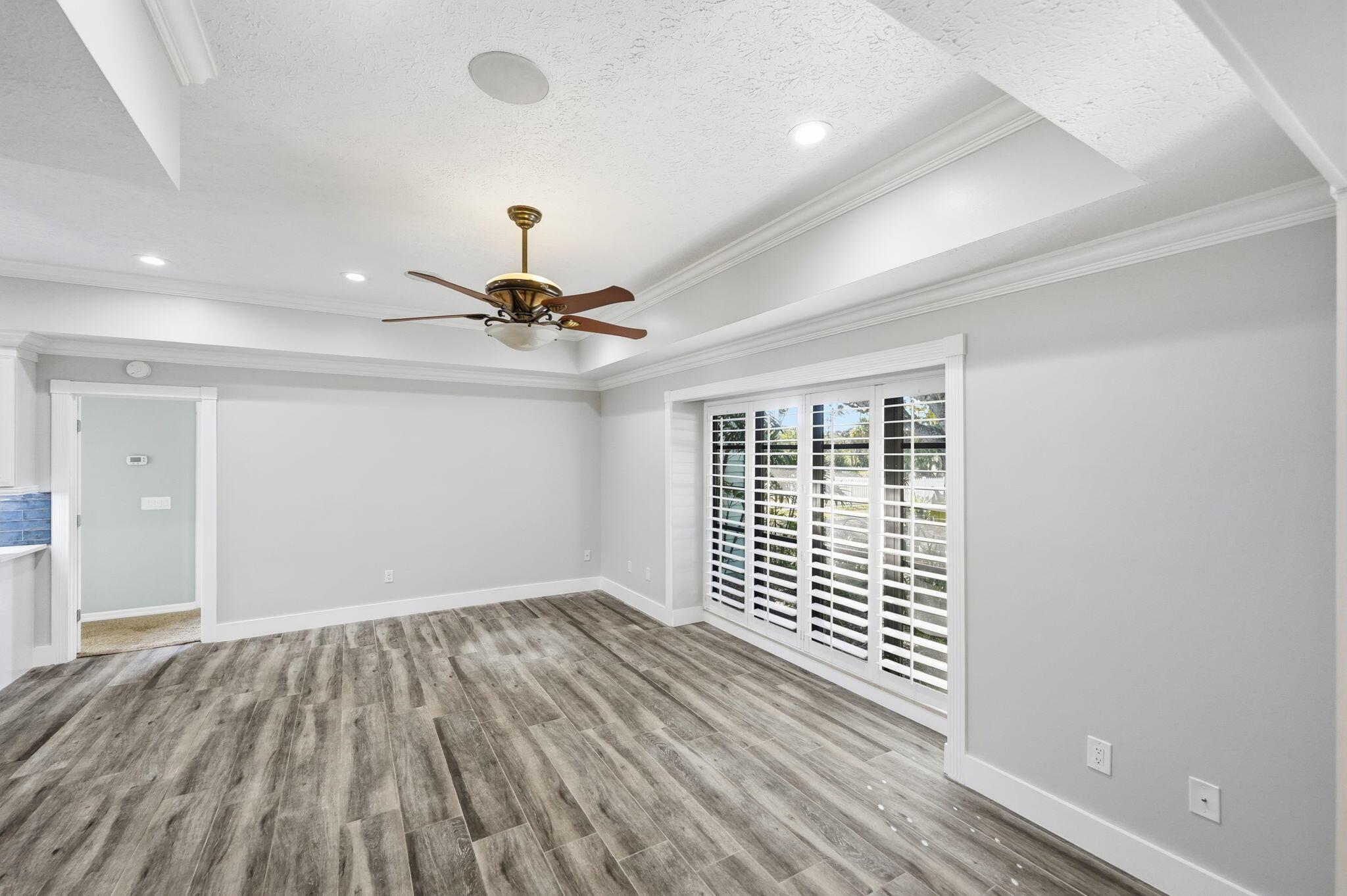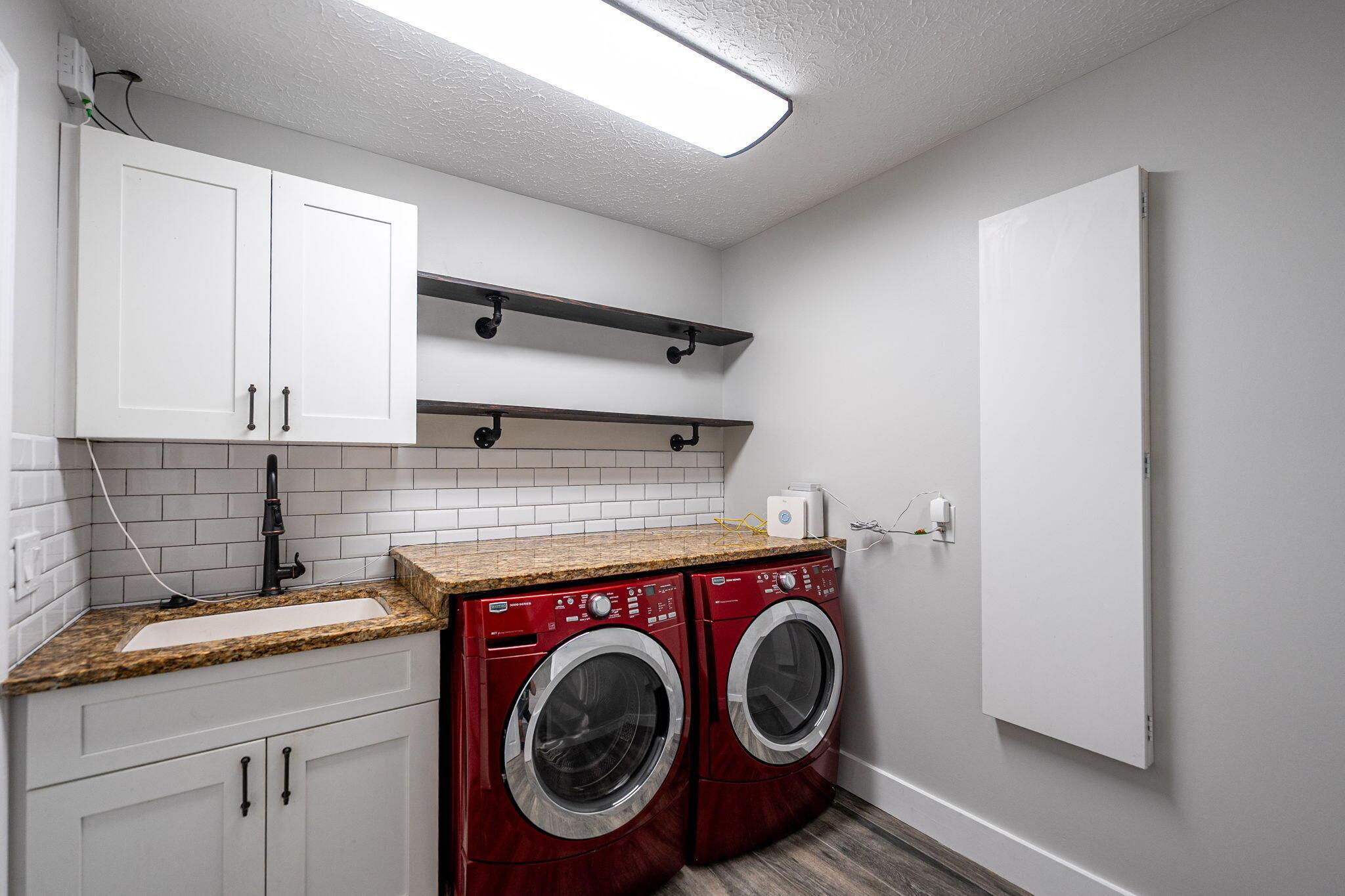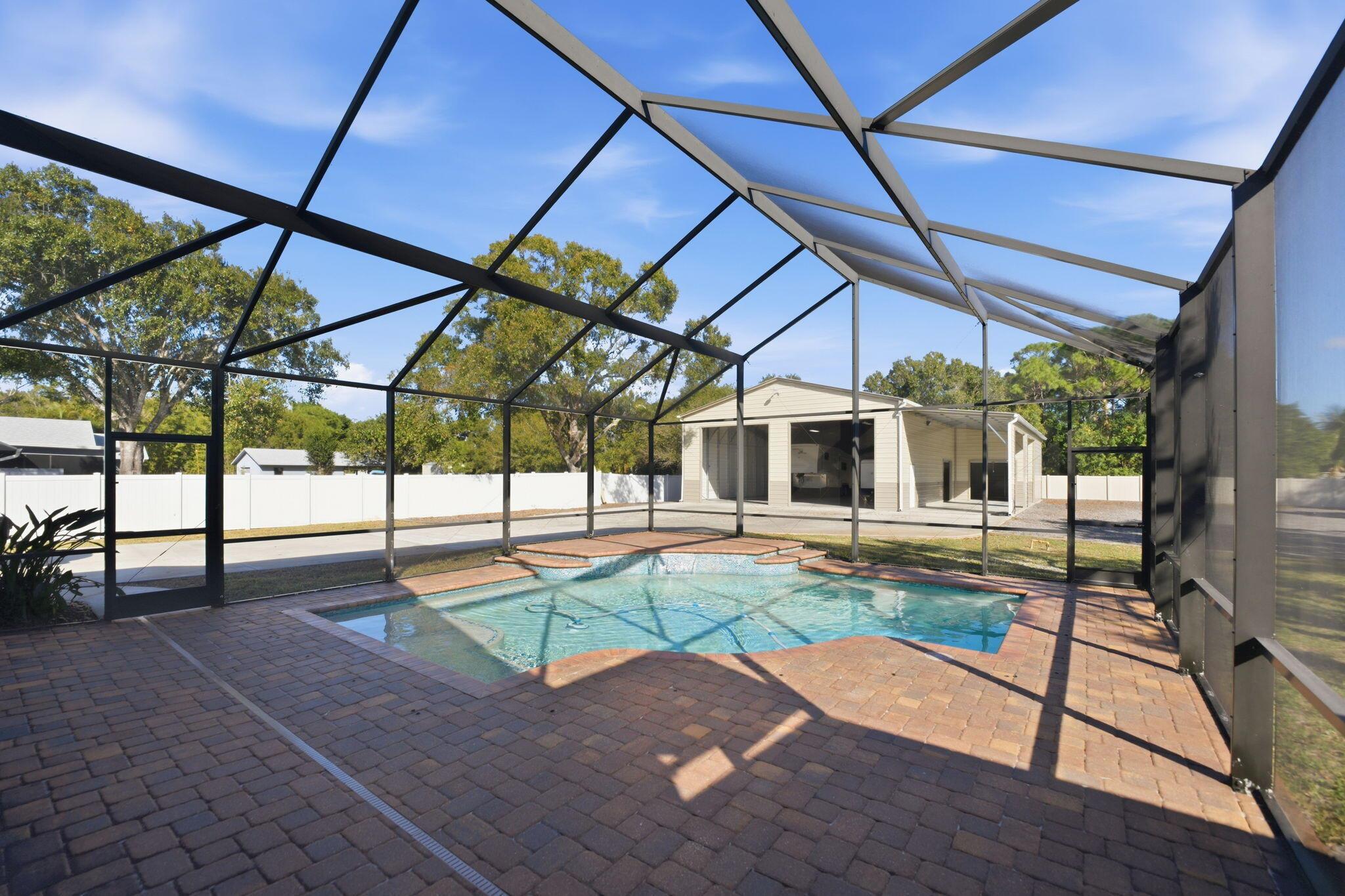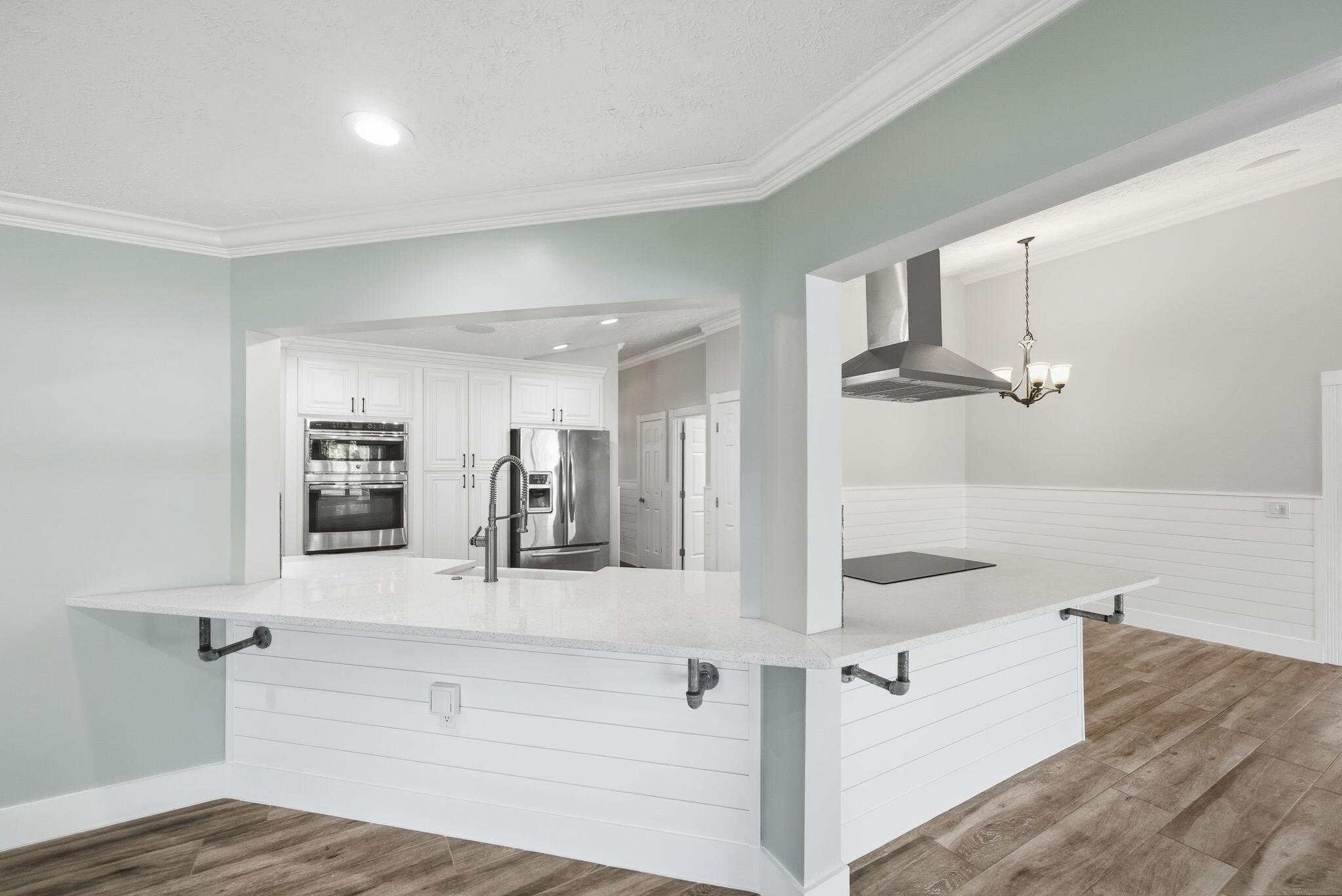 Located on 0.91 acres, this well-maintained home features numerous updates and versatile living spaces. Interior features include 3 bedrooms, 2 full baths, a primary suite with soaking tub and separate shower, a separate living room, open family room, and flexible dining/bonus room. The kitchen offers an induction cooktop, soft-close cabinetry, quartz countertops, a ceramic farm sink, and updated appliances. A bar area with wine storage and a separate laundry room add convenience for entertaining. Fresh paint, crown molding, canned lighting, and integrated sound complete the interior. Exterior highlights include a newer roof and gutters (2022), dual AC, fully fenced yard with electric gate, and a covered summer kitchen updated in 2025 with grill, sink, fridge, and pavers. The heated
