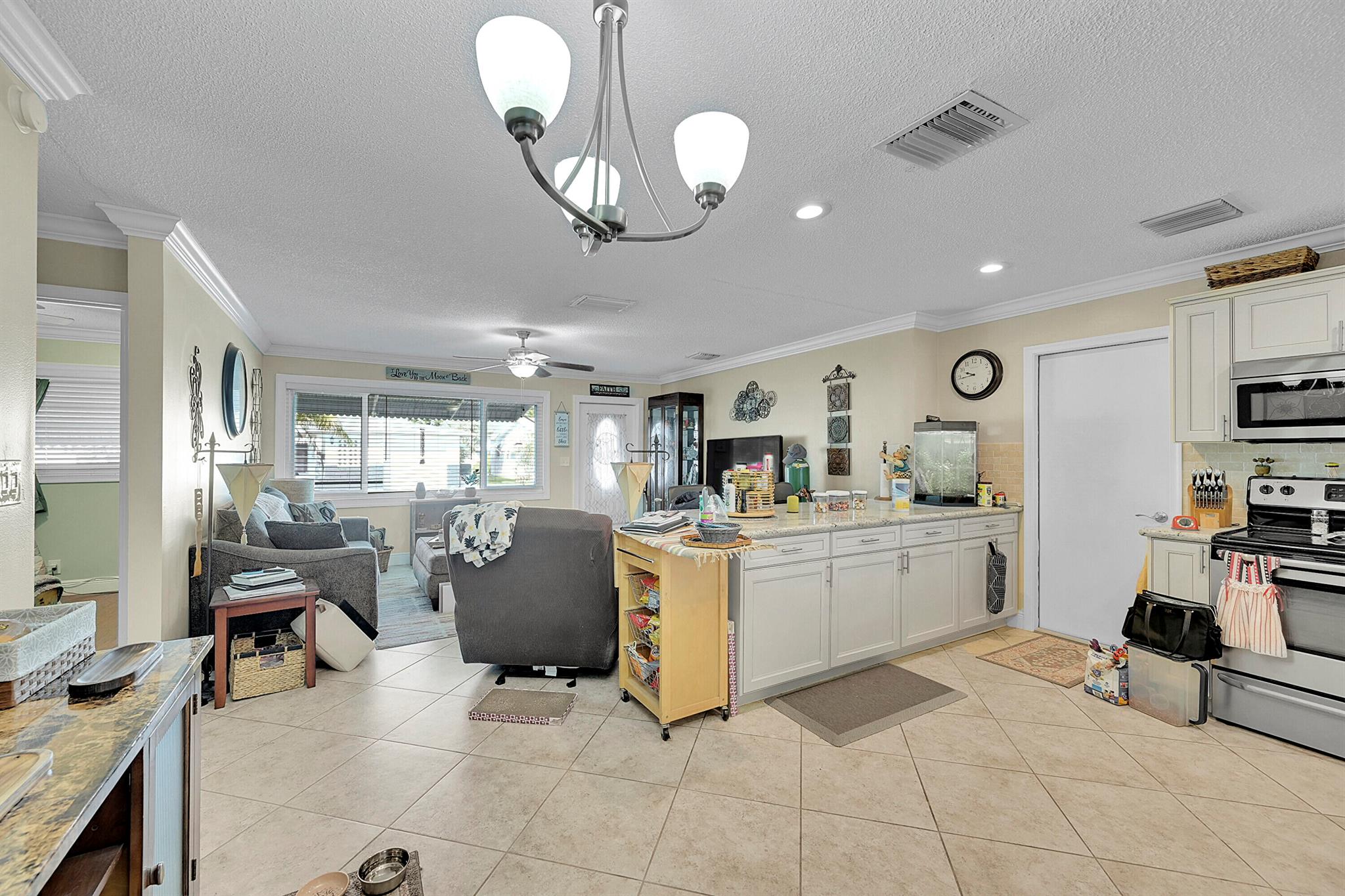 Located in the desirable 55 plus community of Paradise Gardens II, this updated single family home offers a bright, spacious setting with an inviting open concept design. The neighborhood is known for its peaceful surroundings, natural green spaces, and canals, along with a variety of amenities that include a heated pool, clubhouse, game room, and space to enjoy the Florida lifestyle. Inside, the home provides approximately 1,121 square feet of living area with two bedrooms, two full baths, and a single car garage equipped with a washer and dryer. The kitchen features white cabinetry, a generous island, granite countertops, and stainless steel appliances. An enclosed sunroom offers extra room for relaxation, and the backyard adds a nice outdoor touch. Low quarterly HOA.