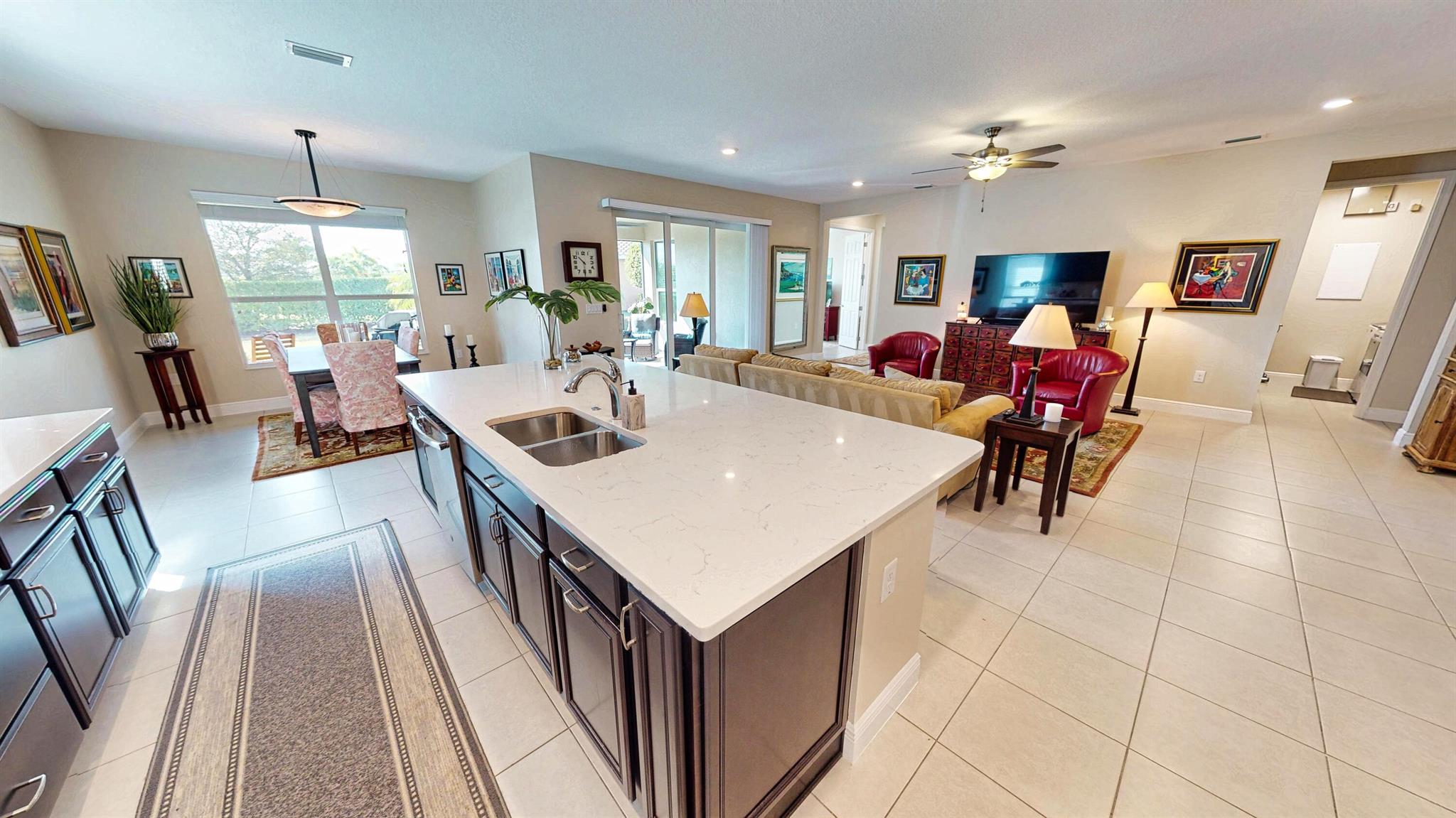 Welcome to this beautifully upgraded 3-bedroom, 2.5-bath home offering 2,446 sq ft of elegant living space in the sought-after, 55+ gated community of Vitalia at Tradition. From the moment you arrive, you'll notice the meticulously upgraded landscaping and freshly painted exterior, setting the tone for the exceptional features inside. Step into a bright, open floor plan featuring upgraded flooring throughout, including brand-new hardwood floors in all bedrooms. The spacious family room flows seamlessly into the gourmet kitchen, showcasing quartz countertops, dual wall ovens, cooktop, upgraded refrigerator, and an expansive island perfect for entertaining.