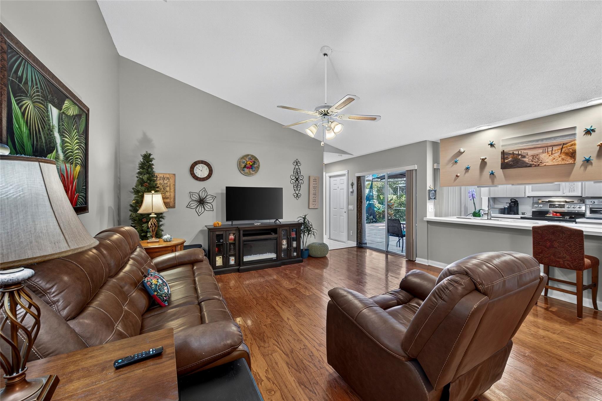 This inviting, move-in ready gem features warm wood laminate flooring and a spacious open-concept design where the living, dining, and kitchen areas merge for effortless entertaining. The kitchen shines with sleek stainless steel appliances and a breakfast bar where you can enjoy your morning coffee or take it outside to unwind on your serene private screened patio fully equipped with accordion shutters for peace of mind. Enjoy the privacy of a split floor plan and the convenience of a laundry closet complete with washer, dryer, and built-in cabinets. Nestled in an unbeatable location, across from Lake Catherine park just 10 mins from world-class shopping at The Gardens Mall, 5 mins to I-95, and 15 mins to the Turnpike and beaches. You’re near it all. Don't miss out come see it today!