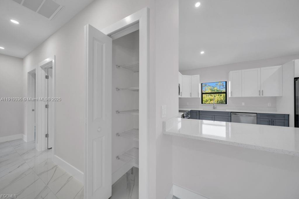 Beautiful 3-bedroom, 2-bath home with a 1-car garage, featuring a modern open-concept layout, elegant porcelain marble-style flooring, and an updated kitchen with quartz countertops, stainless steel appliances, and a spacious island. The home offers beautifully updated bathrooms, sliding doors that open to a cozy patio, and the added peace of mind of being located outside flood zones. A stylish, comfortable, and well-maintained property in a quiet and desirable area.
