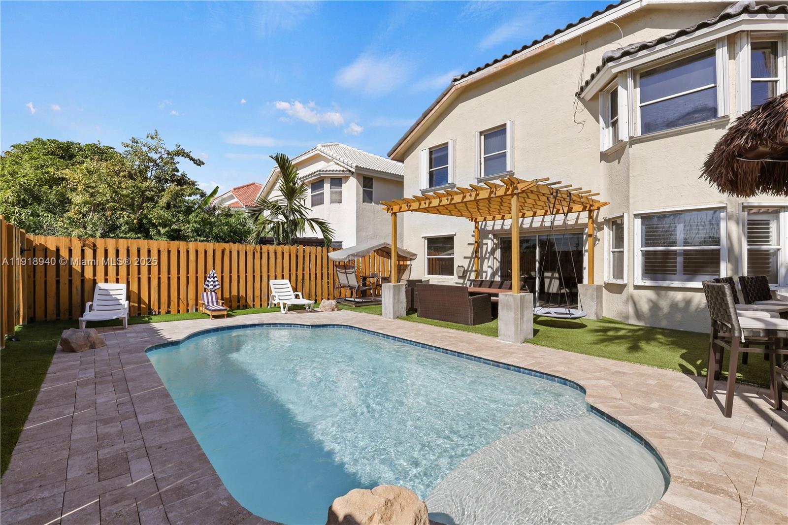 Stunning 4BR/3BA Margate home featuring soaring high ceilings, abundant natural light, and beautiful wood floors. This modern residence offers smart-home living with intelligent lighting and AI-operated shades. The first-floor in-law suite provides flexible space for guests or multigenerational living. Enjoy peace of mind with a BRAND-NEW 2025 roof and new hurricane-rated garage door (2024). Step outside to a gorgeous saltwater pool and fully fenced yard with direct access to Fire Fighters Park — perfect for outdoor lovers. A rare blend of comfort, technology, and style in a highly desirable location. Move-in ready and truly one of a kind.