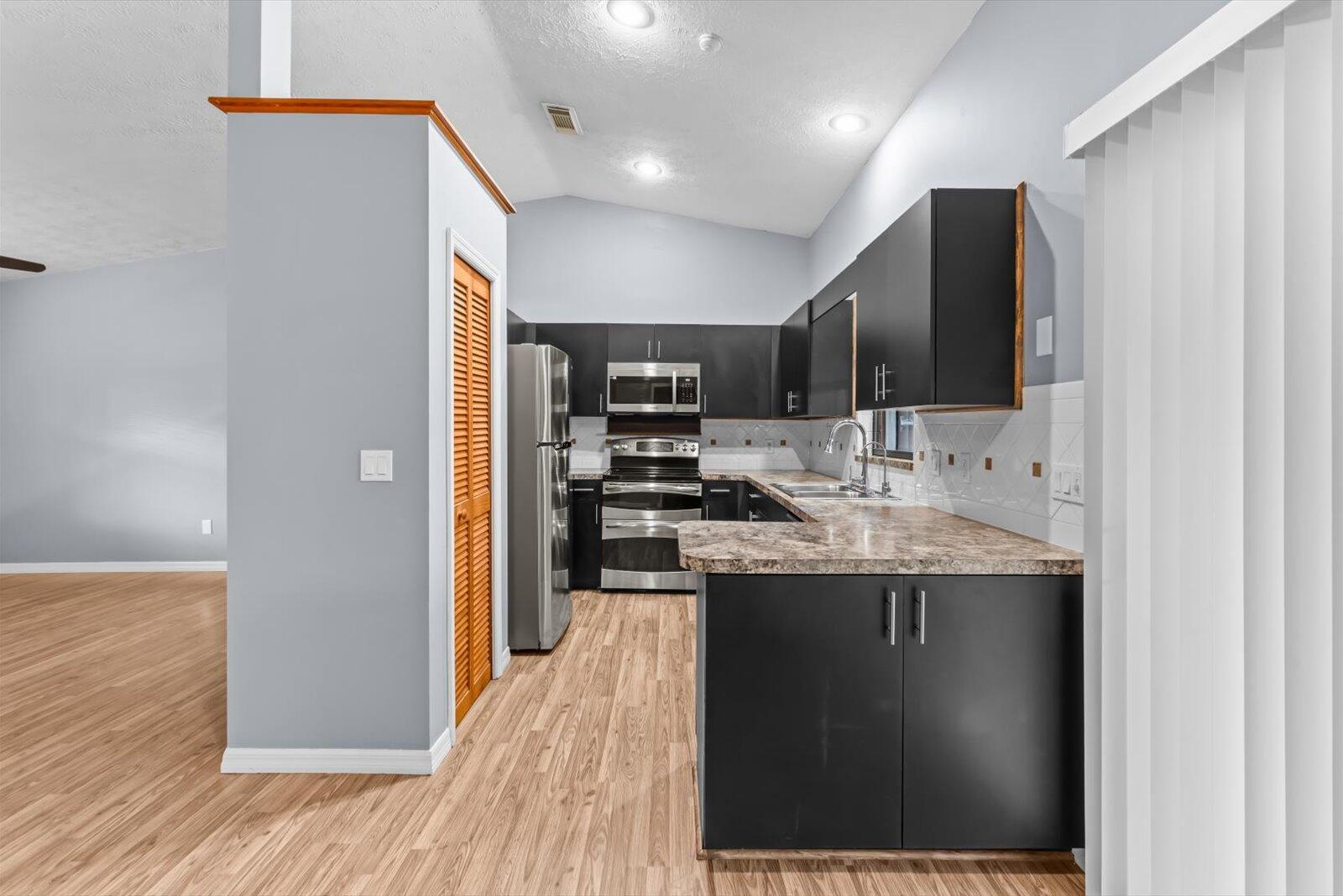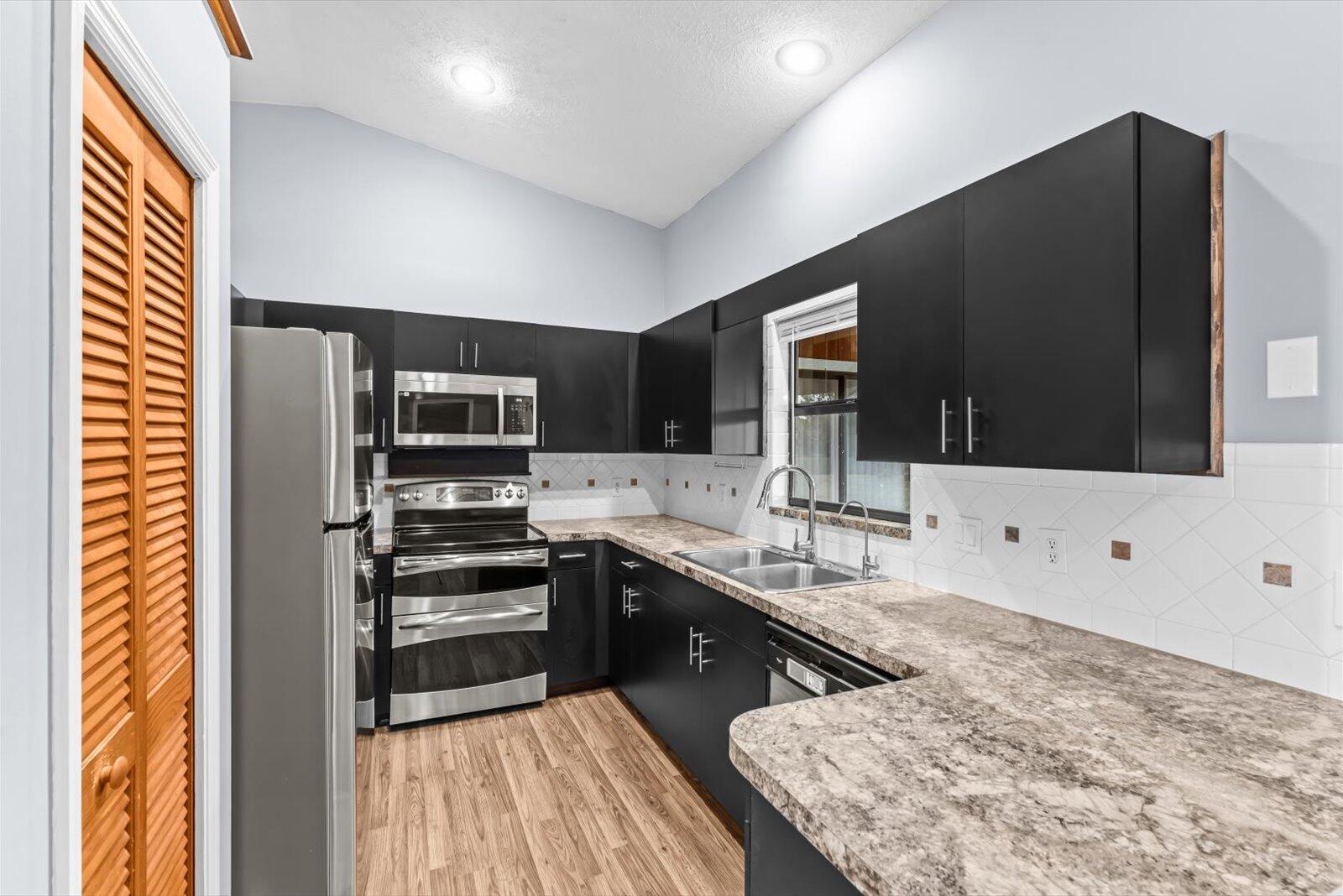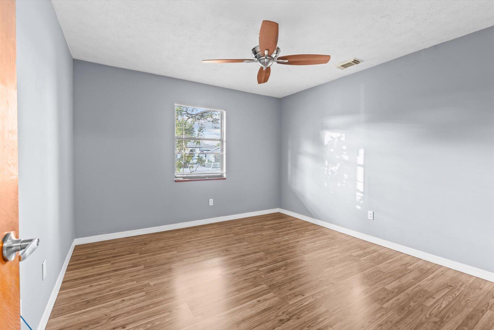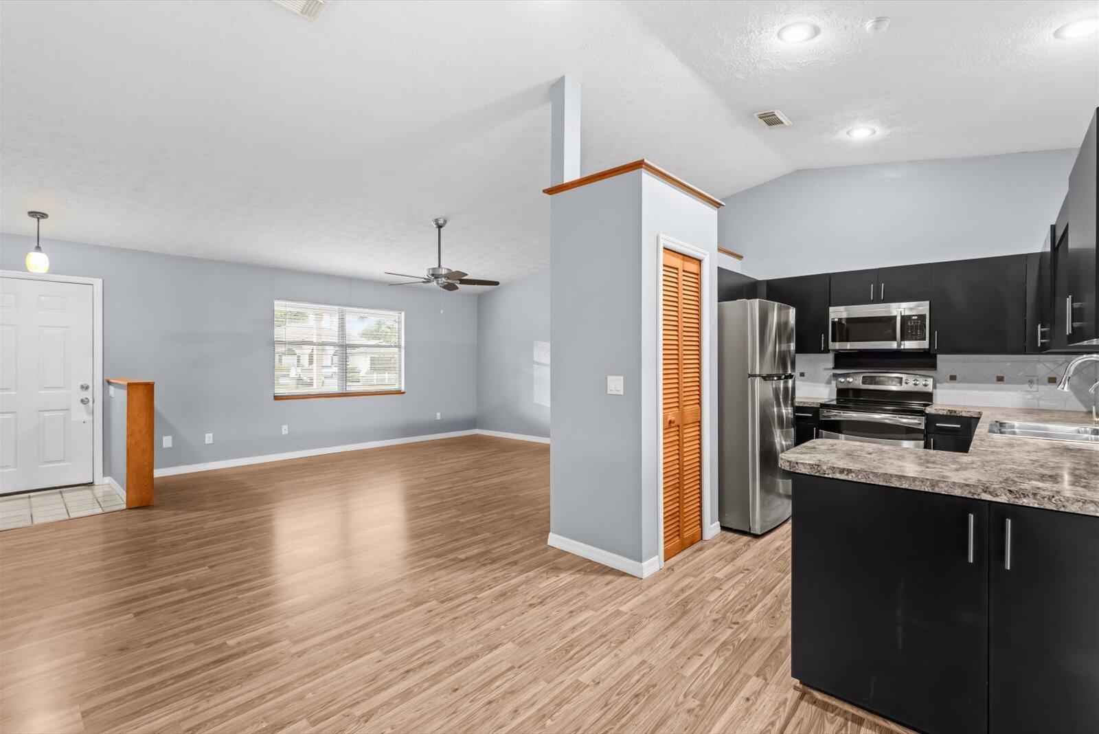Charming and move-in-ready 3-bedroom, 2-bathroom single-family home in a quiet, established neighborhood with NO HOA. This well-maintained residence offers a bright and open floor plan, a spacious kitchen with solid-surface countertops, ample cabinetry, and a full appliance package (refrigerator, range, dishwasher, and microwave). Both bathrooms are clean and functional with updated vanities and fixtures. Enjoy durable laminate flooring throughout the main living areas, and plenty of natural light. 2025 Roof being installed, 2025 AC, 2023 Water heater.