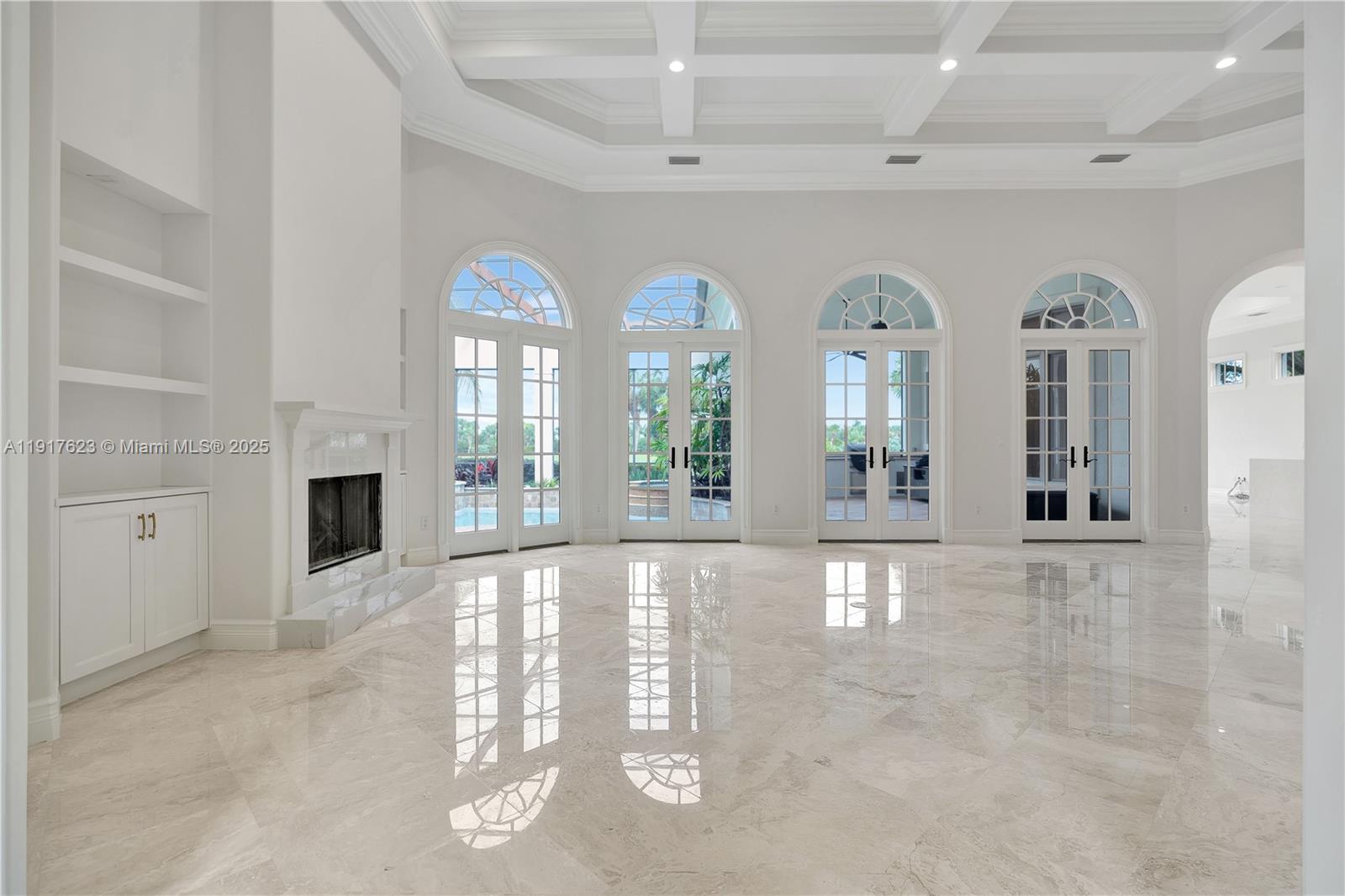 Located in the prestigious gated community of Old Marsh, this residence offers direct views of the of the first hole of the Pete Dye Championship golf course. Featuring a well-designed split floor plan, the home boasts 4 spacious bedrooms and 4 full baths. The recently upgraded gourmet kitchen opens into a large family room, perfect for both entertaining and relaxed living. The spacious living room, complete with coffered ceilings and fireplace, adds a touch of warmth and sophistication. The expansive primary suite is a true retreat, featuring tray ceilings, sitting area, 2 large walk-in closets, dual vanities, bathtub and separate shower. Additional highlights include a dedicated office space, screened patio with pool, spa, and outdoor kitchen.