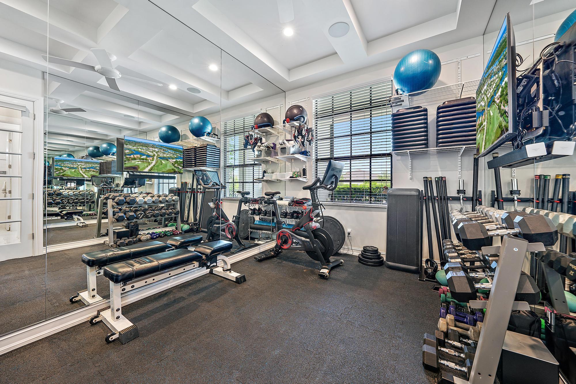 GORGEOUS, 5-bedroom + home gym and loft, 5.1-bathroom estate located in the esteemed and gated community of Prado in Jupiter, Florida. This Alexandria model, built in 2018, sits on just over 1 acre and offers more than 4,500 sq ft of luxury living space. With soaring high and coffered ceilings, marble flooring throughout the first floor and wood upstairs, a stunning white kitchen with high-end appliances, and the ultimate backyard boasting a heated pool and spa, covered patio with the automatic screens, outdoor fireplace and full summer kitchen - this home is designed for ultimate enjoyment and entertaining! As you enter through the grand front door, you're greeted by soaring ceilings and marble floors that extend throughout the first floor. The expansive family room flows effortlessly