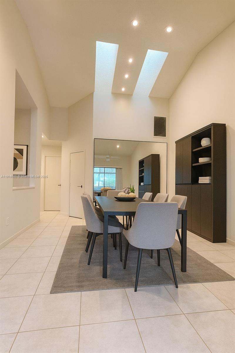 Enjoy gorgeous water views from the main living areas and the primary bedroom in this charming two-bedroom, two-bath, one level home. The property offers a screened-in patio and a private one-car garage, providing comfort and convenience. Inside, the home features a desirable split bedroom floor plan, soaring vaulted ceilings with skylights in main area, and neutral tile throughout the main living spaces. The primary bedroom includes a spacious walk-in closet and a comfortable en-suite bathroom. Relax with your morning coffee or unwind after work on the screened patio while taking in the peaceful view. Your vehicle will stay protected and cool in the private garage, and additional guest parking is conveniently located right in front. The roof was recently replaced, offering added peace of mind. This property is situated on a quiet, tree lined street in a private community with a single entrance. Residents can enjoy the tranquil community pool and the proximity to the golf course. The association covers the roof, exterior insurance, lawn care, pool maintenance, exterior painting