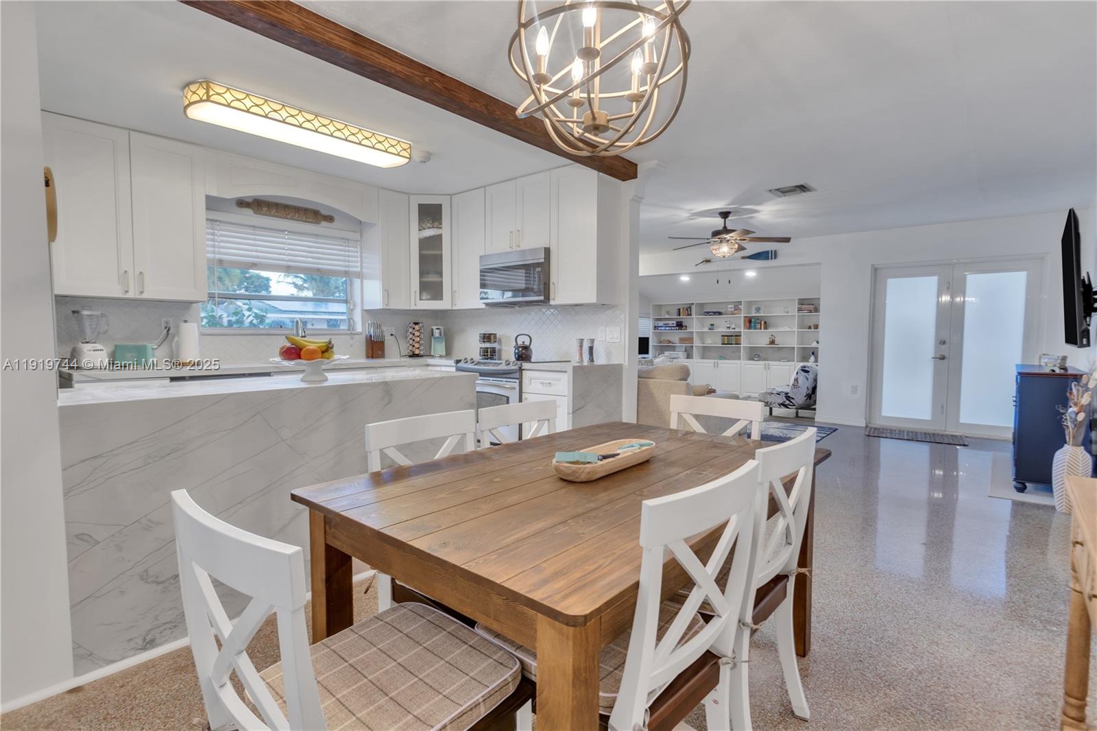 Welcome home to this beautifully maintained residence with no HOA in the heart of Pembroke Pines. Step inside to discover gloss terrazzo flooring and a bright living area featuring built-in shelving for added character and functionality. The updated kitchen offers solid-surface countertops, stainless steel appliances, and crisp modern finishes. Enjoy the convenience of direct entry from the carport, excellent for easy unloading. The home also features an updated bathroom and a large, fully fenced backyard providing privacy and plenty of space for outdoor living.