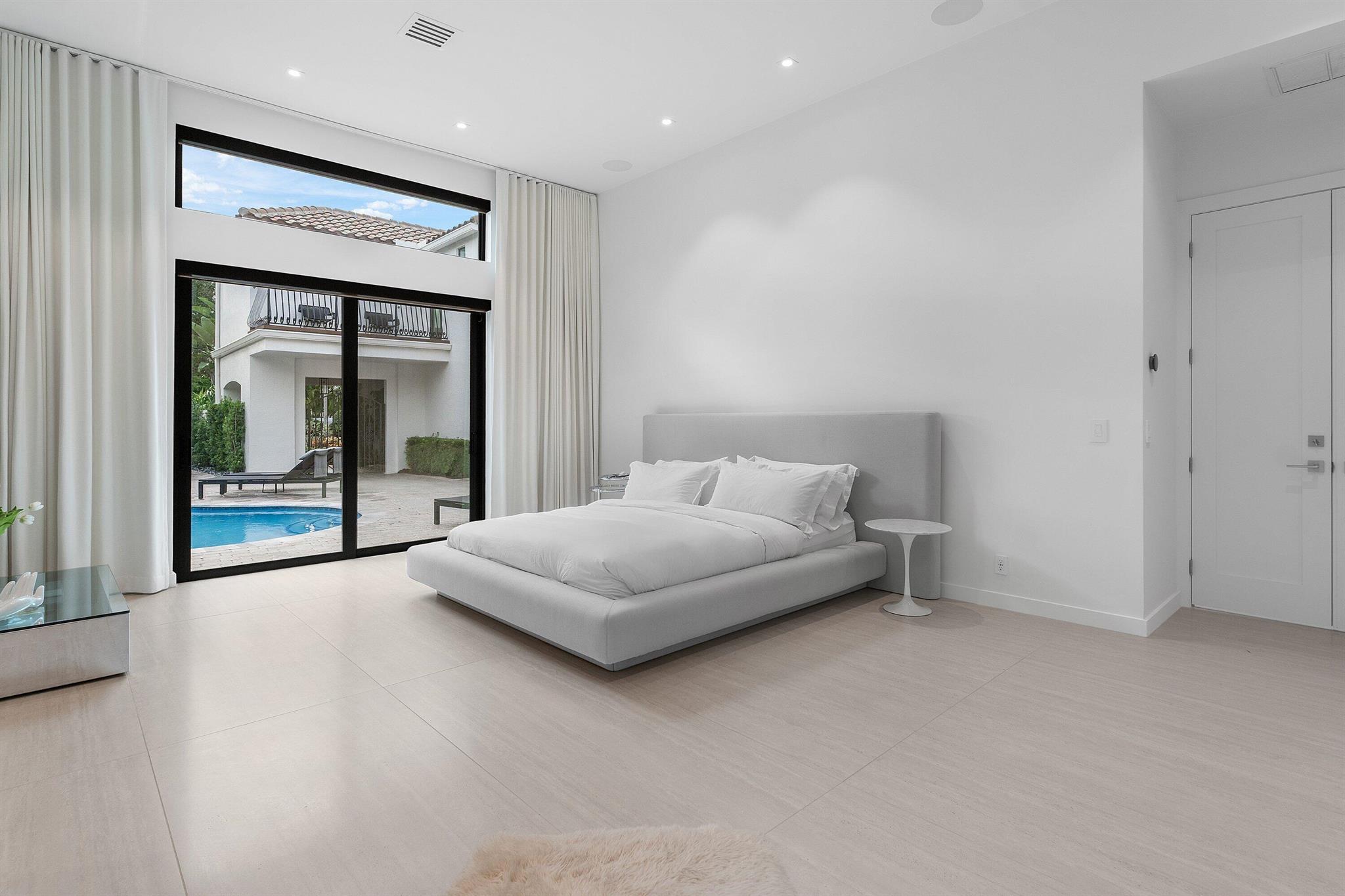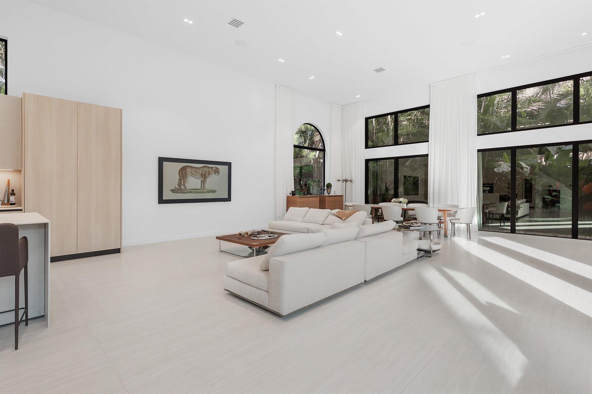 Located in the prestigious Central Boca community of Seasons, this exceptional home was renovated in 2025, and sits on a private, spacious lot. The home offers a phenomenal floor-plan with a downstairs Primary bedroom, which is a luxurious retreat with a spa-like bathroom and two walk-in closets. The Primary wing features an adjacent, separate home office with a beautiful view of the pool. On the other wing of the home, there is one guest bedroom and full bath downstairs (also serving as a cabana bath), and three beautifully designed bedrooms upstairs, plus a loft. Upon entrance, you are swept away with the breathtaking vaulted ceilings, large format tiles and dream Italian kitchen by Mia Cuccina- stunning white oak cabinetry and porcelain countertops and Sub Zero paneled appliances.