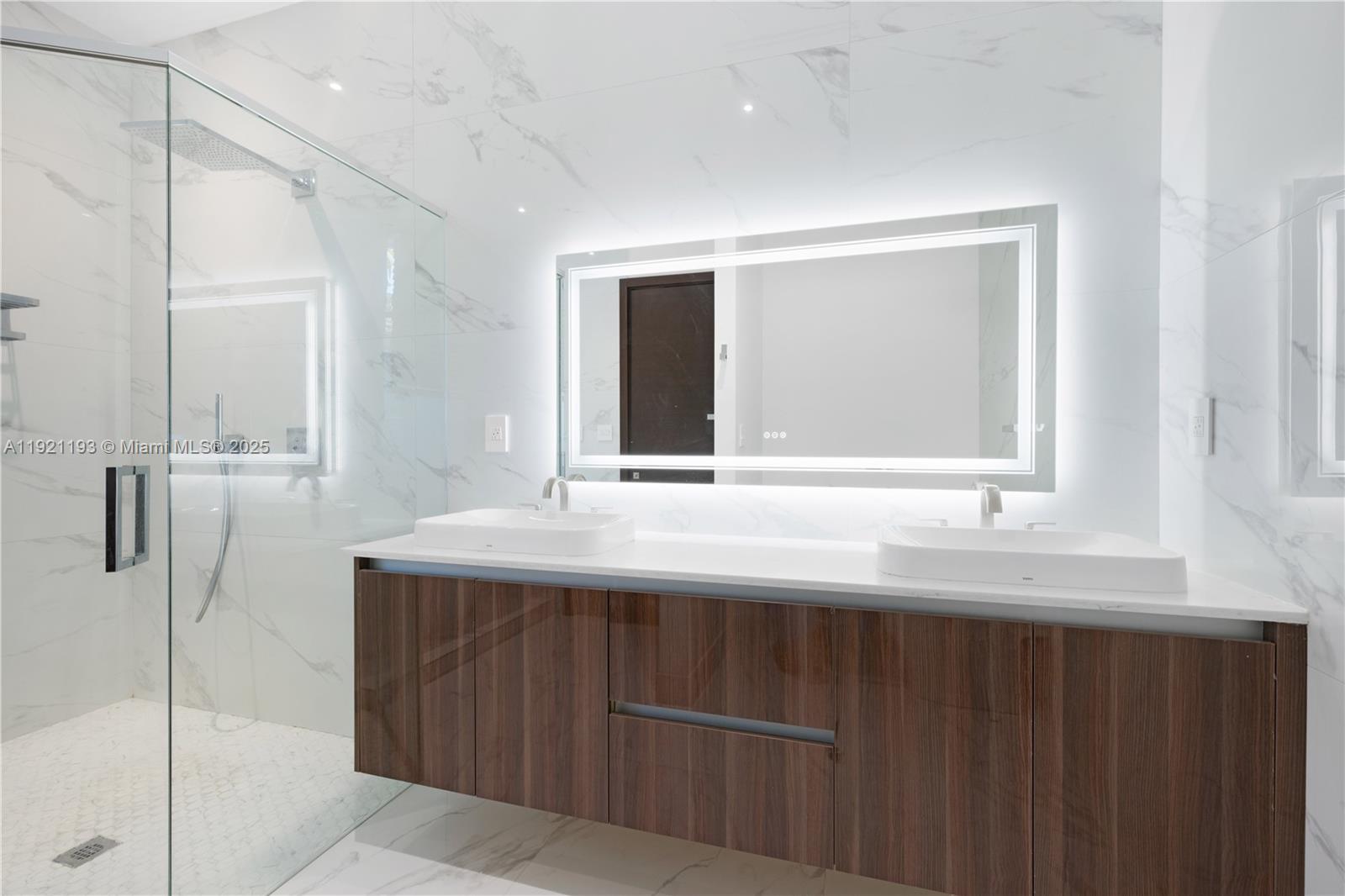 A residence of remarkable elegance, volume and presence throughout. Soaring 12-foot ceilings, expansive open spaces, and beautifully filtered natural light define this distinguished residence. Premium 48x48 Spanish ceramic flooring, 8-foot solid wood doors, and a sleek modern kitchen appointed with Bosch appliances elevate the home’s refined aesthetic. A private family room enhances the living experience with a built-in ice maker, wine cooler, and direct access to the terrace. Sliding glass doors open wide to create a seamless connection between the interior and the outdoor areas, extending the home’s sense of scale and comfort. Additional features include Toto ceramic fixtures, upgraded electrical installation for enhanced efficiency, and a strategically engineered AC system. Approved pool plans offer the opportunity to further elevate the exterior environment.
