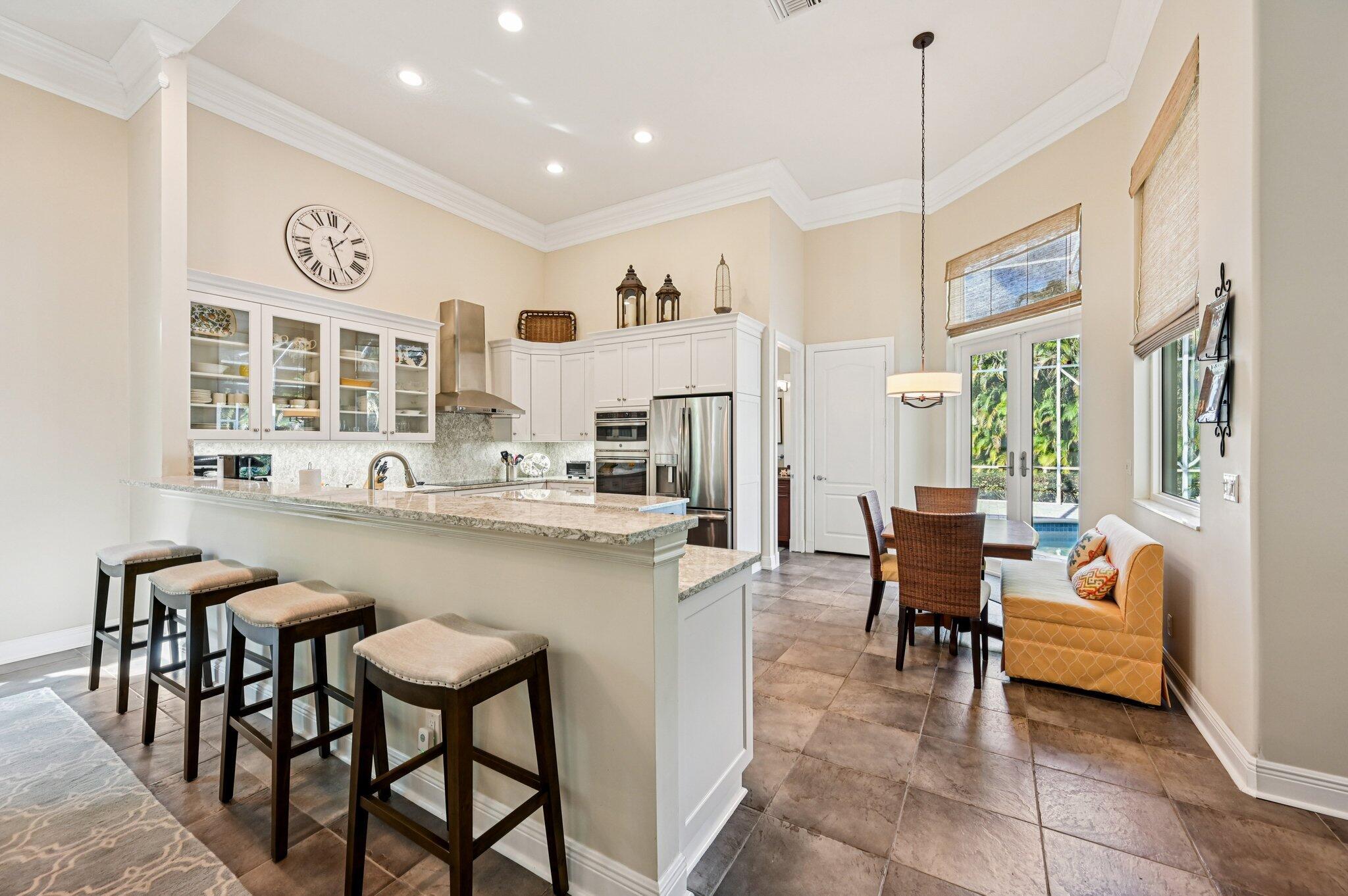 Experience refined living in the heart of Jupiter. This elegant estate features three spacious bedrooms, a private office, and four beautifully appointed bathrooms, all highlighted by soaring ceilings and generous room sizes. Remodeled kitchen with an induction range, great for cooking. Impact windows throughout. Set back for added privacy, the home offers a serene backyard retreat with a salt pool, spa, and custom putting green, perfect for relaxing or sharpening your short game before visiting Jupiter's nearby world-class courses. A true blend of luxury and tranquility in one of South Florida's most desirable locations. AC's 2024 & 2018, Washer & Dryer 2024, brand new bedroom flooring, new Master bath vanities.