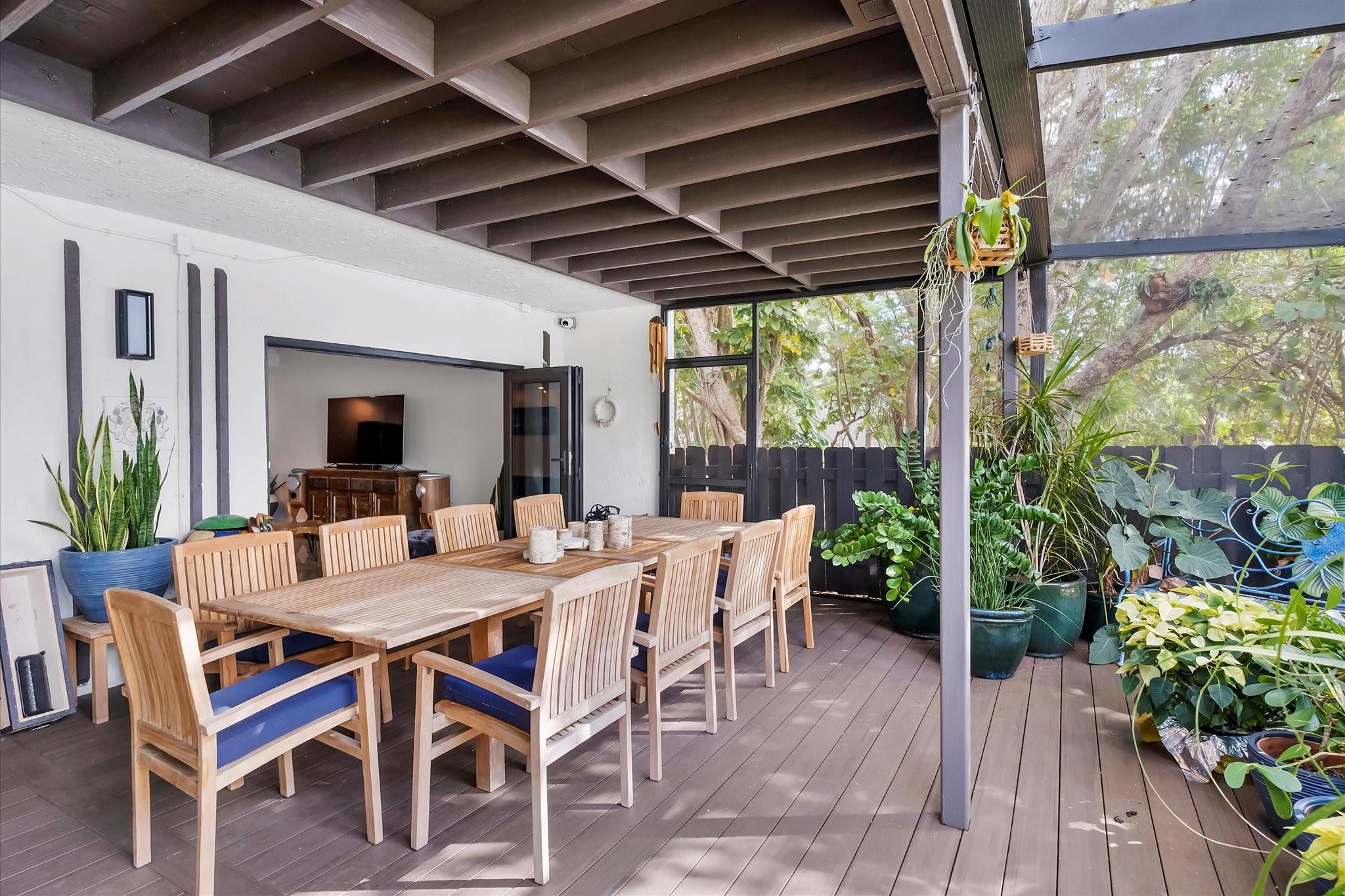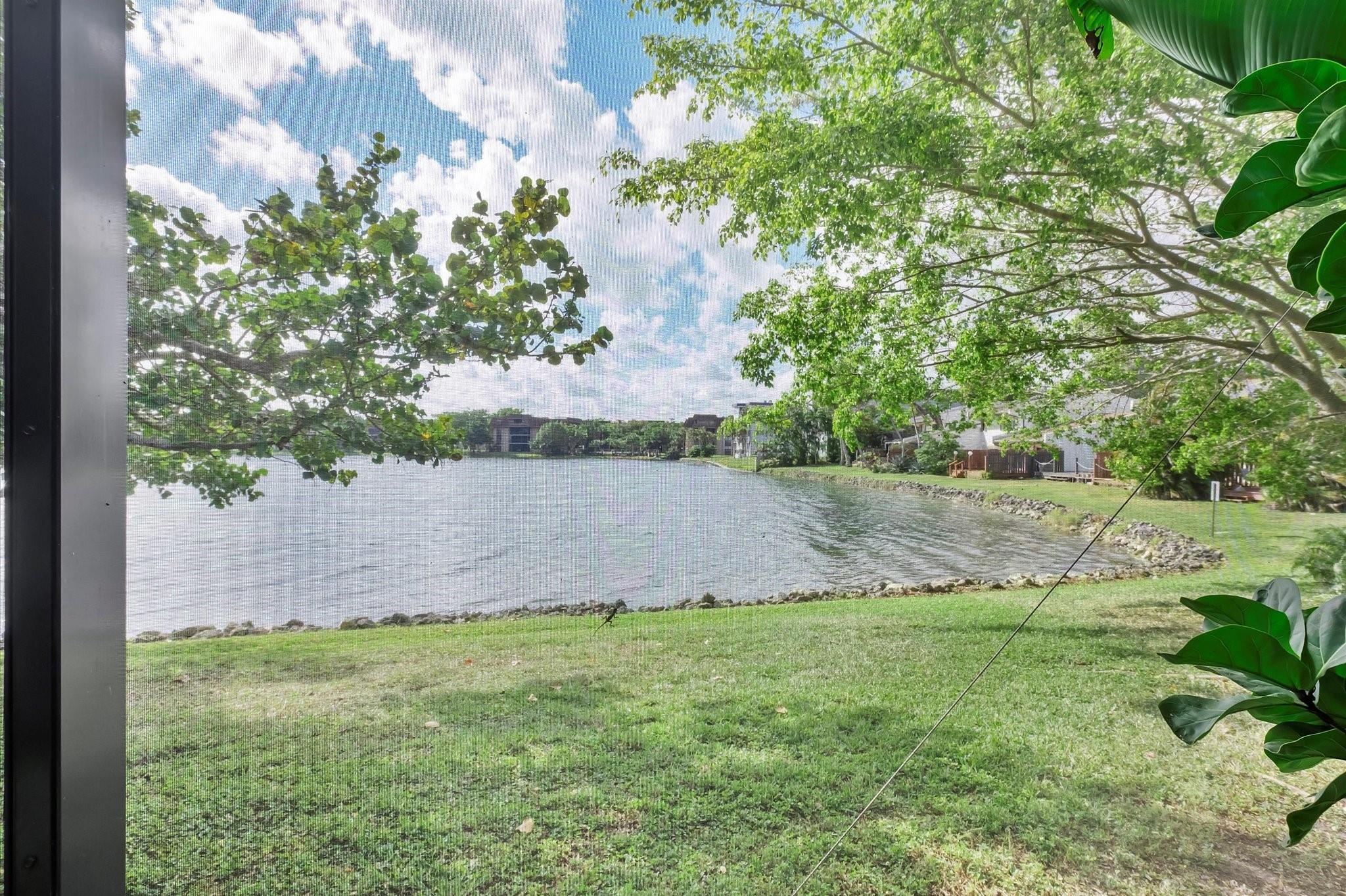 Exceptionally well-maintained residence in the gated community of Sandpiper with 24/7 guard security. This home features black countertops, white cabinetry, stainless appliances, impact windows and doors, pocket/accordion-style doors that seamlessly open the living area to the outdoors, a whole-house dehumidifier, and porcelain flooring throughout. Outdoor highlights include a WeatherTec™ screened deck, a lakeview balcony with a 2-story arched enclosure, and a 2nd-floor terrace. Additional features include a home security system, tankless water heater, roof replaced in 2022, two assigned parking spaces, and wheelchair access. HOA covers water, trash, roof, and common-area maintenance. Community amenities include a clubhouse, pool, and spa. Leasing permitted in the first year.
