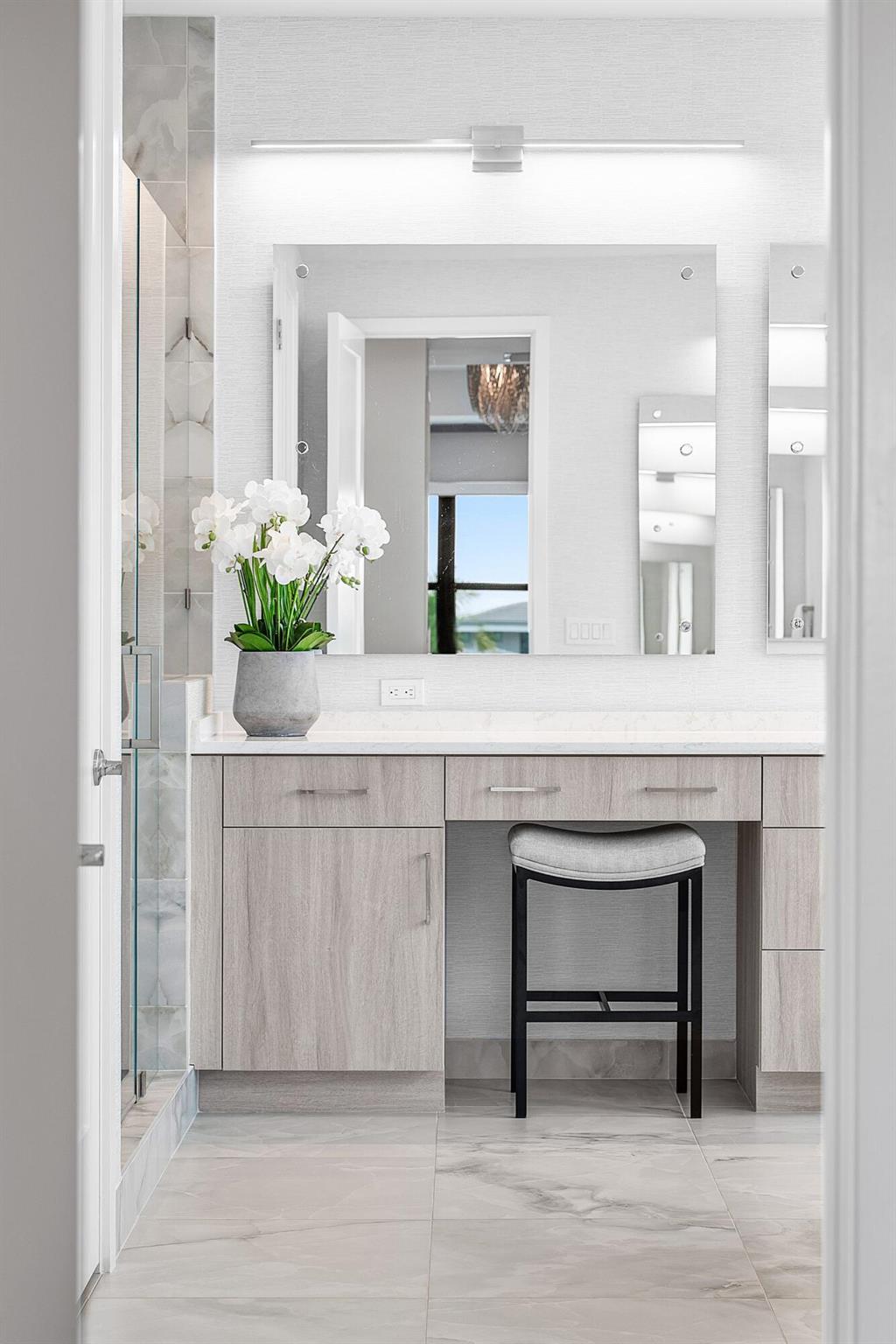 Welcome to this exceptional Laguna residence in the sought-after community of Lotus Palms, perfectly positioned on a premium lake lot at the end of a quiet cul-de-sac. From the moment you arrive, you are greeted with beautiful lake views from both the front and back of the home, creating a serene and private setting rarely found in the community. Masterfully upgraded inside and out, this residence delivers refined design, thoughtful functionality, and a true resort-style living experience.A grand entry sets the tone with a custom foyer chandelier, paneled feature wall, and designer finishes that continue throughout the home. Thoughtfully designed for today's lifestyle, the residence offers 5 total bedrooms, including one full bedroom with a private en-suite bath on the main level--