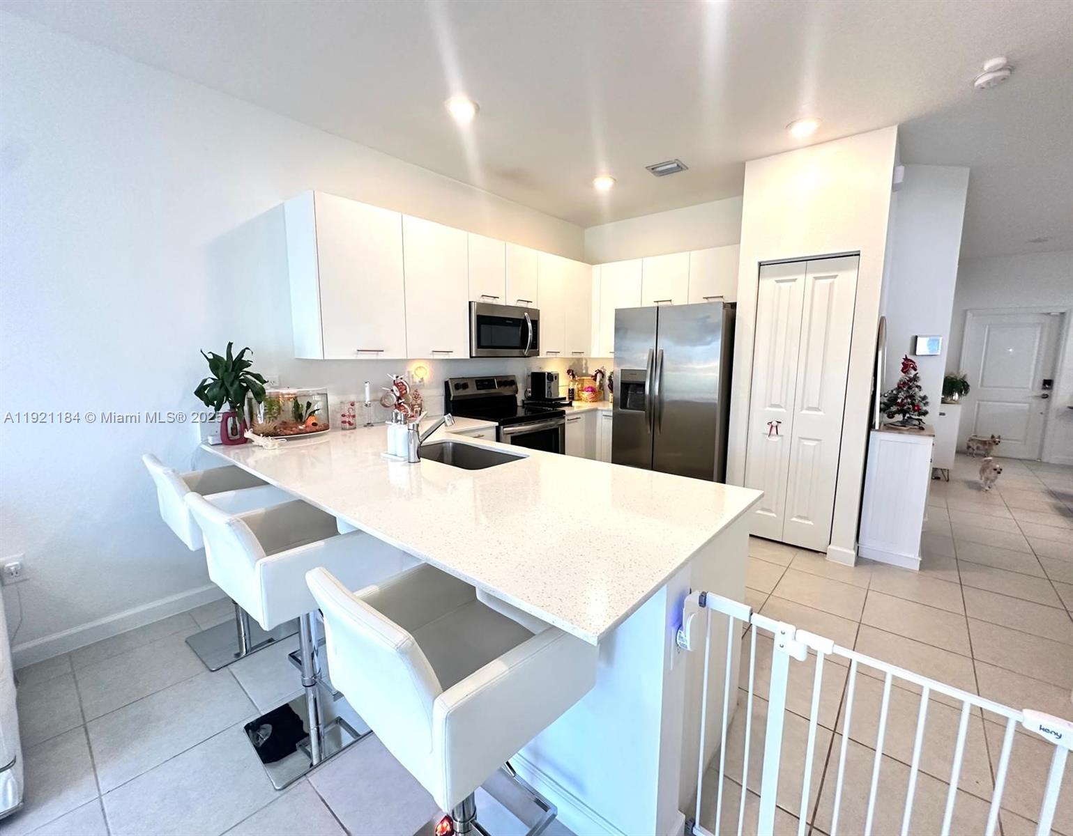 Exceptional newly constructed 3BR/2.5BA corner-unit townhouse featuring a bright open-concept main level with a formal dining room, spacious living area, and a modern kitchen with a large island and stainless-steel appliances. Step outside to a private fenced new concrete patio perfect for weekend BBQs, outdoor entertaining. The second floor offers a primary suite with a walk-in closet and a large master bath with dual sinks and a generous shower, plus two additional bedrooms and a second bathroom. The garage is currently converted into an office and can be effortlessly reverted to its original use. The property also includes a driveway with parking for 3 vehicles. The gated community offers outstanding amenities: pool, jacuzzi, clubhouse, playground, and pet-friendly areas. Centrally located just minutes from I-95, Miami-dade College North, Amelia Earhart Park, and with convenient access to the Palmetto. Don’t miss this fantastic opportunity! Call listing agent today!