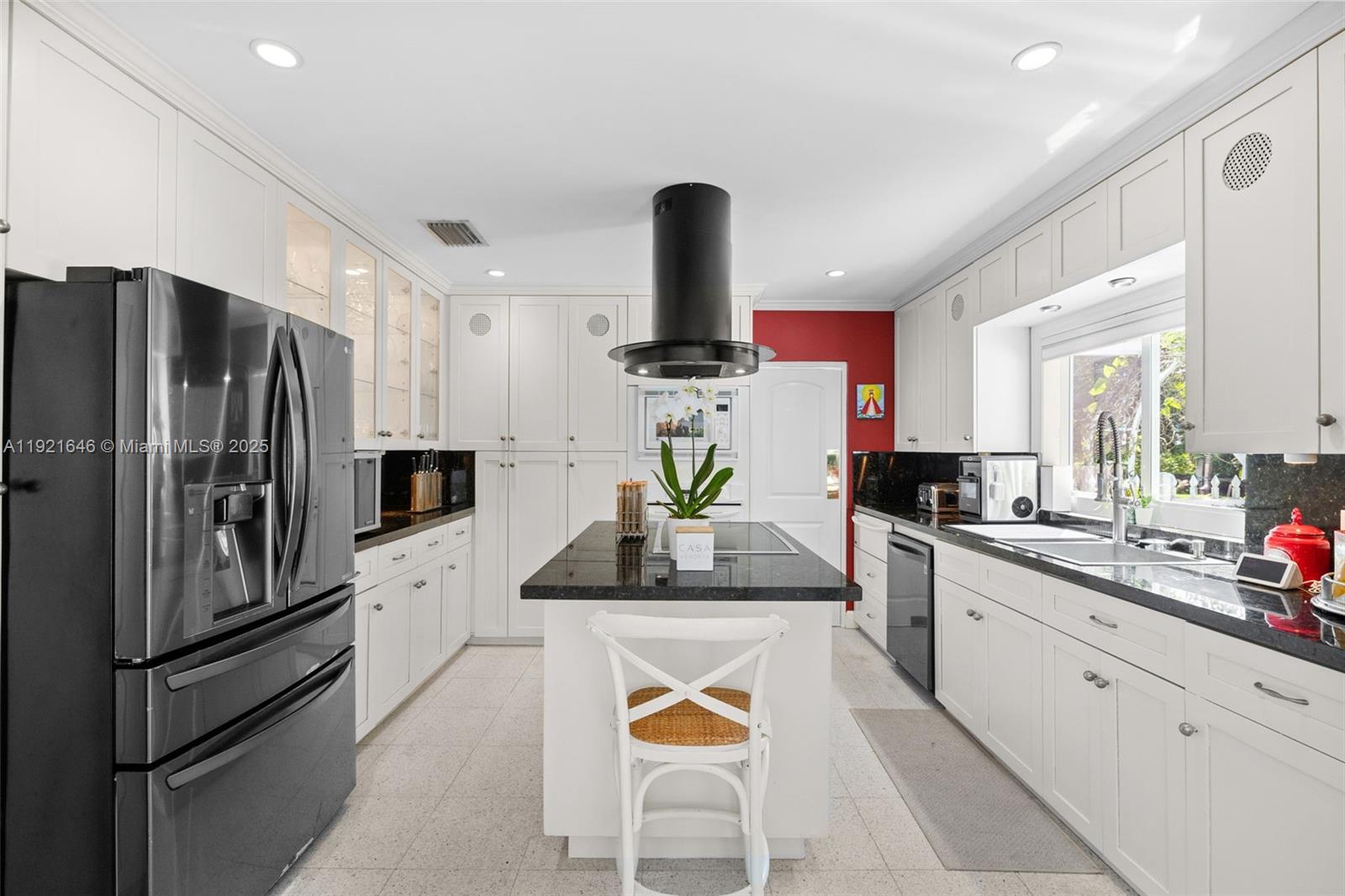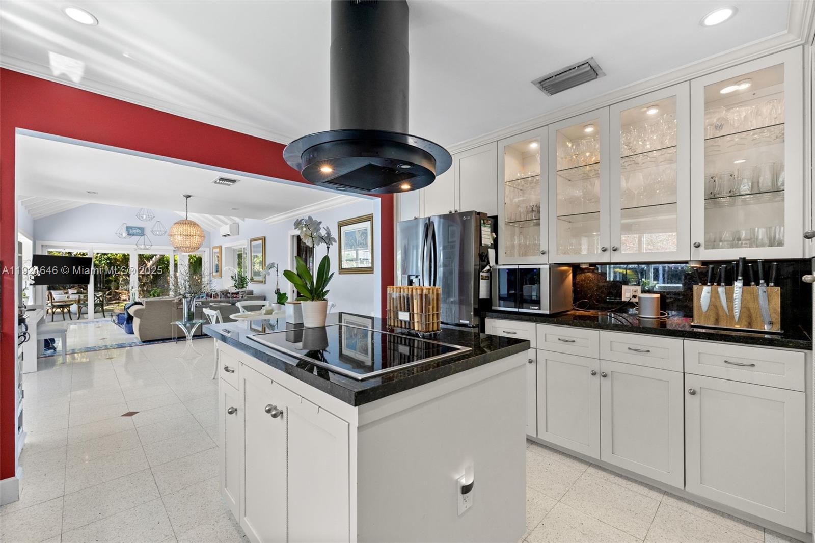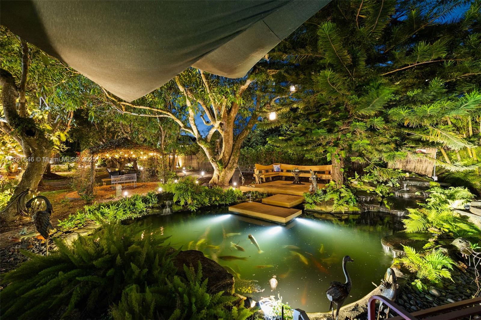 Stunning 5/4.5 tropical retreat with main house (4/3), separate in-law suite (1/1) w/ full kitchen, and oversized 2-car garage w/ ½ bath. The main house is fully renovated with polished wood floors throughout. The master suiteoffers a spa bathroom with jacuzzi, and the family room features vaulted wood beam ceilings. A 500-bottle winecellar anchors the living room/bar. Features include a 360 aroma system, impact windows/doors, and split central A/C. Enjoy a resort-style backyard with heated pool, solar panels, mosquito system, outdoor kitchen, fire pit, koi pond, zen garden, waterfall, and zip line. Lush landscaping includes 100+ yr old mango & avocado trees, citrus, fruit trees, and a vegetable garden. Perfect for entertaining, multigenerational living, and peaceful everyday life.