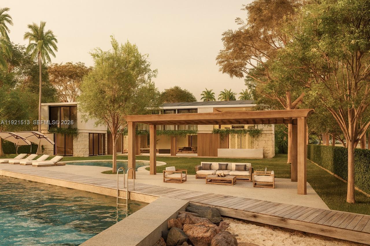 A once-in-a-generation opportunity on Key Biscayne’s only private waterfront road, this extraordinary estate spans 28,800 square feet with 120 feet of pristine water frontage, a secluded sandy beach, and a private dock framing panoramic views of the Miami skyline. Offering 10,926 square feet of living space, the property delivers exceptional privacy alongside a striking contemporary design recognized as part of the esteemed Rosa de la Cruz Collection. Soaring 20-foot ceilings, sculptural architectural lines, and expansive, light-filled interiors create a dramatic backdrop for art, entertaining, or a visionary reimagining tailored to your lifestyle. A truly rare canvas in an irreplaceable location, with architectural plans available to transform it into the most exceptional residence in Key Biscayne.