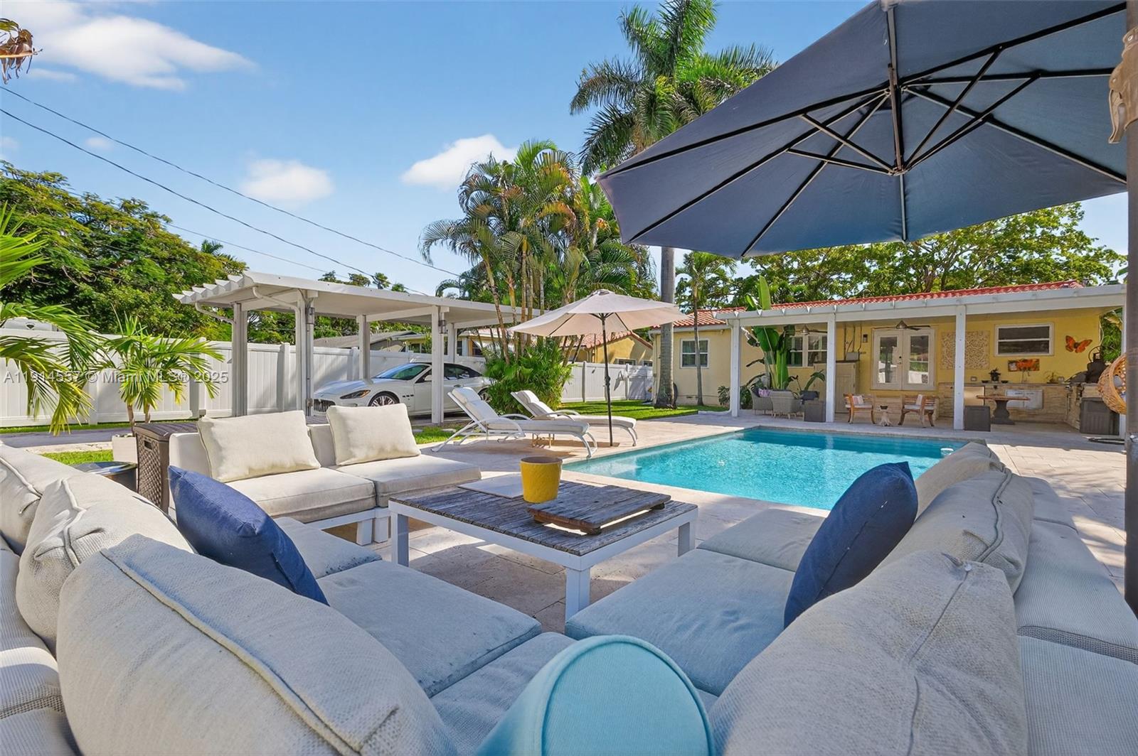 This stylish 3BD/2BA plus Den home brings Hollywood living just minutes from the ocean and Young Circle. Classic Florida charm meets modern comfort with wood floors, renovated baths, full impact windows and doors, and a newer roof. The 2016 saltwater pool creates a true tropical oasis with lush landscaping, citrus trees, a summer kitchen, a covered lounge, and a fully fenced yard. Private alley access leads to a motorized gate carport. City gas powers the range, dryer, and tankless water heater. A perfect blend of vintage charm and coastal living, where every day feels like a beach day. Wonderful parks nearby for easy strolls and kid and dog friendly fun. Very friendly and sought after neighborhood with highly rated schools close by.