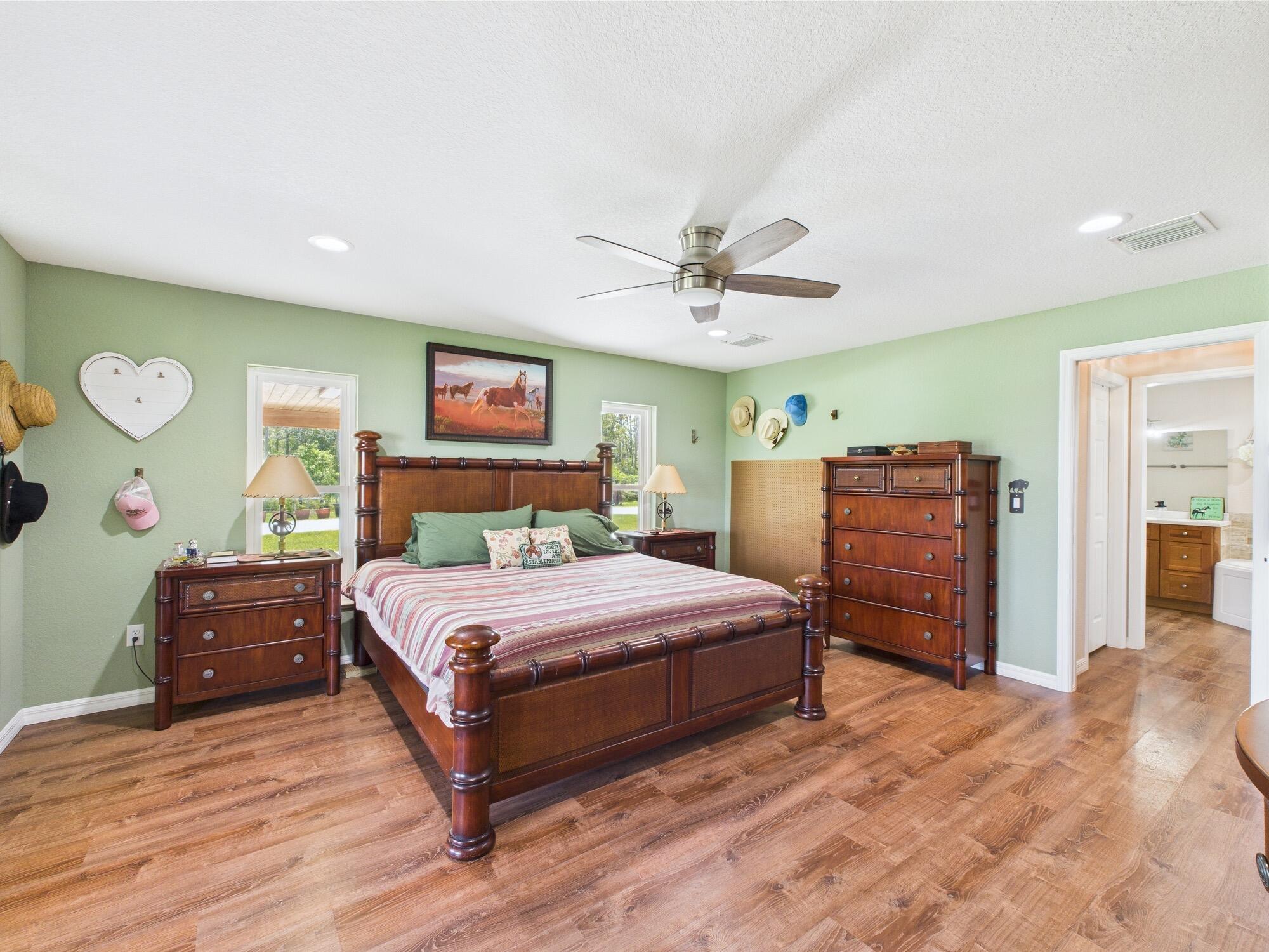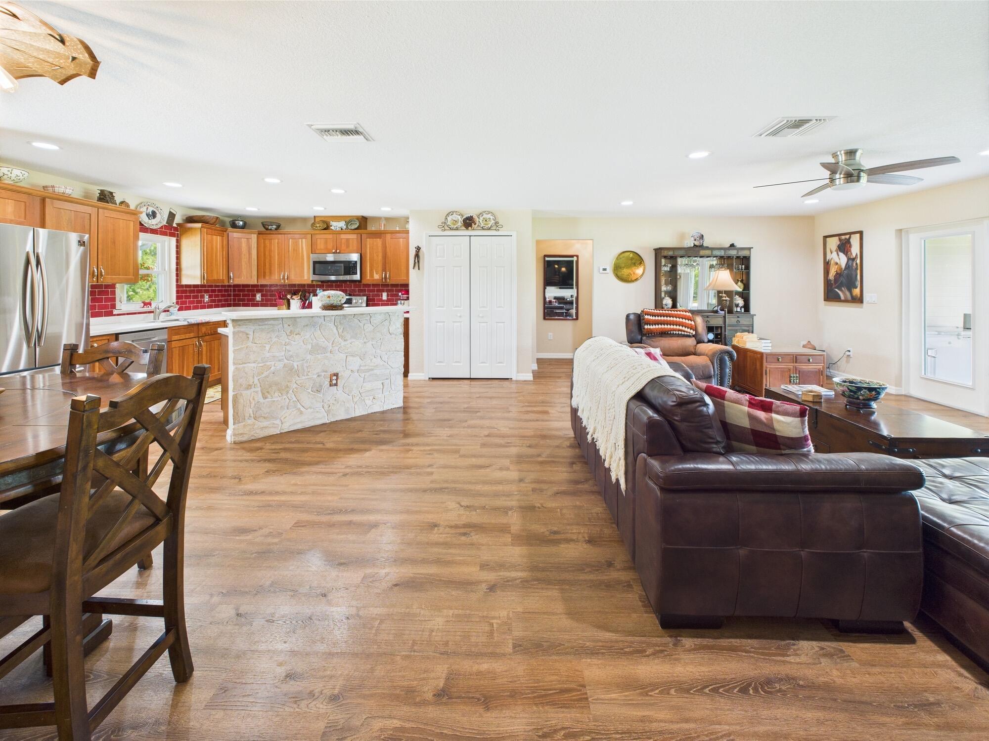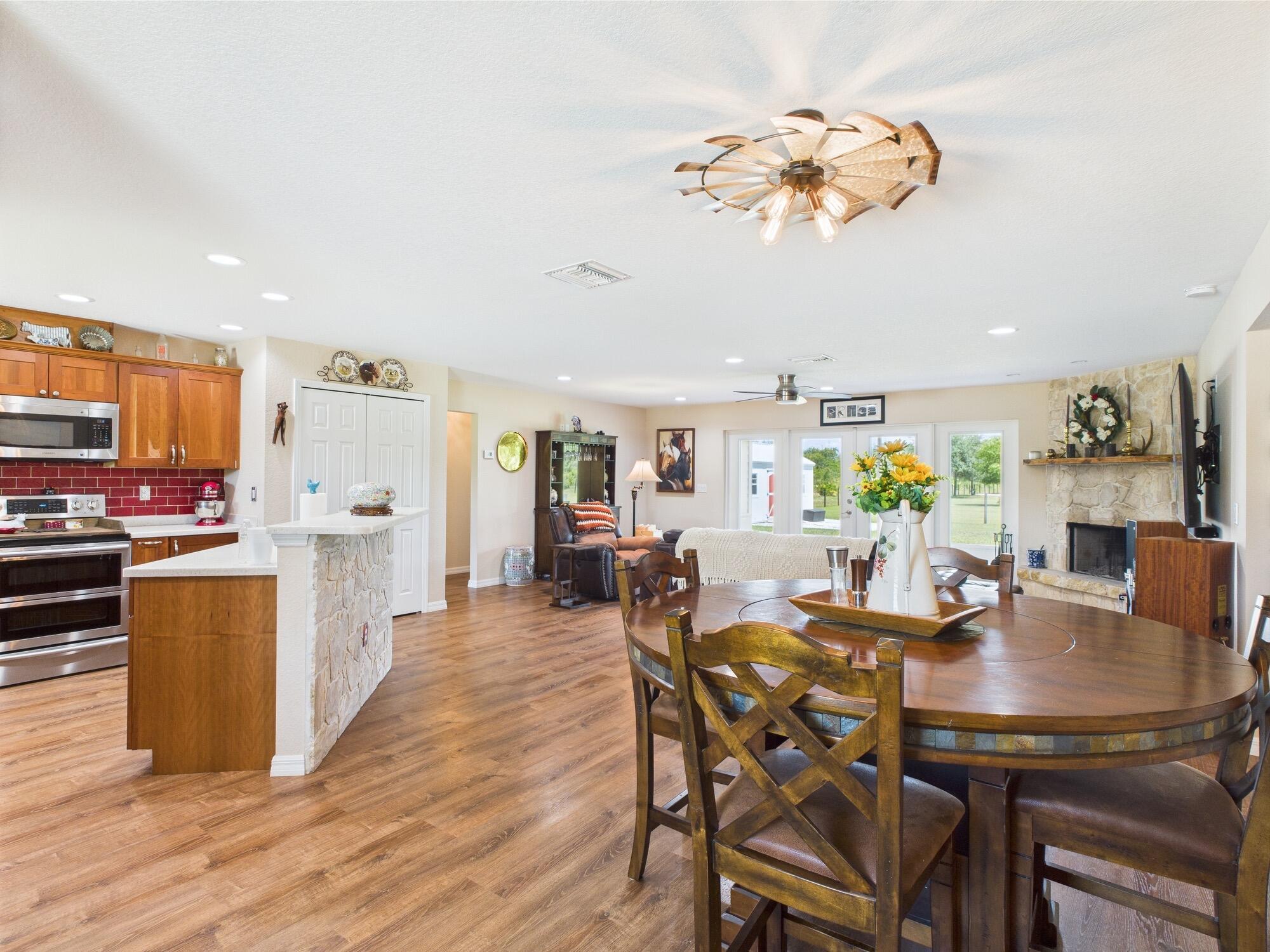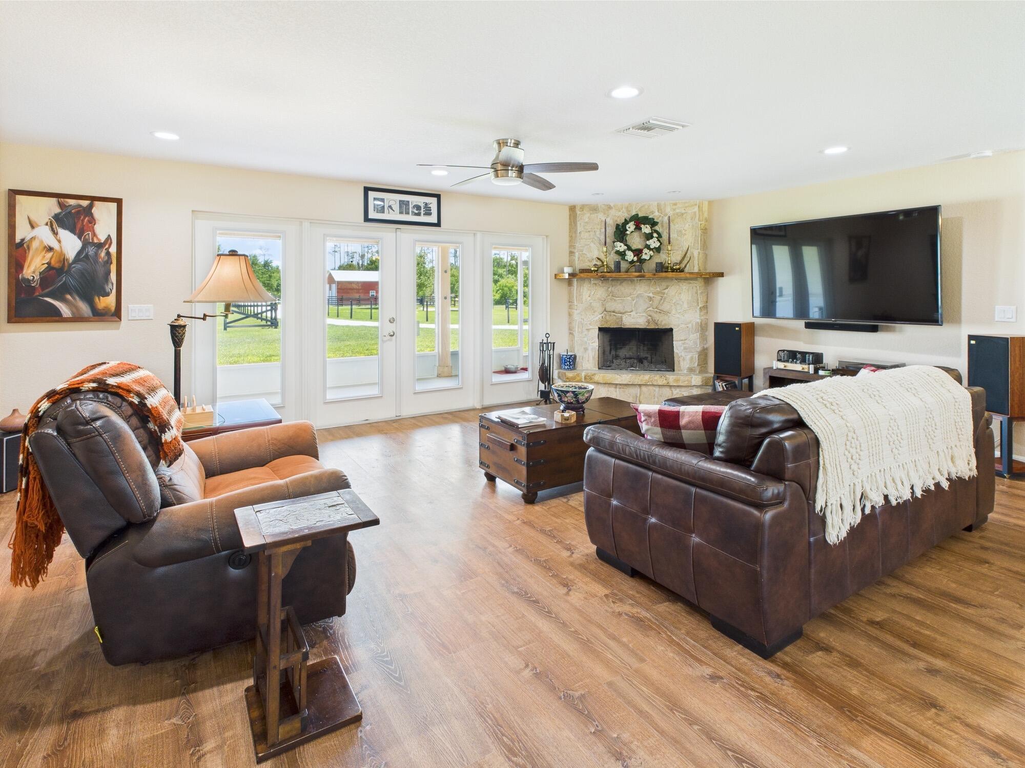 Horse Enthusiasts Dream! Custom Home on 5+ acres in a gated community that is truly a Hidden Gem. This 3/3 is perfectly laid out with Modern Design and Rustic Charm. Enjoy the peaceful view on the screened in porch with tongue and groove ceilings. The Serenity offered on this 5.16 acre property will make you want to stay. This Pristine property has large 6 stall horse barn, tack room, 2 wash/grooming stations, 4 engineered paddocks and arena, and access to hundreds of miles of riding trails with the push of the button. Indian Hammock has over 3,000 acres of land with a private landing strip/hangar, lodge w restaurant and pool, hunting, skeet shooting, rifle range, tennis/pickleball courts, over 100 miles of trails, and so much more!