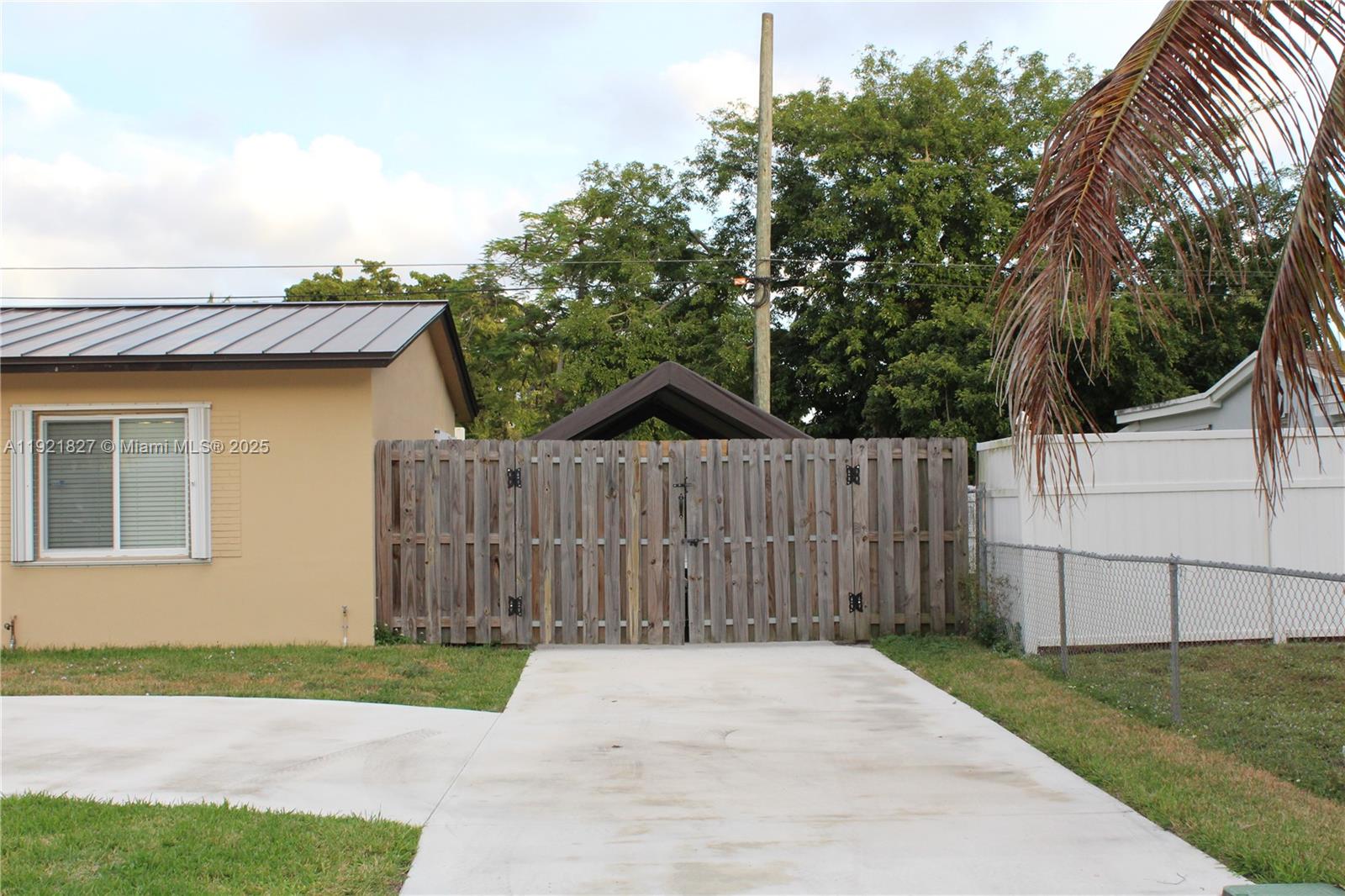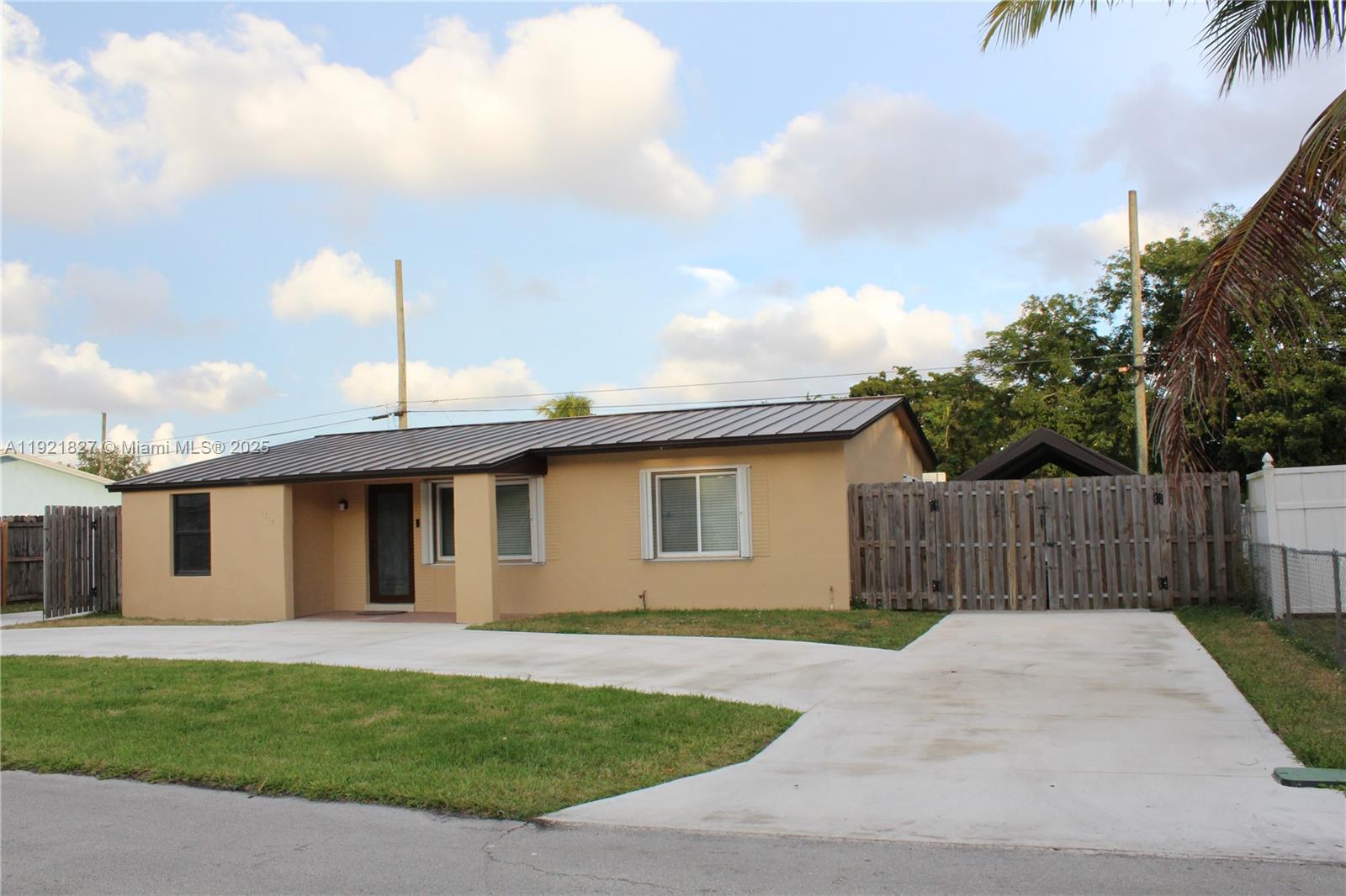 Motivated Seller! Beautifully updated 3-bed, 2-bath single-family home in Hollywood. Home features tile flooring in most areas, a new full bathroom, Central AC/Heat, tankless water heater, new LG washer and dryer, and LG stainless dishwasher (2 years old). Plumbing includes a new water line from the street, plus new soffits (2024) and all new electrical outlets. Exterior highlights include a 2021 metal roof (30-year life), impact front door, impact double frosted-glass back doors, shutters on all windows, underground power lines, and a new exterior electrical panel. Enjoy exceptional parking with a circle driveway plus two extended concrete slabs: 40x10.5 ft and 16x14 ft—room for a boat, RV, and up to 8 cars, plus a side carport. Property also includes a 10x10 shed and a 6-year-old wood fence. The backyard gate opens to the back street with no rear neighbors. Additional features include blinds on all windows, refrigerator, new mailbox, and great outdoor space. Conveniently located near major highways and Hard Rock. Move-in ready and easy to show!