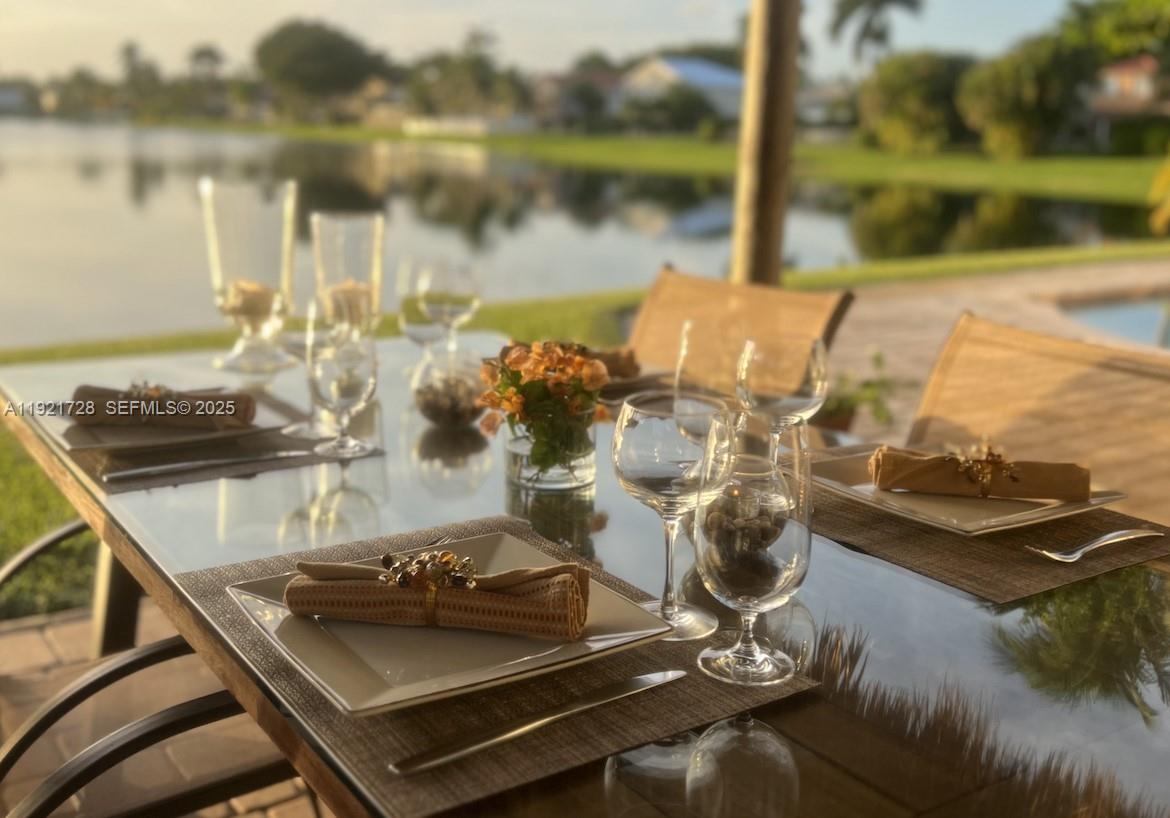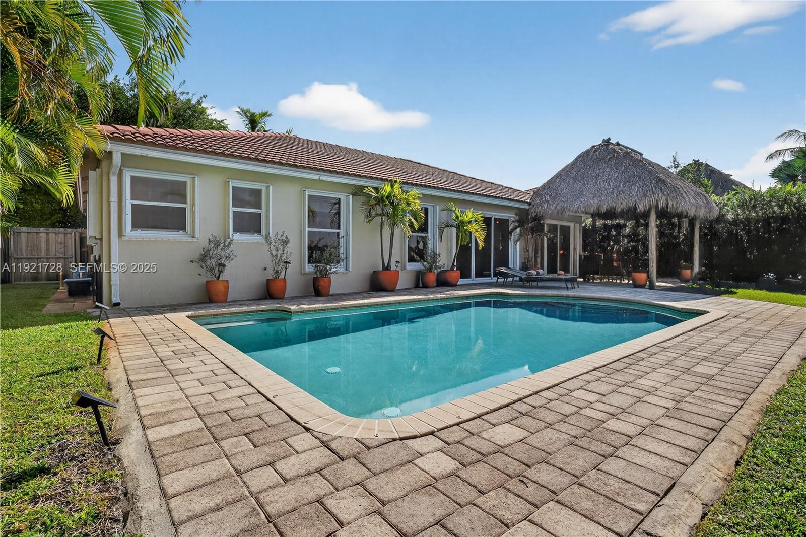 Experience true Florida lakefront living with year-round sunsets! Lakefront pool home offering a calm, open layout and unobstructed water views from the main living areas and primary suite. Bright interiors, natural tones, and wood accents create a warm atmosphere. The backyard features a covered tiki area with fan, perfect for gatherings, plus a portable grill and a Cuisinart griddle on wheels. House features 3 bedrooms + office/flex room, 2 bathrooms, impact protection (accordion and/or impact windows), salt-system pool, sprinkler with well, smart alarm, remote lock, auto-on lights, camera system. Pets OK. Home is sold FULLY FURNISHED with a warm, natural aesthetic and custom wood furniture, including artisan pieces and quality décor. Some art pieces are not included, but all electronics and fixtures are, making this property truly move-in ready and ideal for relocations. HOA is paid quarterly and averages $94/month. It covers lake maintenance and community aesthetics management. Prime location east of Old Cutler Road, close to top schools, parks, and Black Point Marina. Cutler Bay is a booming city in Miami-Dade, with plenty of attractions. The home is close to the Turnpike, taking just a 35-minute drive—outside rush hour—to reach Miami International Airport. Built in 1996 under the significantly improved 1994 Building Code. The house exterior / windows have a new fresh paint scheme that may not be represented in some photos. Great opportunity to own this unique home!