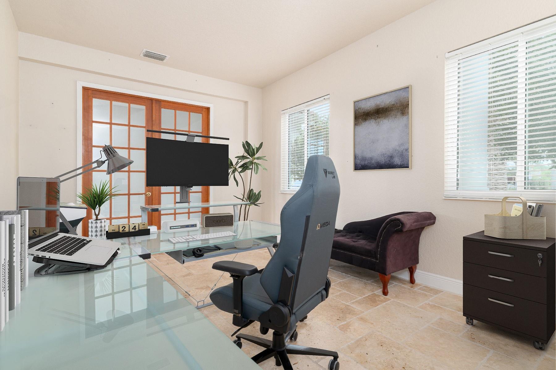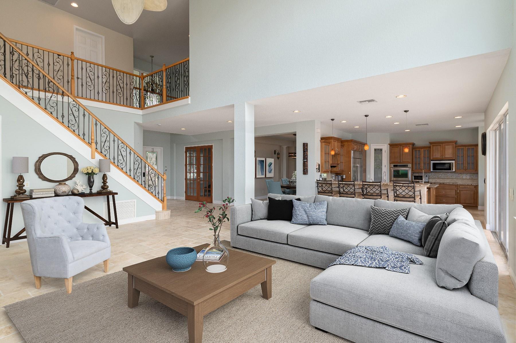 Welcome to this expansive 6-bedroom plus den, 4-bath home with a 3-car garage, situated in the highly sought-after Estates of Hammock Creek. Step outside to your own private oasis featuring a sparkling pool, spacious patio, and beautifully manicured landscaping—ideal for relaxing or entertaining. This corner lot spans just under half an acre. The home features all impact windows, a newer washer and dryer, pool vacuum, and smart AC thermostats. Community amenities include a clubhouse, fitness center, lakeside pool, tennis, pickleball, and basketball courts, along with a playground. Conveniently located in Palm City near top-rated schools and close to both I-95 and the Turnpike entrances. Seller is offering a credit at closing towards a new roof. Call today to schedule your private showing!