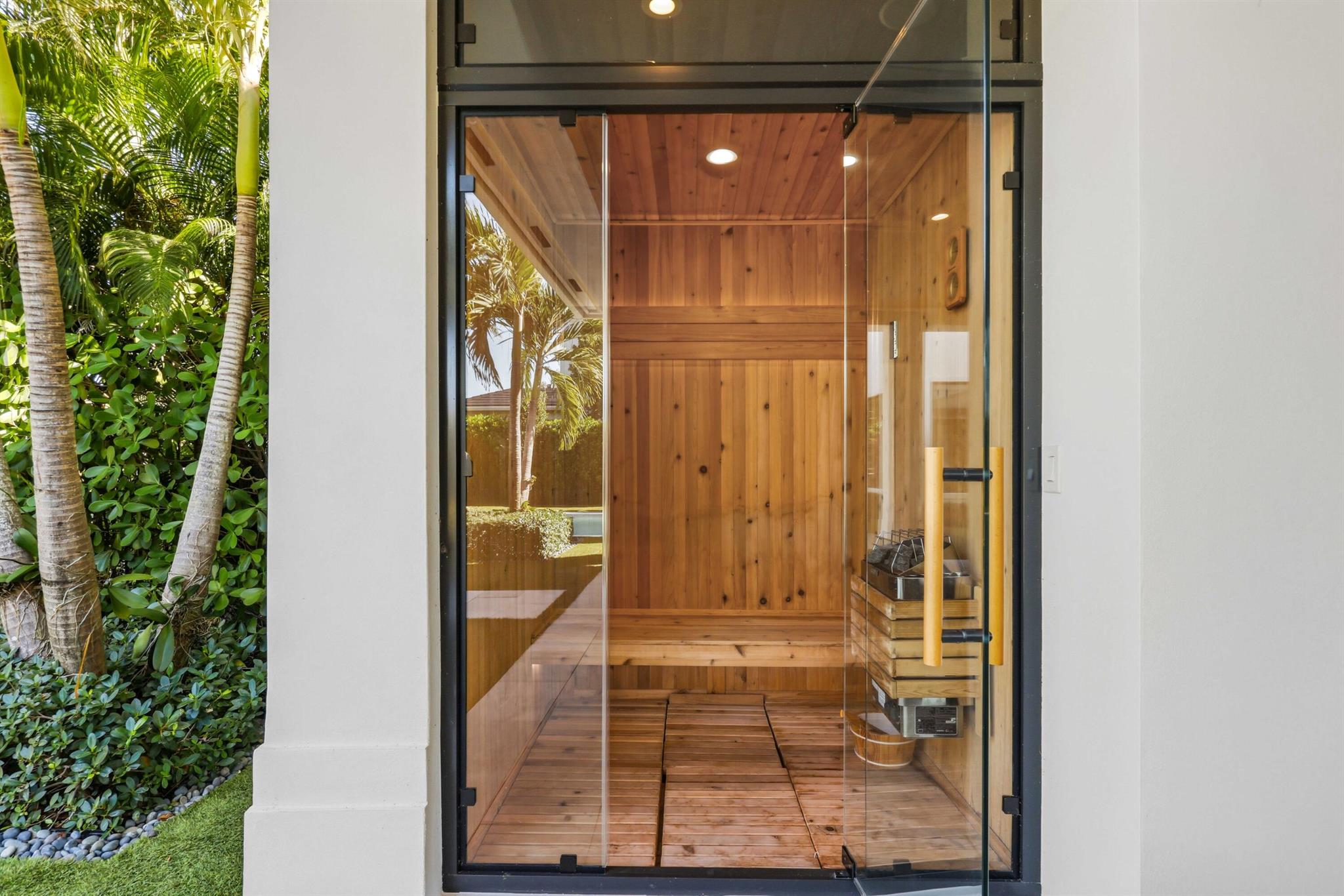 As you enter the home, you are immediately struck by the light streaming in from the stunning backyard, the soaring ceilings, and the thoughtful, high-end finishes. The home boasts a formal living room with tray ceilings and fireplace that flows into an expansive club room/office with beam ceiling detail, a full bathroom, and built-ins. The formal dining room has been outfitted with wainscoting and designer wallpaper and