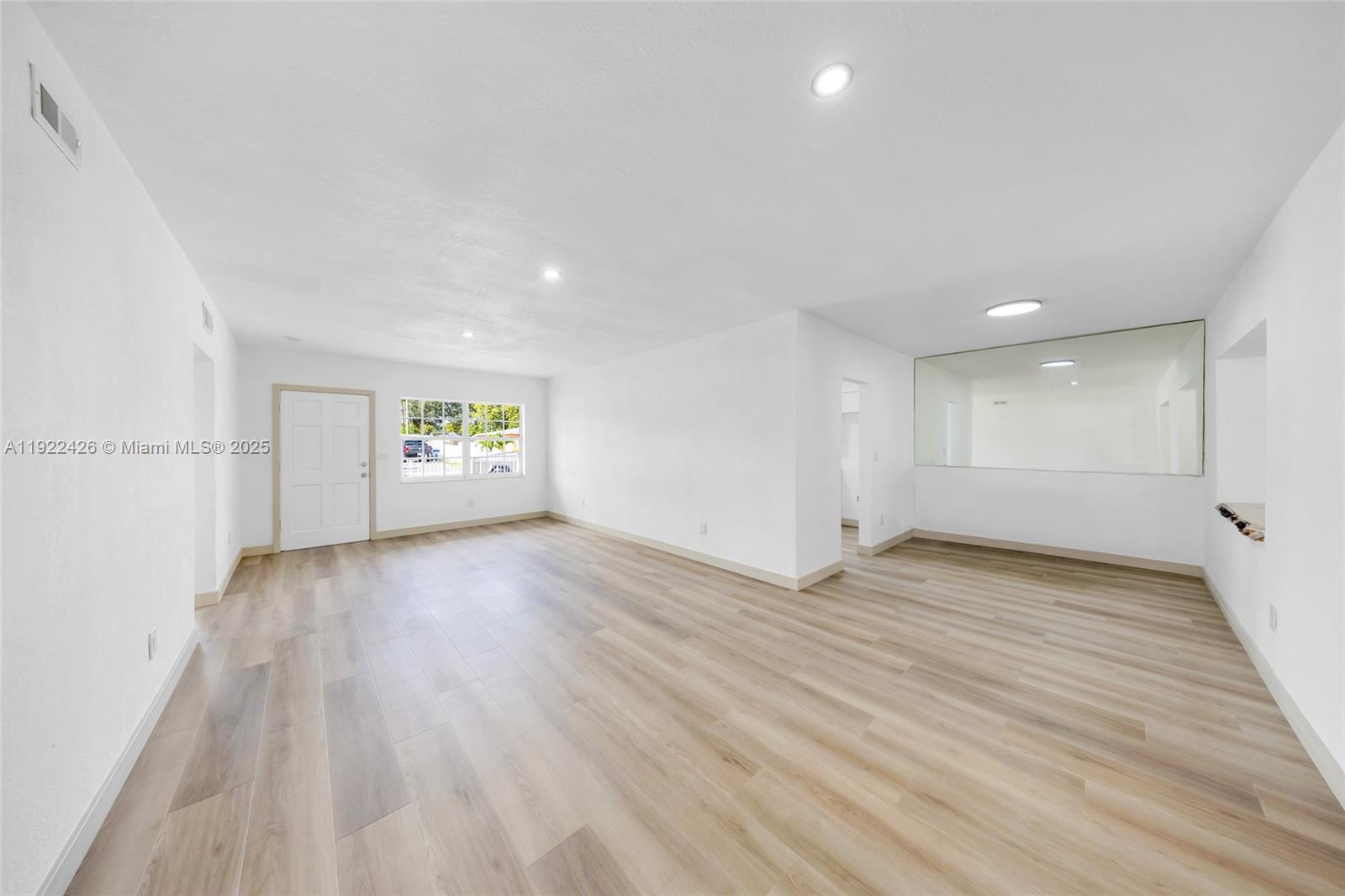 Welcome to this fully remodeled gem in the heart of Miami Gardens! This spacious 4-bed, 3-bath home has been thoughtfully redesigned with an open layout that showcases gorgeous water views the moment you walk in. The expanded living area flows seamlessly into the sun-room, creating the perfect space for relaxing or entertaining. The home offers incredible functionality with two entries (front door + kitchen-side entrance by the carport) and a separate utility room with laundry hookups. One side of the home features a private hallway with a beautifully updated guest bath, leading to the primary suite—complete with a huge walk-in closet, linen closet, and an additional attached room ideal for an office, nursery, or den. Two additional bedrooms sit down the same hallway, one with its own full ensuite bath. Upgrades include brand-new flooring, baseboards, interior/exterior paint, interior and exterior doors, a stunning new kitchen with modern cabinetry, FULL Samsung appliance package, farm-style sink faucet, and completely redesigned bathrooms featuring chic, stylish finishes. Step outside to a serene backyard with peaceful water views and a dock—your own private escape. Unbeatable location: Just 5 minutes to Hard Rock Stadium, close to Calder Casino, the Turnpike, I-95, Topgolf, Walmart Supercenter, Calder Race Course, schools, parks, and tons of shopping and dining.