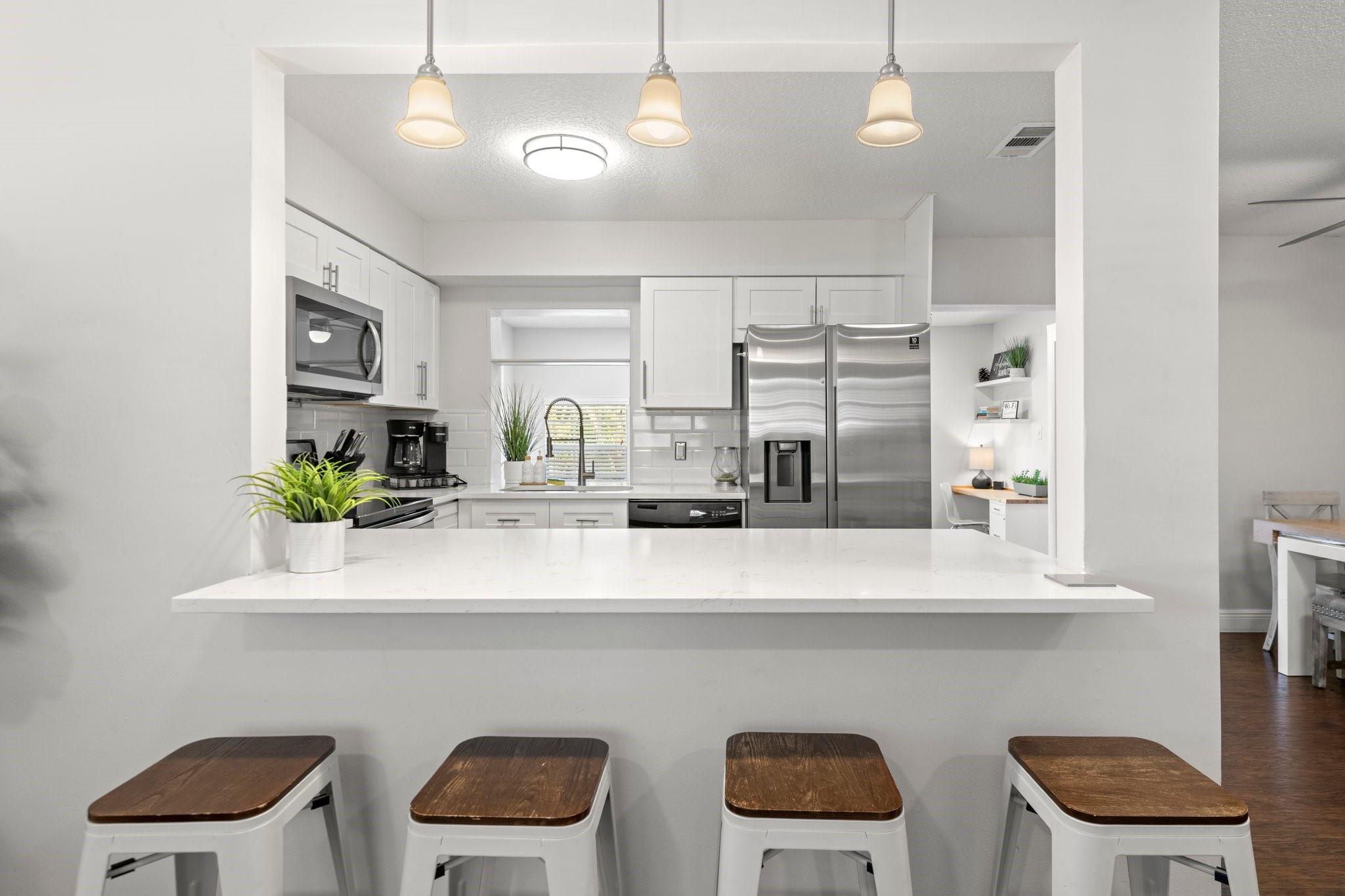 Discover your oasis in Palm Beach Gardens! This updated single-story home offers 3 bedrooms, 2 bathrooms, and an open-concept kitchen, living, and dining area. A bright sunroom with a built-in workstation adds charm and functionality. Outside, enjoy your private backyard with a newly refinished heated pool, perfect for soaking up the Florida sun or entertaining guests. For eco-conscious buyers, the property includes a universal EV charging station for added convenience. Whether you’re looking for a move-in-ready home or a great short-term rental, this property has it all. It’s even available fully furnished with an acceptable offer, making it easy to settle in or start earning income right away. Don’t miss this slice of paradise, schedule your showing today!