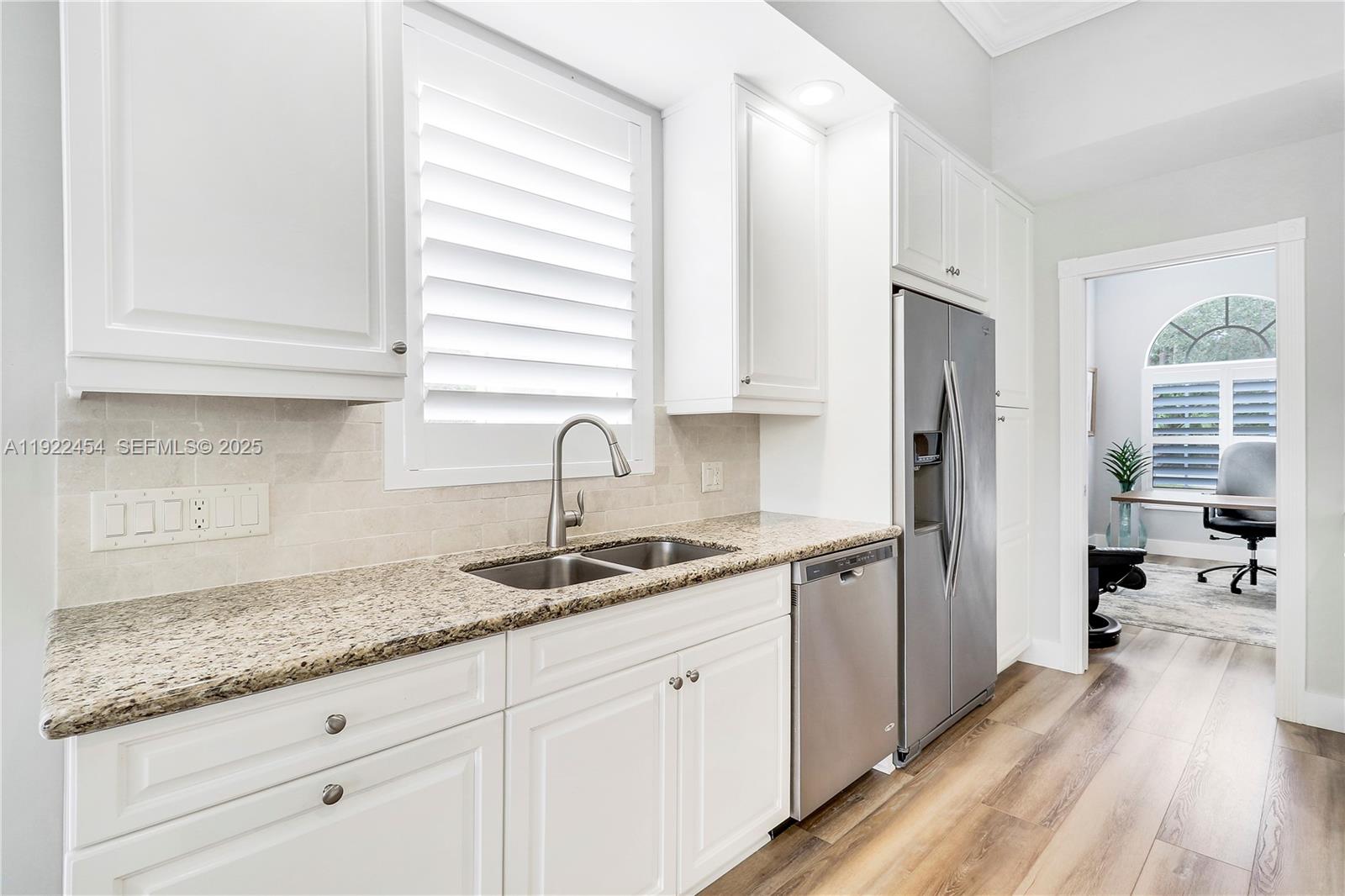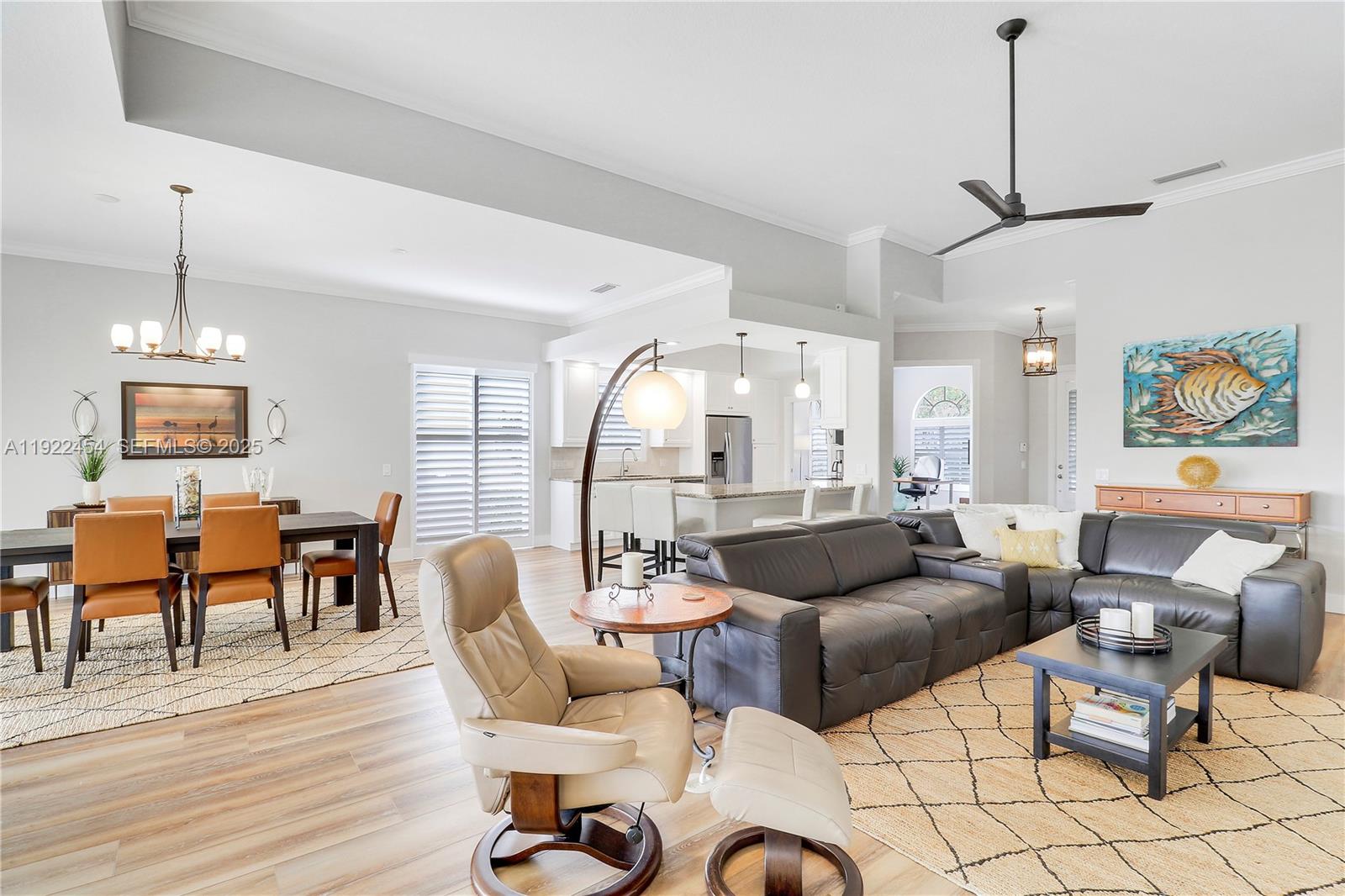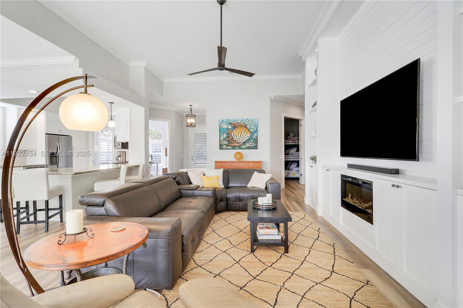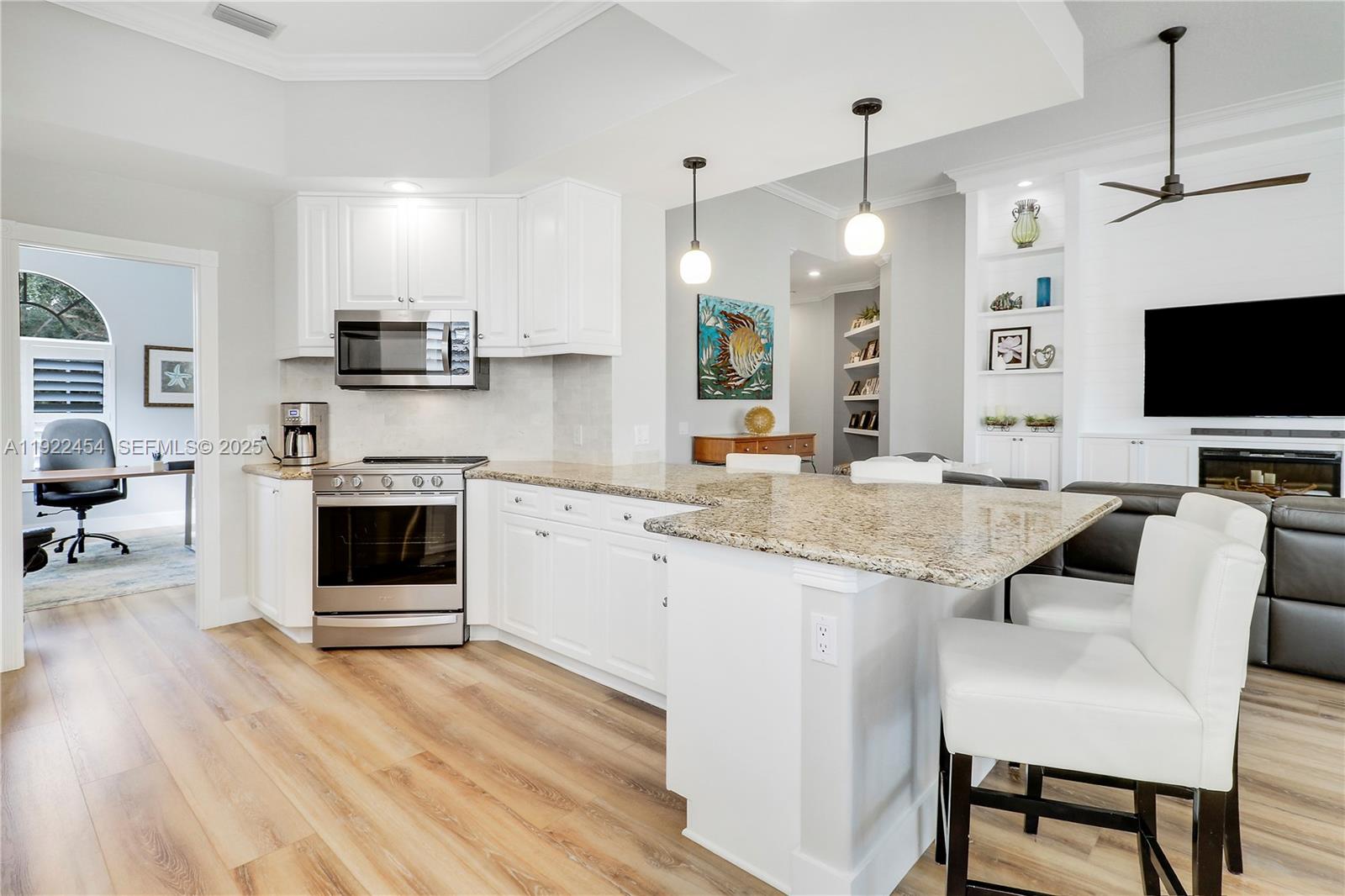 This immaculate Lakefront Extended Oakmont is the one you have been waiting for. Brand New Roof & Gutters 2025 -Completely remodeled with new kitchen cabinets and granite countertops, stainless steel appliances, wide plank wood grain LVT flooring throughout. Both bathrooms have been updated. Custom wall unit with fireplace and shiplap siding. All closets have built-ins and solid bi-fold doors. Freshly painted throughout. Newer washer and dryer, epoxy flooring in garage. Outside screened in lanai includes a fixed permanent awning (20'X40') and Hot Tub with plenty of room for outdoor entertaining.