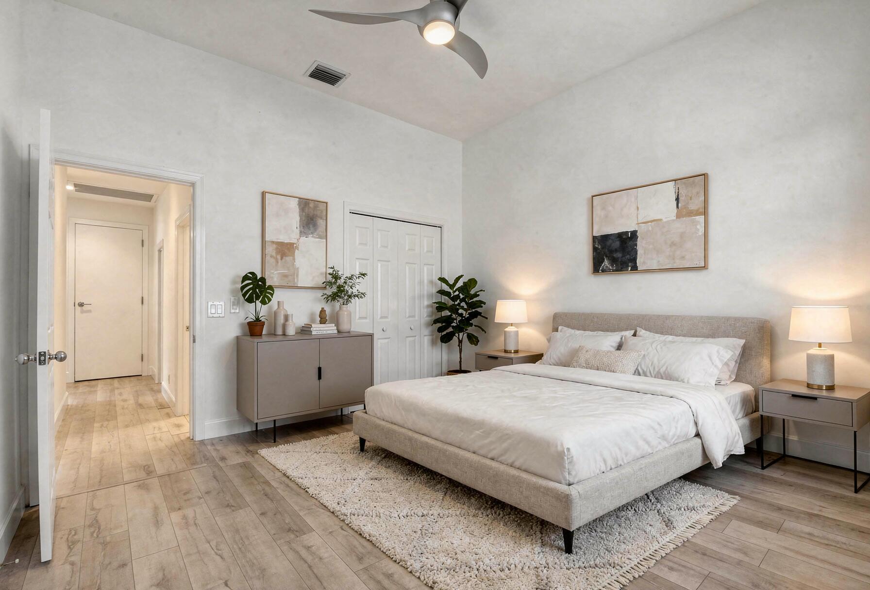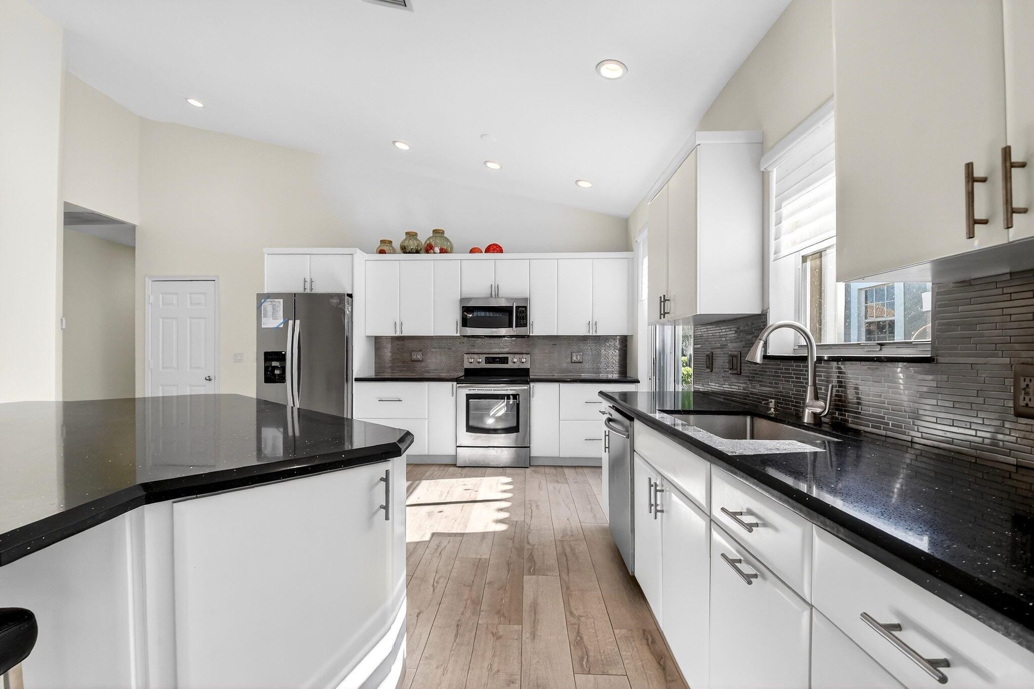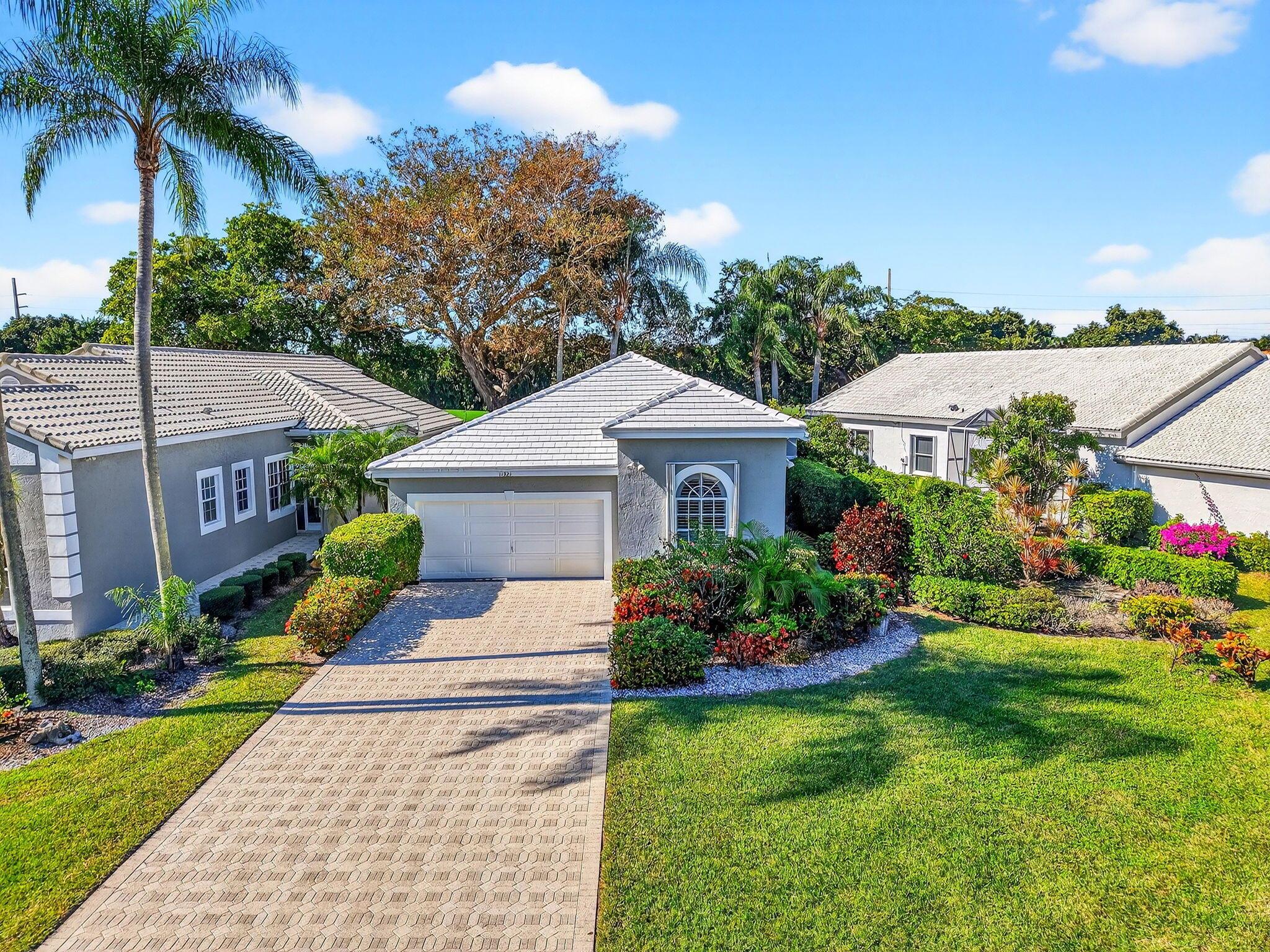 NEW ROOF & HVAC (2025)! This freshly painted and well-maintained 3-bedroom, 2-bath home is tucked away on a quiet cul-de-sac in the highly desirable Hampton Fairways section of Indian Spring Country Club--a gated 55+ community where membership is optional and peace of mind starts at the manned security gate. Enjoy golf course and water views from your screened-in lanai, perfect for relaxing mornings or tranquil evenings. The home features accordion hurricane shutters, a 2017 water heater, brand-new HVAC, and a brand-new French door refrigerator. The kitchen was tastefully updated in 2014, featuring granite countertops, a center island, and a smart layout for both entertaining and everyday living.The third bedroom, with elegant French doors, offers flexible use as a den, office