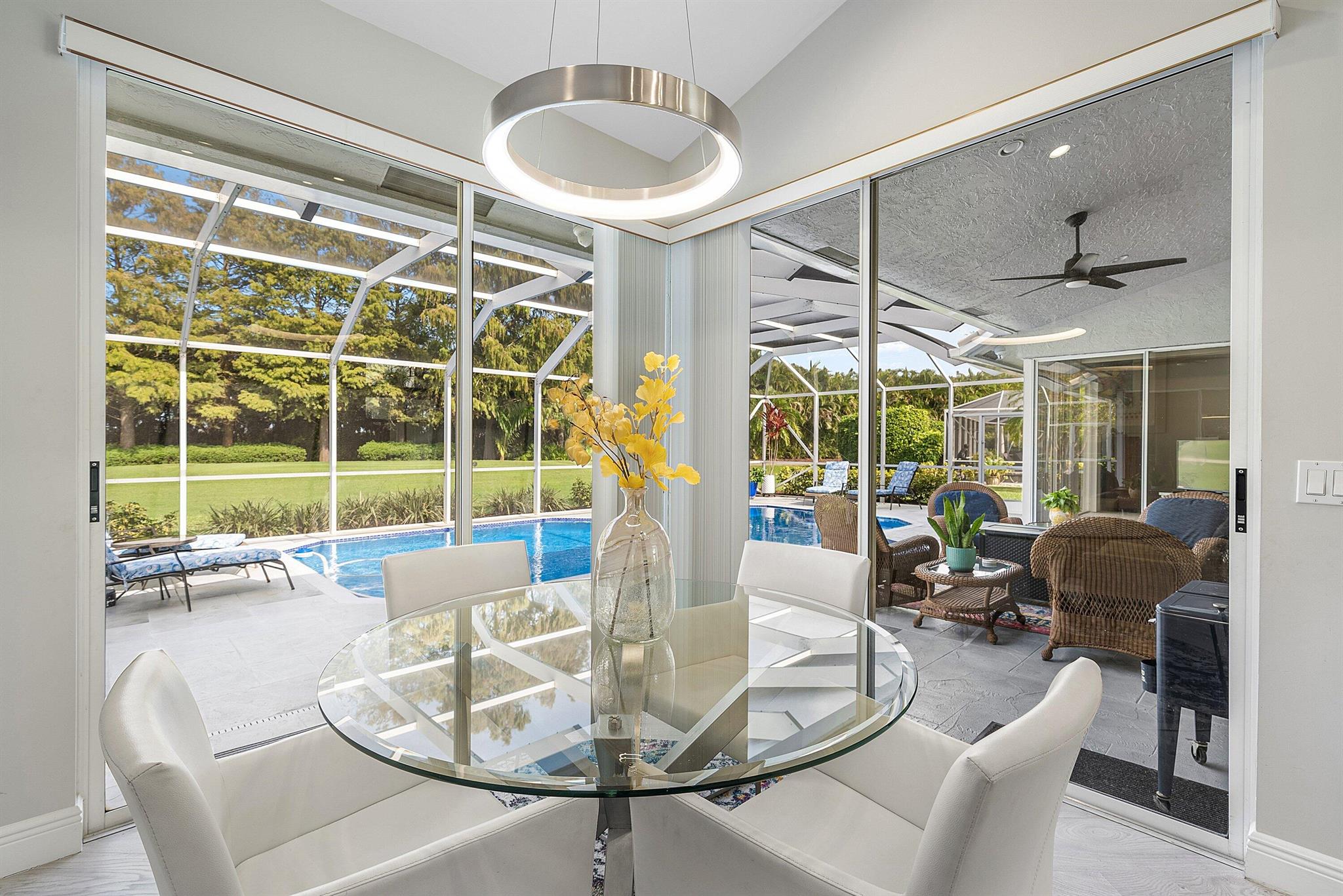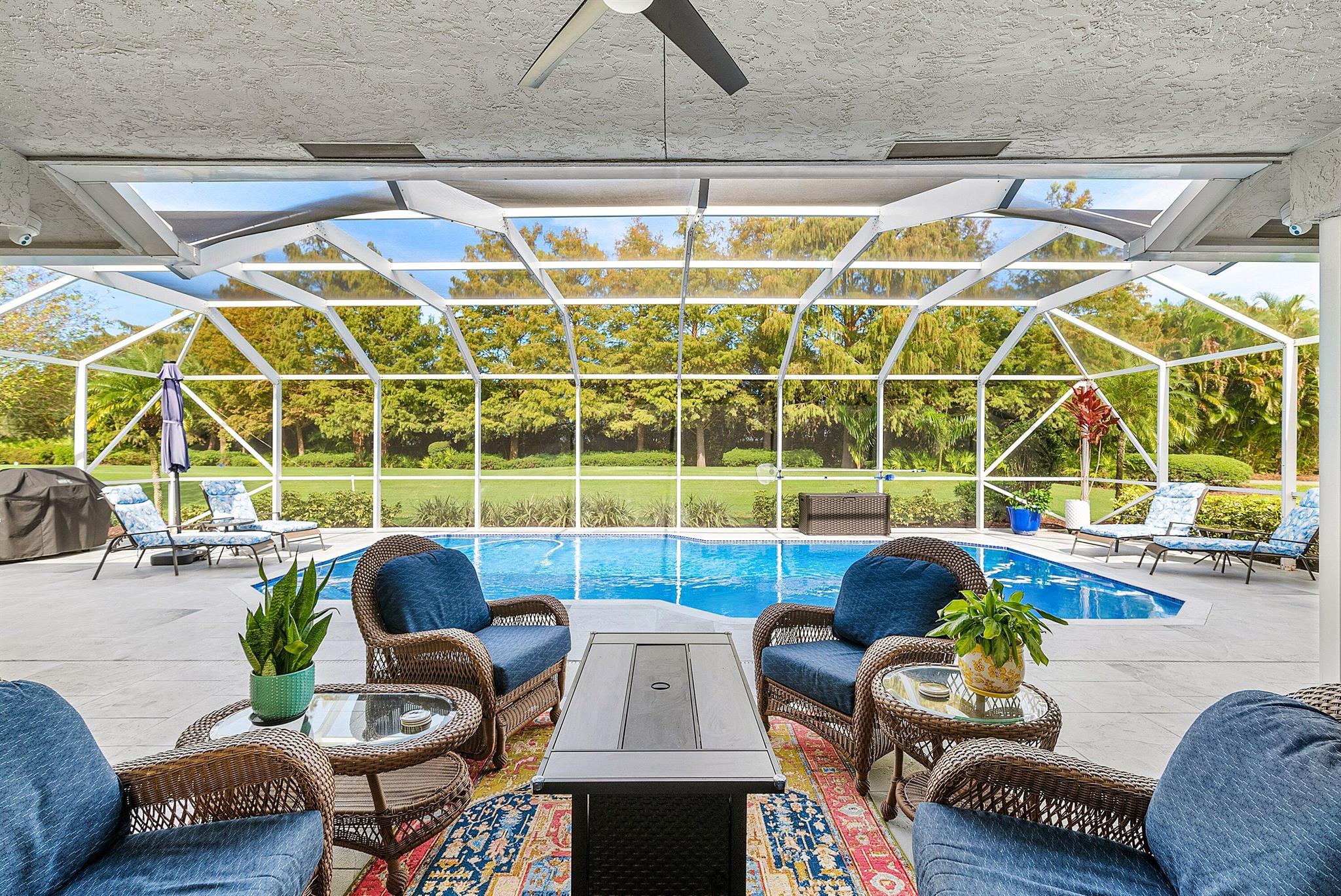 This stunning, updated home blends modern style with everyday luxury, offering over 2,700 sq. ft. of beautifully designed living space, including 3 bedrooms plus a convertible bedroom/den/office, 2.5 baths, and 2.5 garage spaces. Set on an ultra-private golf-front and preserved lot with its own recently updated heated pool, it is truly move-in ready From the moment you enter, the home makes an unforgettable impression. Oversized wall-to-wall sliders in the living room, breakfast area, and primary bedroom flood the space with natural light and deliver uninterrupted views of your personal paradise.Luxury vinyl flooring, no popcorn ceilings.