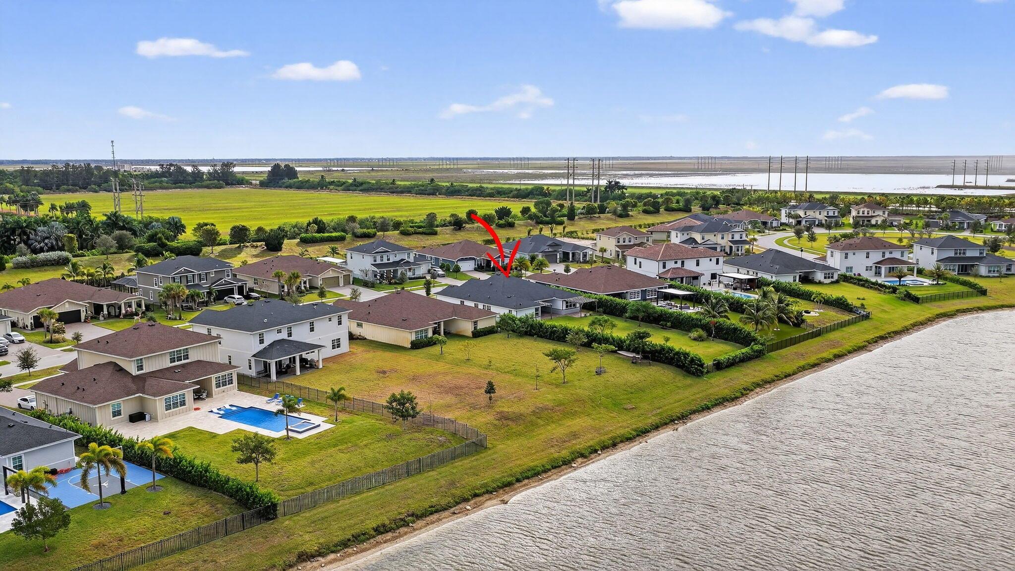 A MUST-SEE! Stunning lake and sunset views from this one-story luxury residence (2022|4BD|3.5BA|3CG) in the gated community of Arden. Features full impact windows/doors, porcelain tile, and an open chef's kitchen with quartz counters, oversized island, gas range, and stainless appliances. Bright split floorplan with a lake-view primary suite. Enjoy privacy with a large fenced yard, lake access, tall clusia hedge, and room for a pool. Arden offers resort-style amenities, 24/7 security, and top-rated schools, including a new elementary school accessible by golf cart.. Prime location 10 minutes to Wellington horse shows and polo venues, 20 minutes to Palm Beach International Airport, and 30 minutes to West Palm Beach downtown and Beaches.