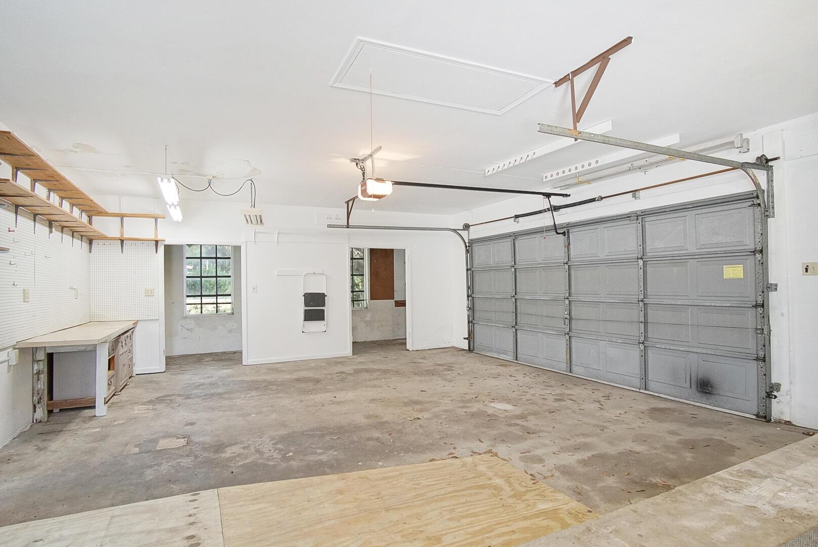 Discover this well maintained 4 bedroom, 3 bathroom CBS, 0.5 acre estate featuring a 2023 metal roof, full accordion shutters, and a private fenced yard with a pool, expansive patio, and a 10x20 shed that conveys. Inside, the home offers a comfortable layout with plenty of space for living and entertaining. The oversized 2.5 car garage includes its own full size bathroom, creating a great opportunity to convert it into an ADU or keep it an ideal workshop. This property delivers security, versatility, and true Florida living.