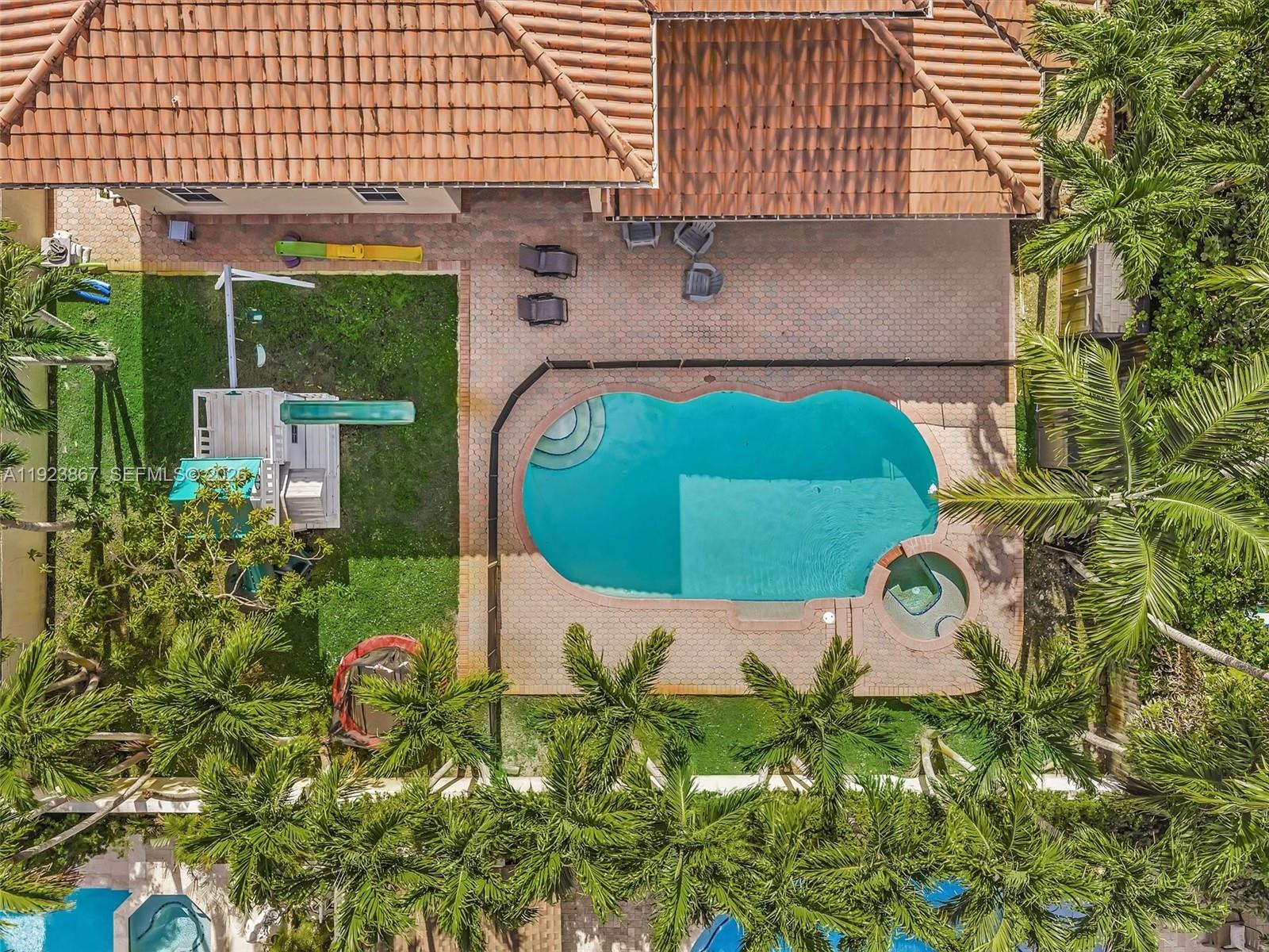 Price Improved. Welcome to this stunning 5-bedroom, 4-bath home located in the exclusive gated community of Silvercrest North in Miami Lakes. This beautifully maintained residence offers a bright, open floor plan with soaring ceilings, elegant architectural details, and a striking wrought-iron balcony overlook. The spacious living areas flow seamlessly into a gourmet kitchen featuring rich wood cabinetry, granite countertops, a large center island, and stainless-steel appliances. The roof was replaced in November 2019, offering added peace of mind. The thoughtfully designed two-story layout includes one full bedroom and bathroom on the main level—ideal for guests or multigenerational living. Upstairs, generously sized bedrooms and flexible spaces provide comfort and versatility for today’s lifestyle. Enjoy true indoor-outdoor living in your private backyard oasis with a sparkling pool, spa, covered patio, lush landscaping, and a custom swing set that enhances the family-friendly appeal. A paved driveway and well-kept exterior add to the home’s impressive curb appeal. Ideally situated in a quiet, highly sought-after community near top-rated schools, parks, shopping, and major highways, this home offers exceptional comfort, convenience, and value. No Saturday showings.