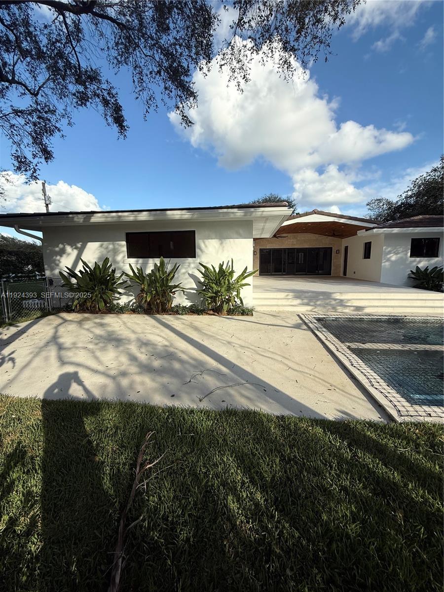Completely renovated modern estate on an expansive corner lot in desirable Pinecrest. Stripped to the shell and rebuilt, Fully reimagined and Reconstructed from the inside out, Every detail is brand-new including electrical, plumbing, roof and impact windows and doors throughout. 3862sqft living area, as per recent appraisal. This home blends modern luxury with warm natural finishes, offering an elegant, open-concept design throughout. This stunning 5 bedrooms and 4 bath home features a spacious open floor plan with vaulted ceilings, natural finishes, and abundant light throughout. The designer kitchen offers custom wood cabinetry, premium stone counters, an oversized waterfall island, induction cooktop, double oven, and full wall of pantry storage. The open layout flows into a bright and oversized family/dining/living space, perfect for entertaining. The primary suite includes a luxurious spa-style bathroom with double vanity, freestanding tub, and large glass-enclosed shower. 48x48 porcelain flooring throughout the main living areas, and beautiful natural wood flooring in all bedrooms. Additional flexible rooms are perfect for office, gym or playroom. Enjoy the oversized covered terrace with wood ceiling and modern fans, Newly built pool with safety net, and a spacious backyard surrounded by mature trees for privacy. Long paver driveway with ample parking. Beautifully remodeled and move-in ready, located in one of Pinecrest’s most sought-after neighborhoods.