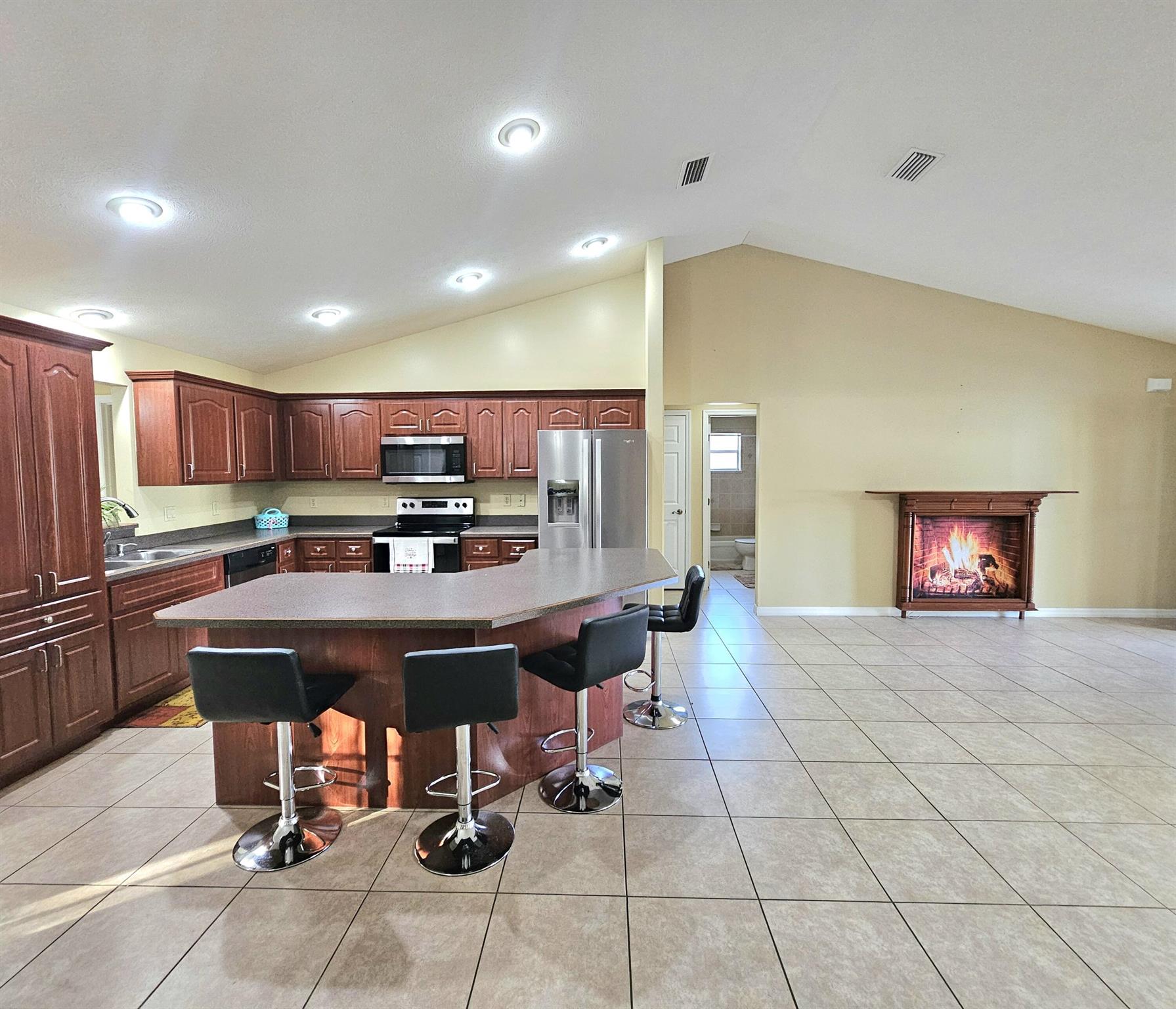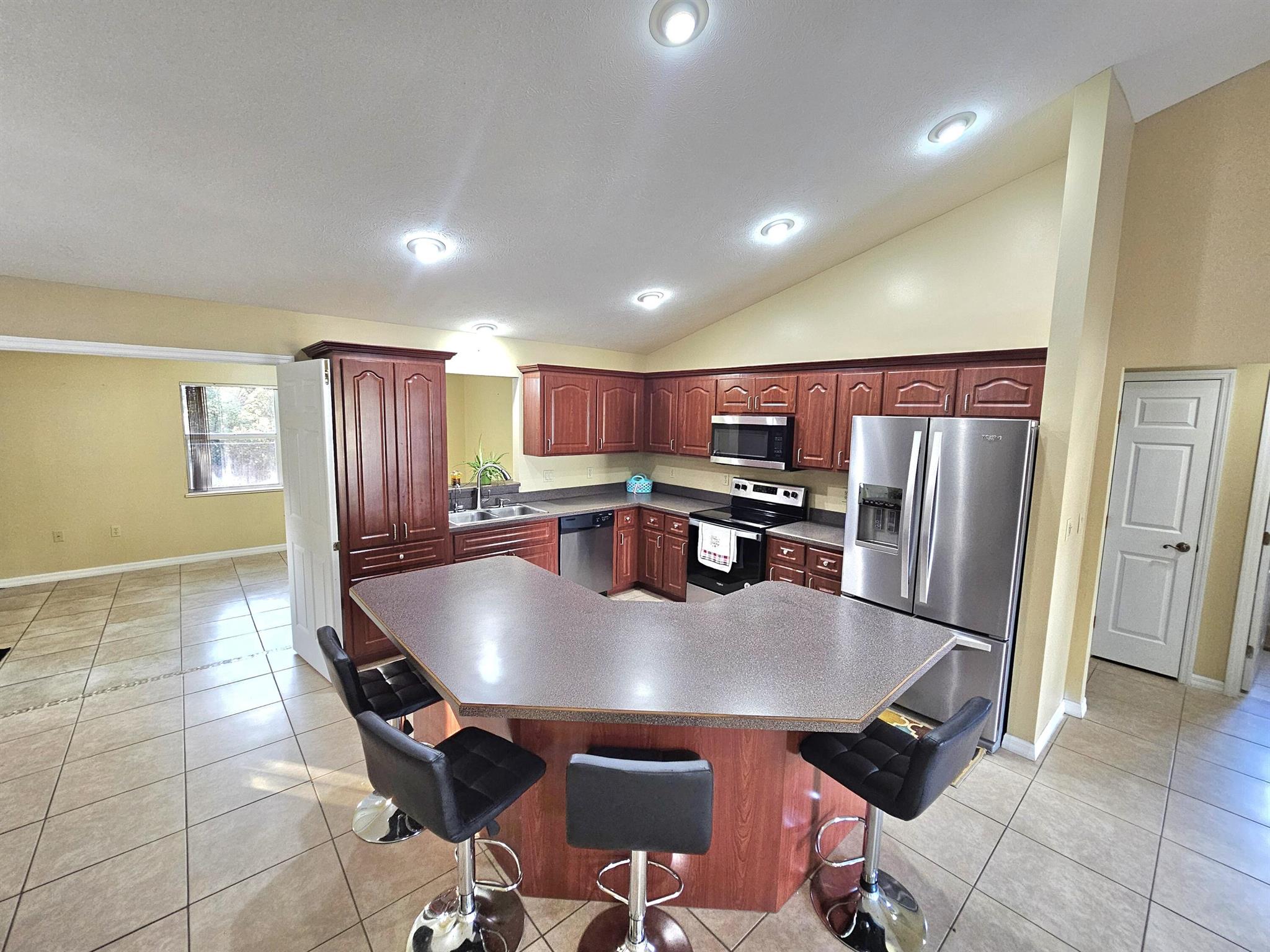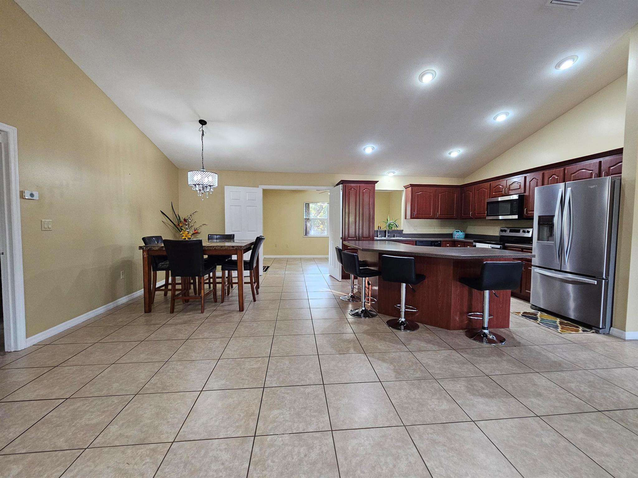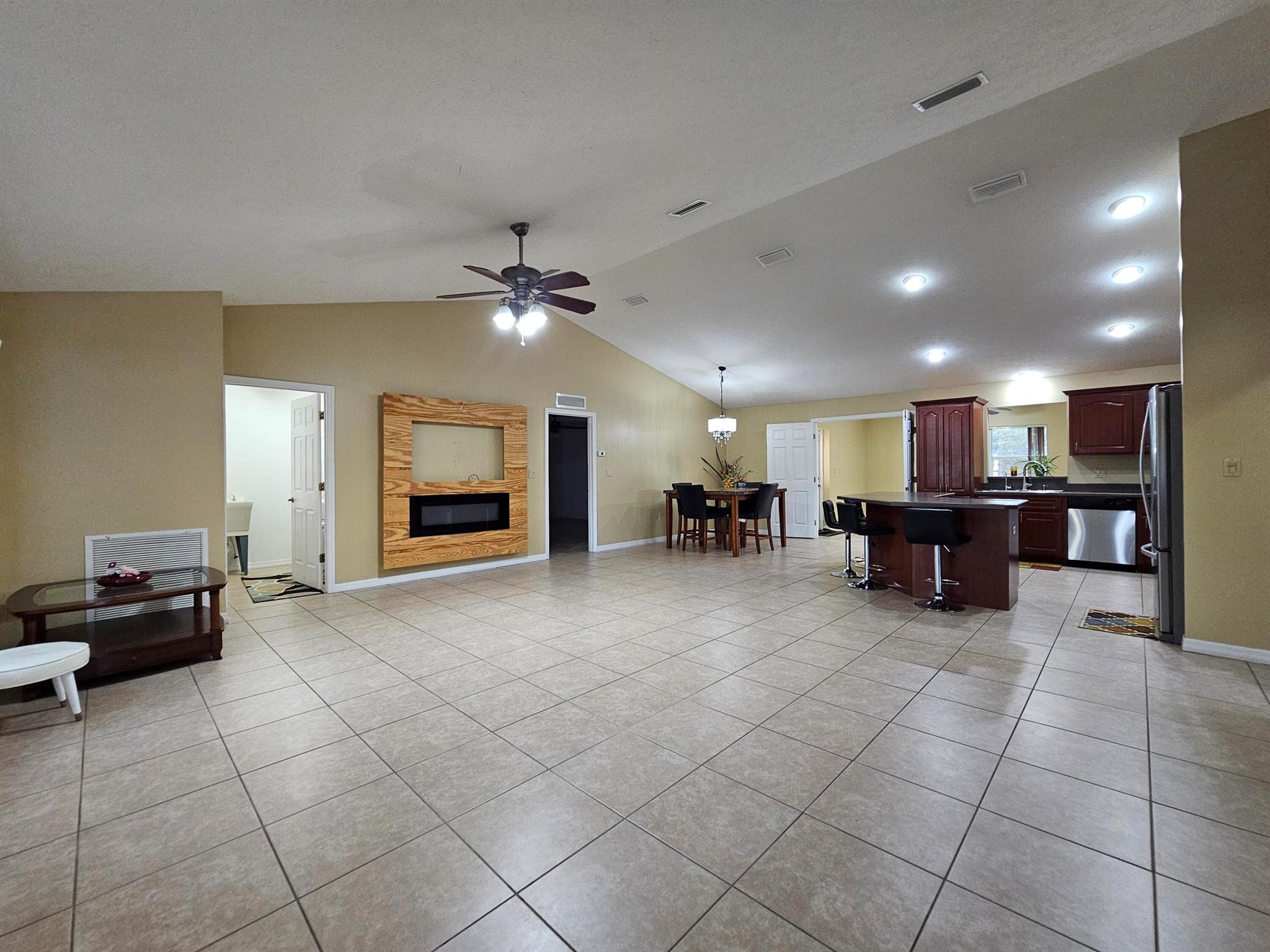 Charming~ CBS 4-bedroom, 2-bath home with 2-car garage in a great location and NO HOA! Sits on 0.43 Acres. This property offers a spacious split floor plan with ceramic tile throughout and generously sized rooms. Enjoy peace of mind with a water well featuring an excellent softener system, reverse osmosis, and septic. Home includes stainless steel appliances (2019), an A/C with a new compressor installed in 2021, and fresh interior paint. An alarm system with cables and connections is already in place. The property is fully enclosed with chain-link fencing and also features an additional water well and pump with 5 sprinklers for irrigation~perfect for keeping the yard lush. High and dry location. Call for a free tour today!