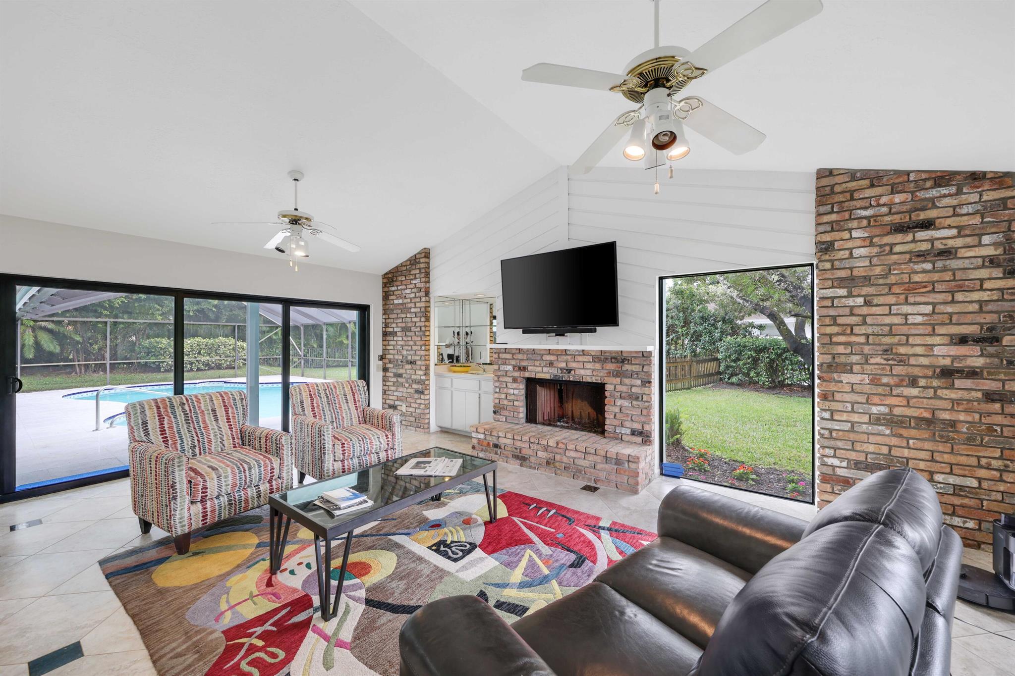 Inviting 3-bedroom, 2-bath CBS home on a spacious .57-acre corner lot in Whispering Trails, offering the layout and room so many want in Jupiter. The split design adds privacy between the large primary suite and guest rooms, and the generous family room features a fireplace that instantly feels like the heart of the home. The kitchen and living areas connect easily with views out to the wide covered patio and screened pool. The extended driveway and three-car garage provide excellent parking and storage. Weekends are simple here with easy access to Jupiter beaches and parks, Riverbend Park, golf, and popular dining. Spend your free time visiting the Jupiter Inlet Lighthouse and local spots such as Guanabanas, U-Tiki, and Harbourside Place. Low HOA fees make this home even more appealing.