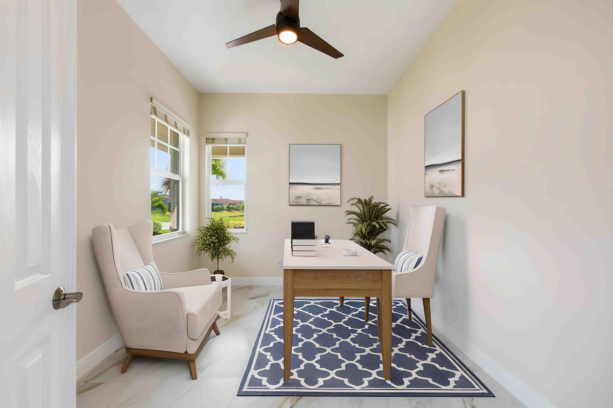 Welcome to this beautifully updated home located in the highly desirable, gated community of PGA Village Verano. Modern, bright, and meticulously maintained, this residence offers an open layout ideal for comfortable living and effortless entertaining.The home features brand-new flooring, a fully updated bathroom, fresh interior paint, and new fixtures throughout. The kitchen has been enhanced with a new dishwasher, new stove, and an upgraded sink, offering both style and functionality. The main living spaces flow seamlessly to the covered lanai and upgraded outdoor area--perfect for relaxing or hosting gatherings.