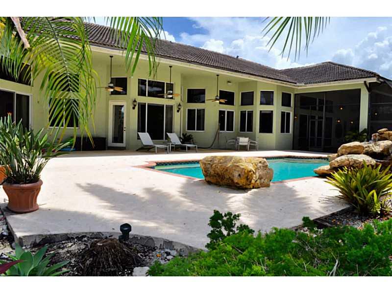 Beautiful property, approximately 3 acres lot over 7000 sqft dream home that is beyond your expectations! Located on a private & quiet street, 5 suites, office and loft. White kitchen cabinets, granite counter tops, cooking island, double oven, breakfast area & family room, living room with romantic fireplace, 15ft ceilings, hurricane impact windows, surround sound system in all rooms. Tiki hut, wood deck, tropical landscaping with waterfall pool, 300 mature palm trees.