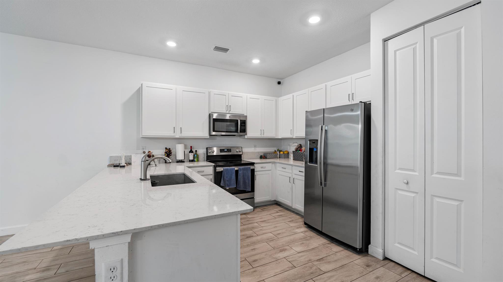 Built in 2021, this attractive 4-bedroom, 2.5-bath townhouse located in the gated Arbor Parc community offers approximately 1,861 sq ft of living space. The open-concept main floor features a modern kitchen flowing into a spacious living area, which extends to a private, fenced-in deck -- ideal for indoor-outdoor living. Upstairs, the home includes a generous primary suite with walk-in closet and ensuite bath, three additional bedrooms, a guest bath, and a convenient laundry room. With impact windows throughout, a one-car garage, and access to community amenities including pool, clubhouse, lakes and trails, this residence provides a comfortable, low-maintenance lifestyle in a welcoming and secure neighborhood.