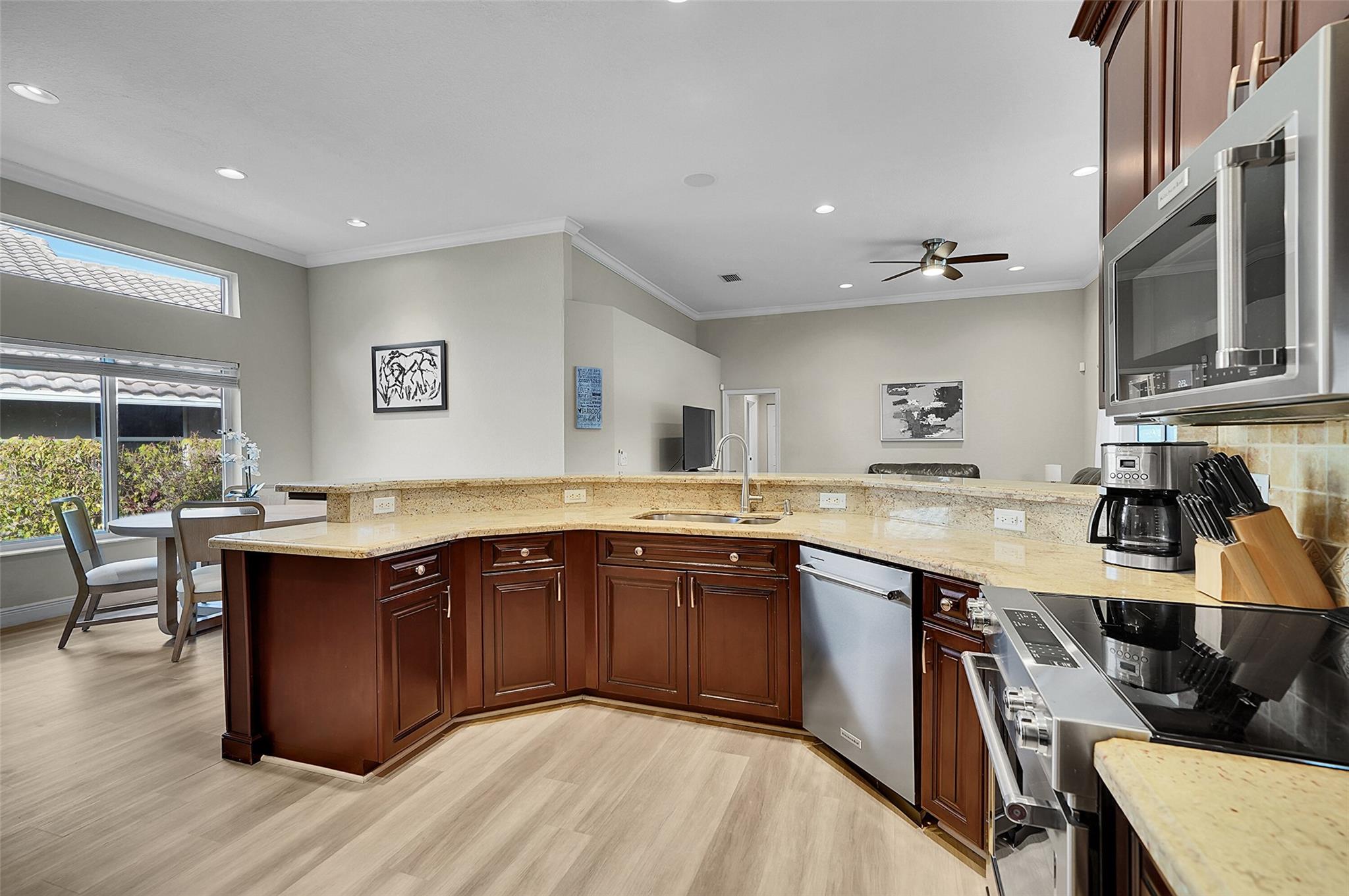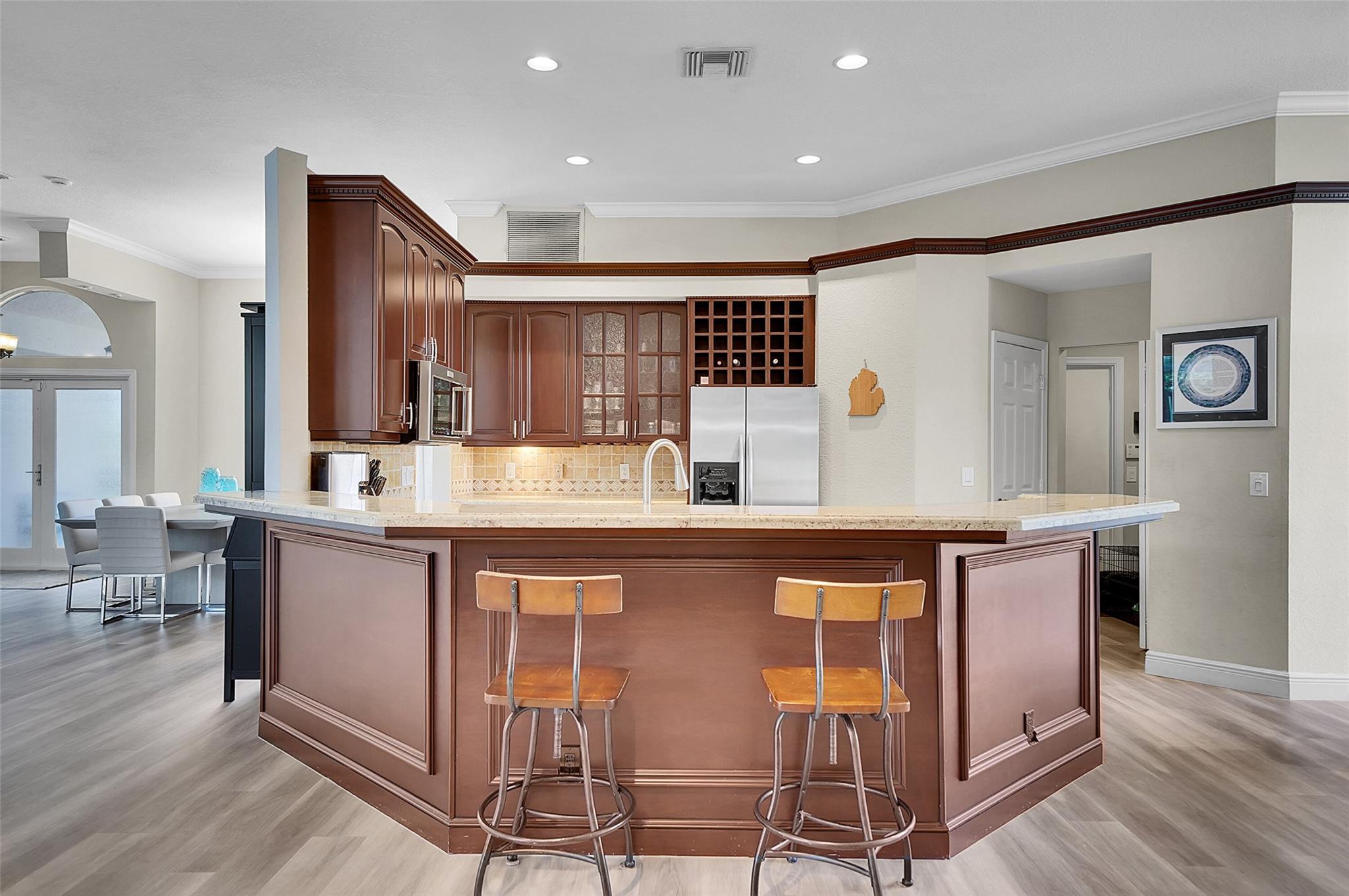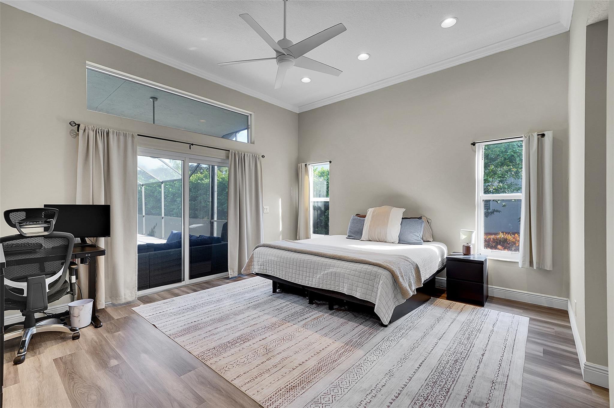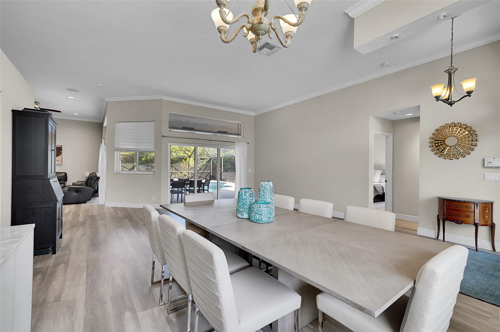 Welcome to this beautifully updated 4-bedroom, 2.5-bath Pool home in the prestigious Kensington Gardens community. Featuring an Oversized 11,500ft. lot, modern kitchen, a renovated primary suite with spa-like bathroom, and new luxury vinyl flooring throughout, this home blends comfort with style. The split bedroom floor plan offers privacy, while impact windows provide peace of mind. Enjoy the convenience of a circular driveway and 2-car garage, plus the benefit of a top-rated school district. Major updates include a Screened in Saltwater pool, Sprinkler on a well. 2020 AC, a 2015 AC, and a 2009 roof, Solar panels for a lower electric bill—ensuring long-term value. This is the perfect combination of location, lifestyle, and lasting quality. HOA fees only $219 per Quarterly.