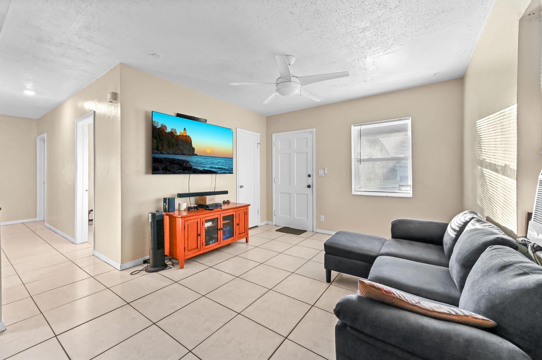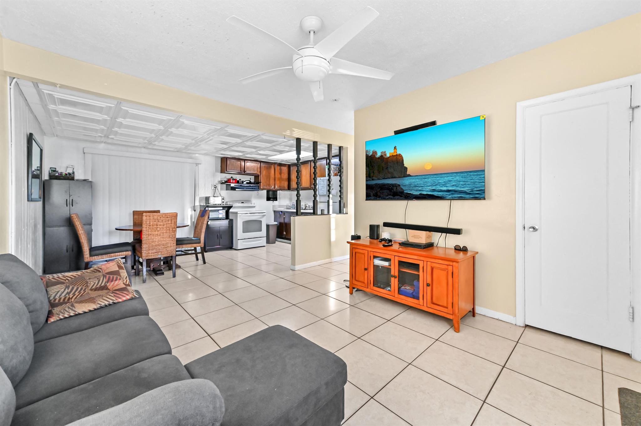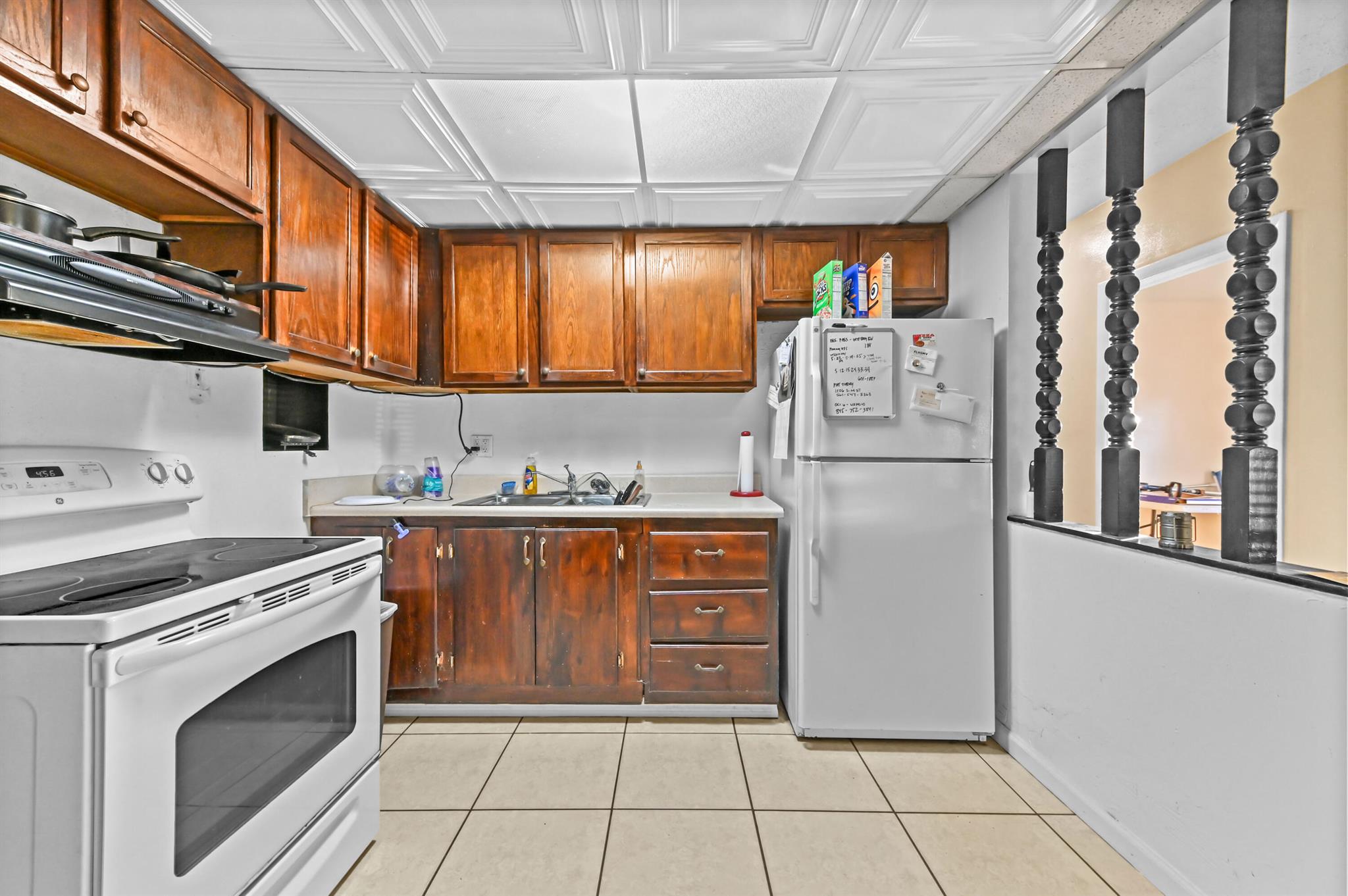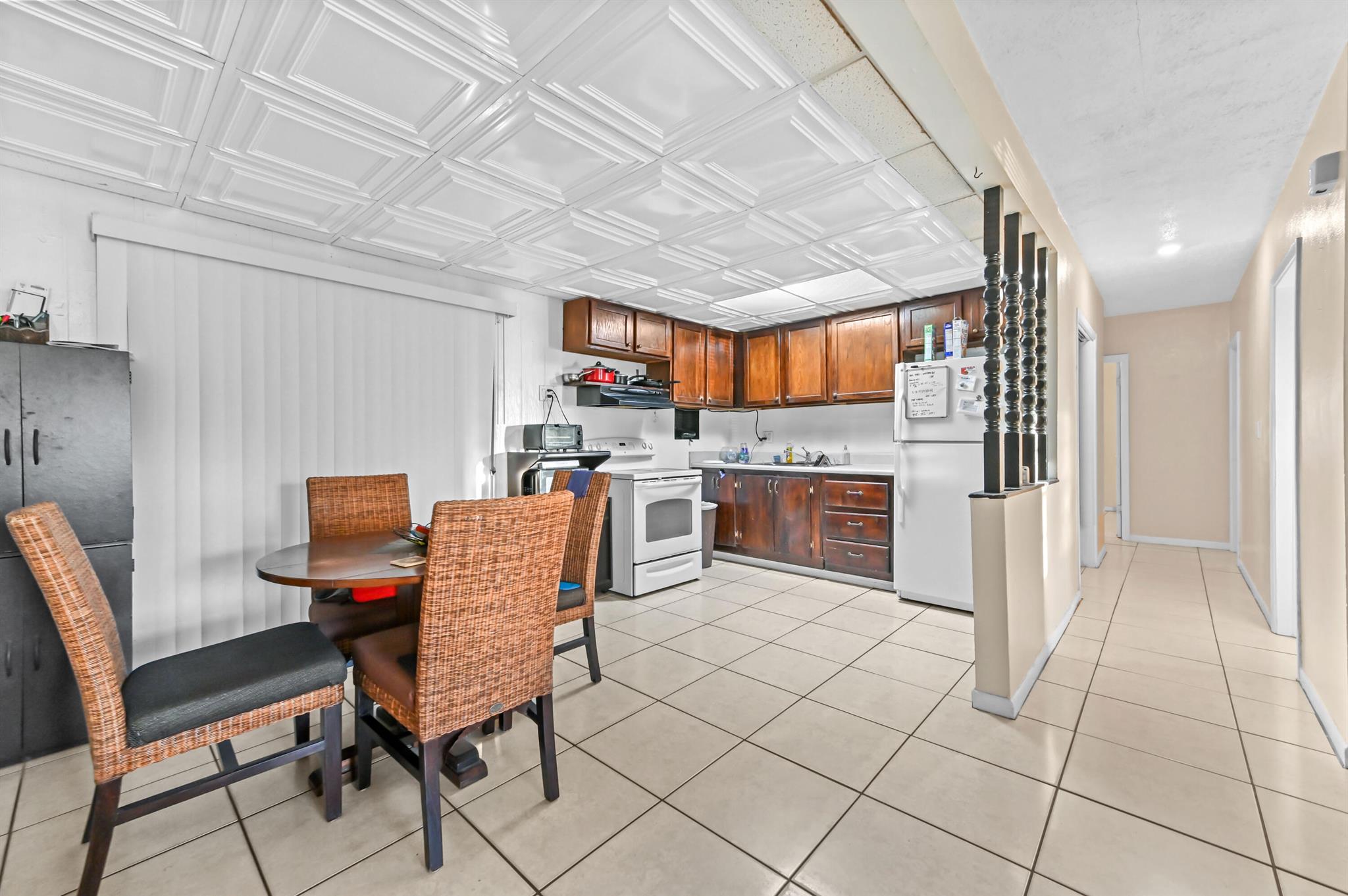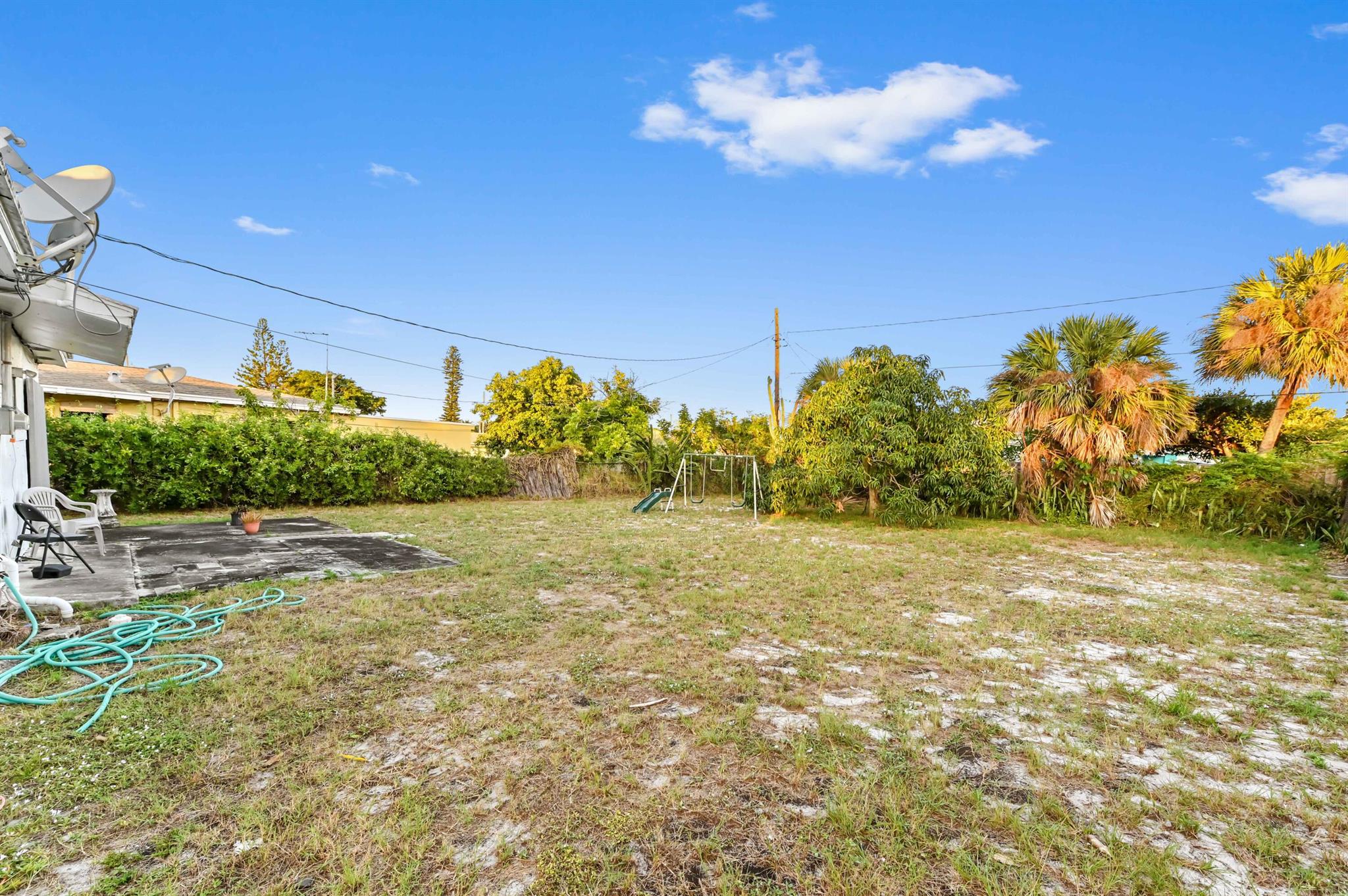 Welcome to this charming 1-story home in Whispering Palms on a huge lot, offering comfort, convenience, and no HOA. This cozy residence features 3 bedrooms and 1 bathroom. Enjoy easy maintenance with tile flooring throughout and a split bedroom layout for added privacy.The kitchen is equipped with essential appliances, including a fridge, microwave, range, and storage cabinets. A dedicated laundry area with a washer and dryer adds to the home's practicality.Step outside to a fenced backyard, providing a secure space for relaxation, pets, or entertaining. There is also ample room for a potential pool, offering great possibilities for future outdoor enhancements.Perfect for first-time buyers, downsizers or investors, this home is ready to welcome its next owner