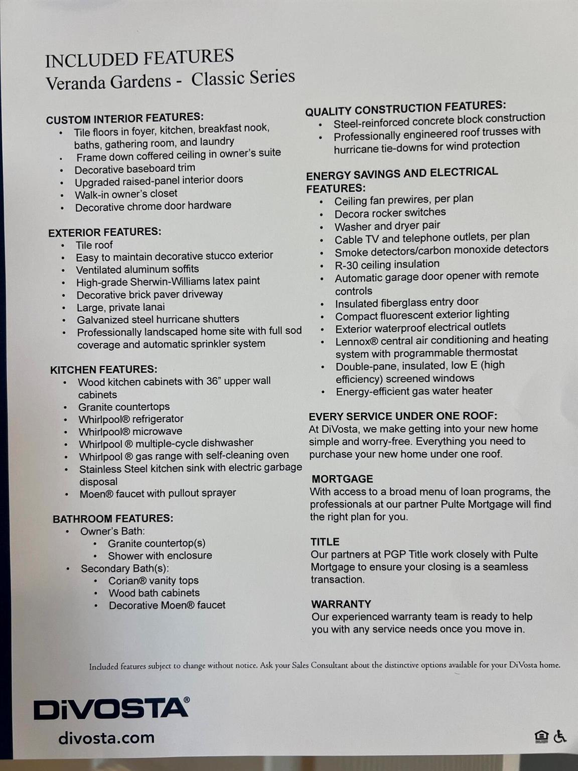 Here is your chance to own a beautifully upgraded 2 bedroom + flex room with doors that can be converted to a 3 bedroom and 2 bathroom home (over $48,000 in upgrades!) in the all ages community of Veranda Gardens situated on a private lot! No need to wait for new construction! This home is LIKE NEW. The backyard space is your private oasis here with the screened in covered patio, privacy landscaping, extended pavers and room for a POOL! Big general upgrades include: NEW PAINT (interior and exterior), fresh landscaping, NEW water heater (2025), insulated garage door, and recent roof pressure wash cleaning (2024). Inside the home there's a LONG list of upgrades: plantation shutters, crown molding, 5'' baseboards, and custom closets. The kitchen offers stainless steel appliances, nickel