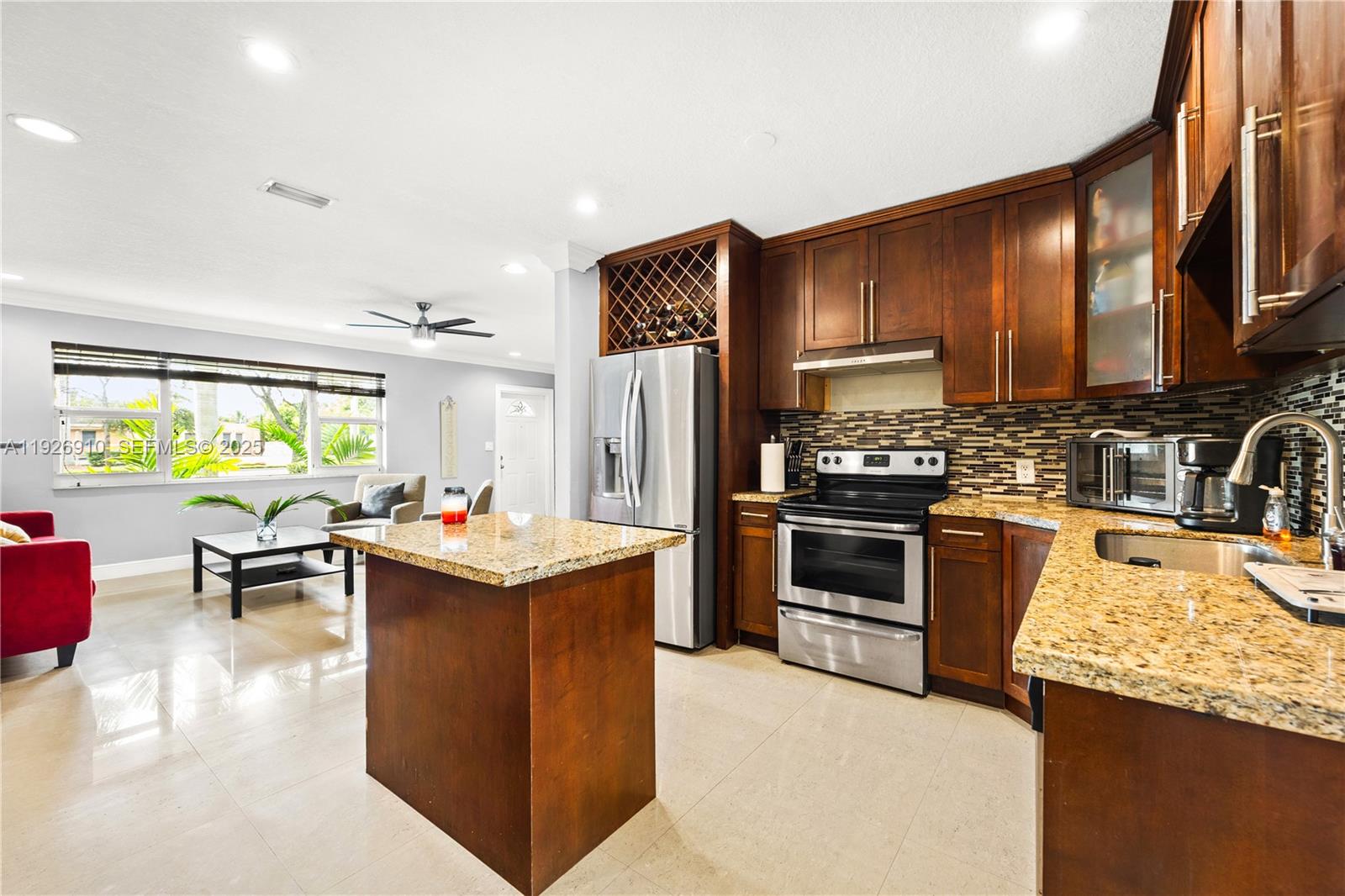 Welcome to this stunning home in Miami Gardens, offering 1,761 square feet under air with 4 bedrooms and 2 bathrooms. The property is cleaned weekly and kept in excellent condition. The upgraded kitchen features granite countertops, an extended layout for added comfort, and includes a wine cooler. The home has five hurricane-impact windows on the front and side, a 2020 roof, a 2016 A/C unit, a Titan tankless water heater, and appliances, including a 2020 refrigerator, a 2015 stove, and a 2015 dishwasher. The metal front door adds extra durability and security. The primary bedroom includes two closets, and the primary bathroom features a Jacuzzi tub. The home also has an attached laundry room with a stacked washer and dryer. Outside, you’ll find a pool with night lighting, a full sprinkler system, a large metal gazebo, and a spacious storage shed. NOTE - I AM NOT AVAILABLE ON THE SABBATH/SATURDAYS.