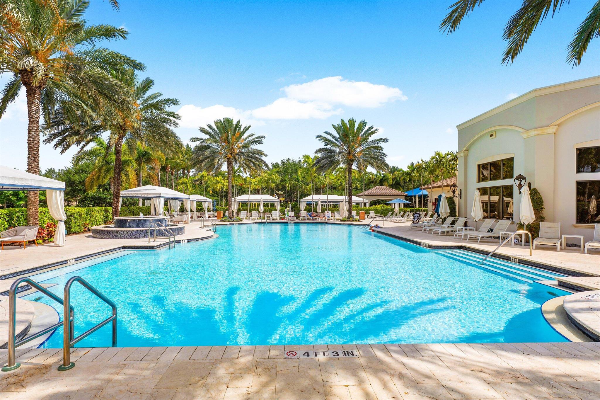 Experience elevated lakefront living in this exceptional single-story Venetian Model from the Coastal Collection, located in the prestigious gated community of The Bridges. This expanded residence welcomes you with a dramatic double-height foyer leading to a stately living room, formal dining room, and spacious family room. Marble flooring, volume coffered ceilings, and a custom wet bar create a refined and inviting atmosphere.Expansive windows showcase breathtaking lake and pool views, seamlessly blending indoor elegance with outdoor tranquility. The heated saltwater pool and spa are surrounded by lush landscaping and capture stunning sunset vistas across the approximate 1/3-acre lot.