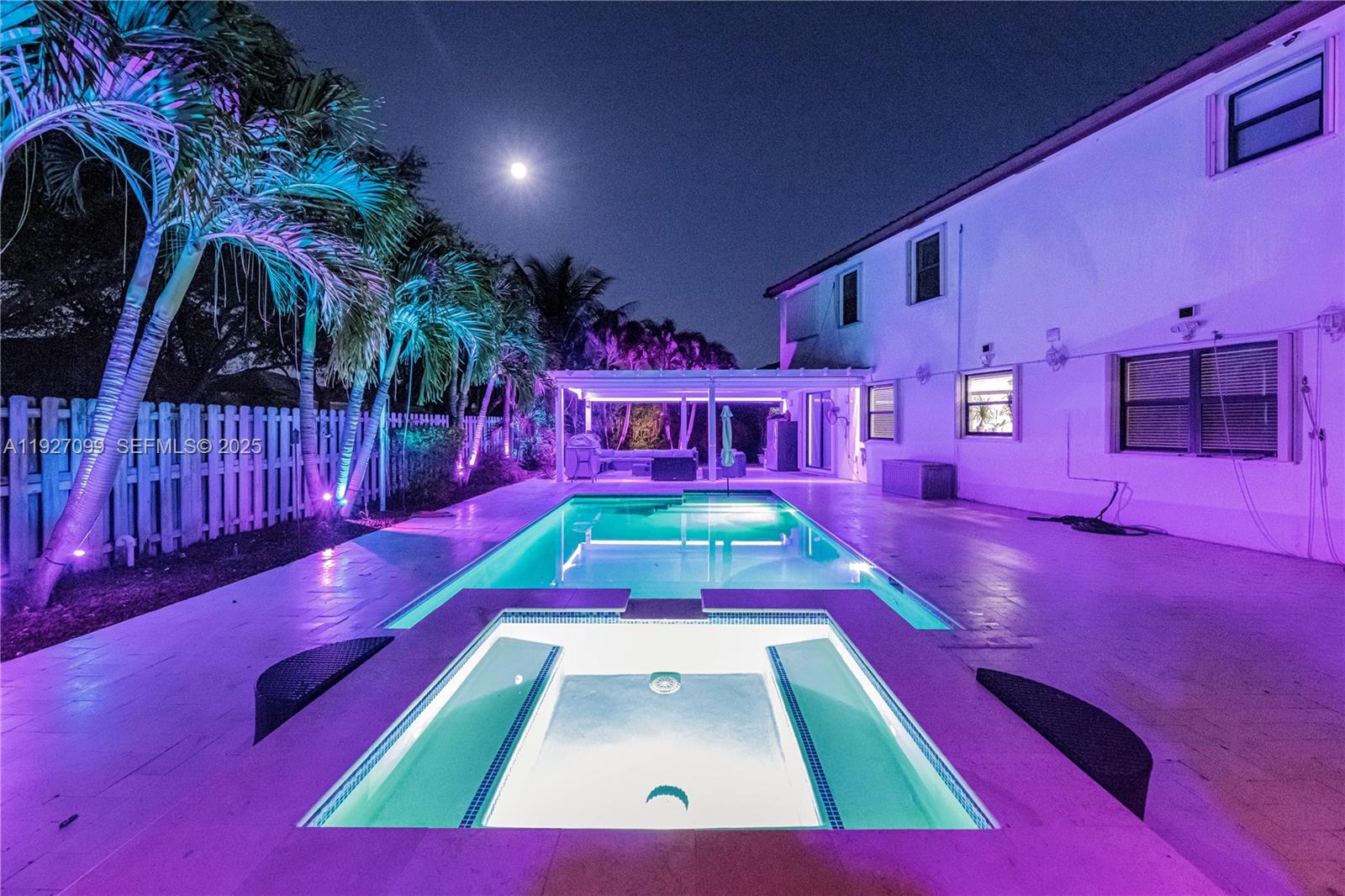 Discover the perfect blend of space, elegance, and resort-style living in this stunning two-story home set on an impressive 11,980 sq. ft. lot. Boasting a 3-car garage and an expansive driveway, this residence offers both comfort and convenience for families, entertainers, and those seeking elevated living. With 5 bedrooms, 4 bathrooms, and 4,320 sq. ft. of living area, there is truly room for everyone.Step inside to find a beautifully updated kitchen and two remodeled bathrooms, all completed in 2022 with modern finishes and thoughtful design. Wood stairs and contemporary light fixtures add a sophisticated touch, enhancing the home’s warm yet refined ambiance. The outdoor space is a true Florida oasis. Enjoy travertine flooring throughout the backyard, an aluminum terrace, and a charming wood gazebo perfect for gatherings. Relax in your private pool and Jacuzzi, equipped with colored lighting and a propane gas heater—ideal for evening dips or weekend fun. Additional upgrades include two water filtration systems, a sprinkler system, and accordion shutters throughout, ensuring comfort and peace of mind year-round. Located inside a secure gated community, residents enjoy top-tier amenities including a gym, playground, community pool, and splash water park—everything you need for a vibrant and active lifestyle. This exceptional property offers the perfect combination of luxury, functionality, and outdoor enjoyment—ready for its next owner to call home.
