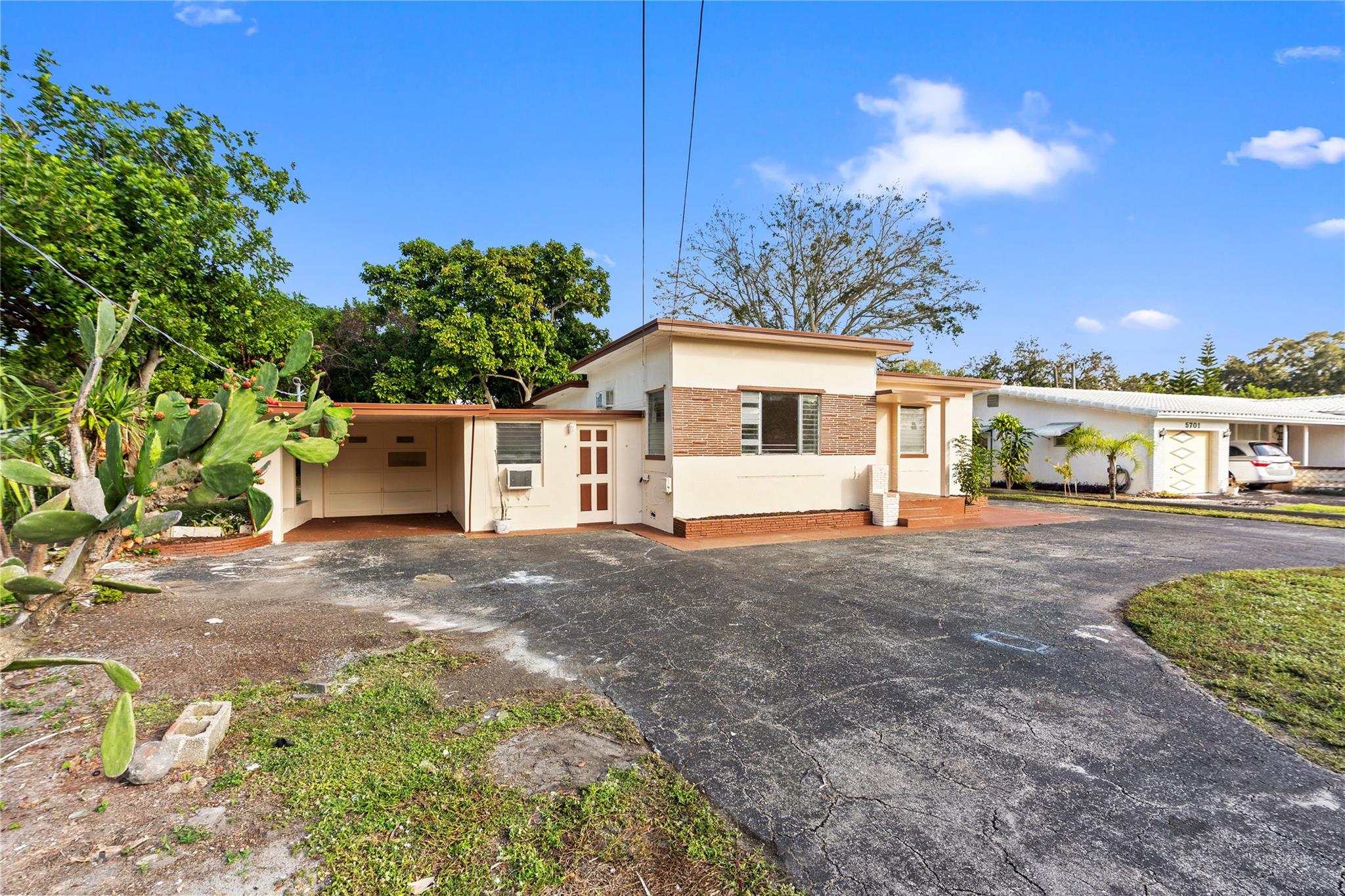 Welcome to 5705 Harding Street set on an oversized lot with a newer 1.5-year-old roof. This 2 bed, 2 bath home also includes an attached studio/efficiency ideal for guests or income. Features include a large U-shaped driveway, one-car garage used as a workshop, covered carport, and ample parking. The spacious backyard offers endless potential. NO HOA. Home needs some TLC, giving buyers the chance to add personal touches. Conveniently located near schools, shopping, dining, parks, and just 10 minutes to the Hard Rock Hotel & Casino, 5 minutes to I-95, 8 minutes to the FL Turnpike, 12 minutes to Fort Lauderdale International Airport, and 15 minutes to Hollywood Beach.
