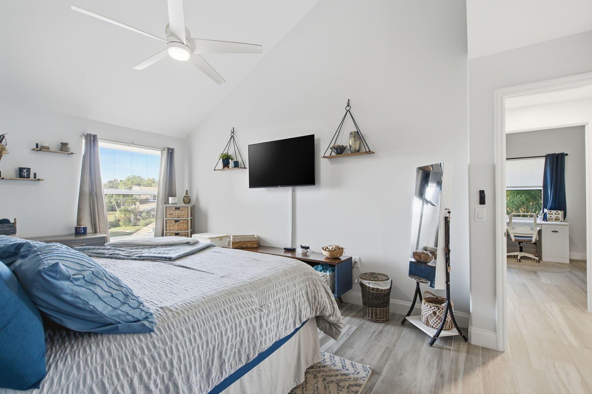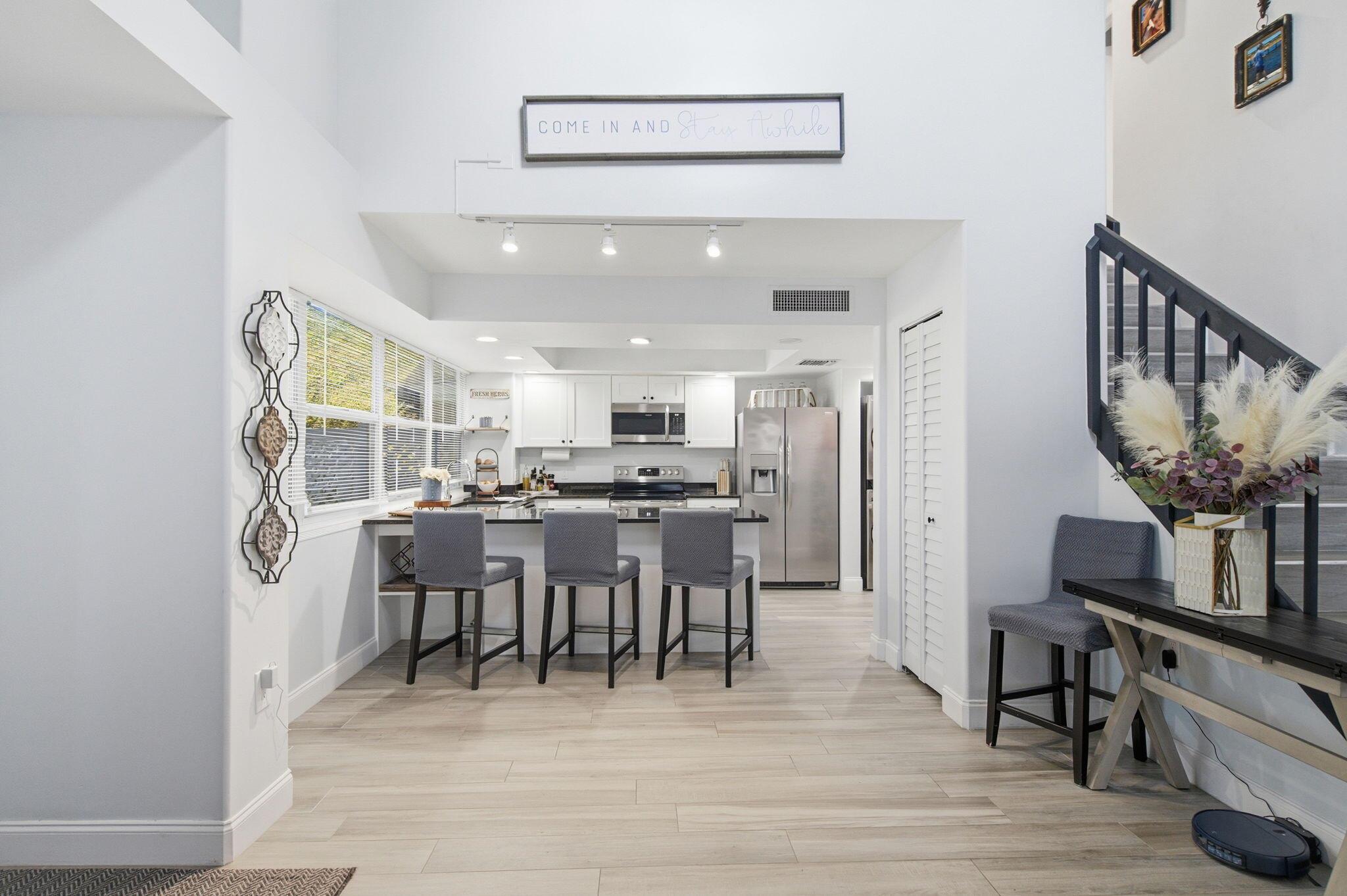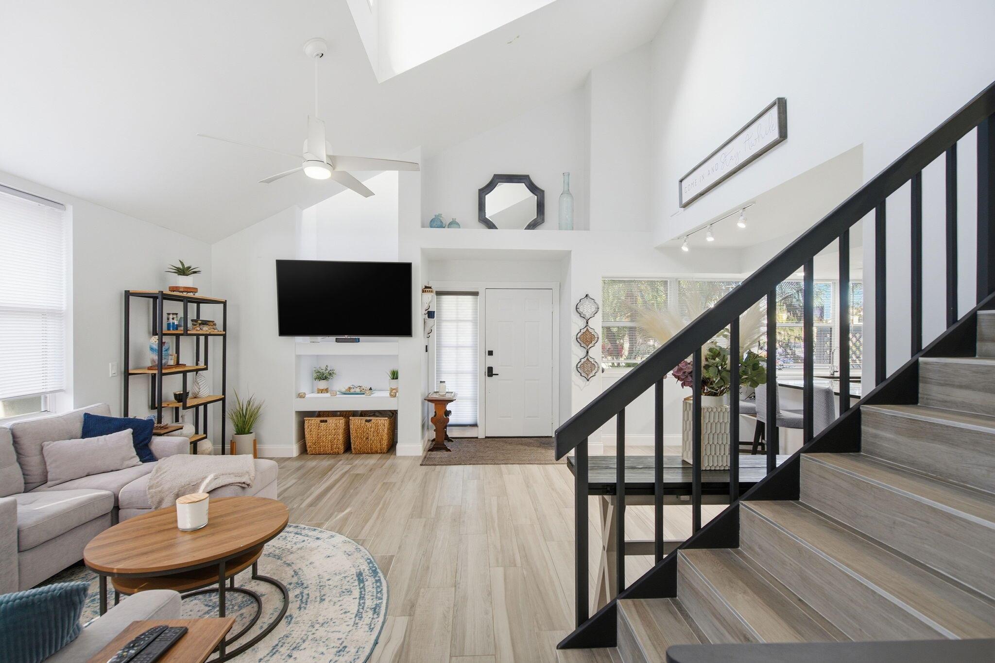 Step inside this fully remodeled and thoughtfully reconfigured Wellesley townhome in Sunset Trace. This one of a kind 3-bedroom layout offers a modern, open feel with smooth ceilings, tile flooring, and a dedicated primary suite for added privacy and comfort. The kitchen and bathrooms have been updated with contemporary finishes, newer appliances, and smart design choices that maximize space and function. Accordion shutters upstairs provide peace of mind, while a new roof adds major value. With a beautifully redesigned floorplan, turnkey condition, and a price point under $300K, this home stands out as one of the community's most impressive offerings. Perfect for anyone looking for style, convenience, and low-maintenance living in a prime location. Located in Palm City