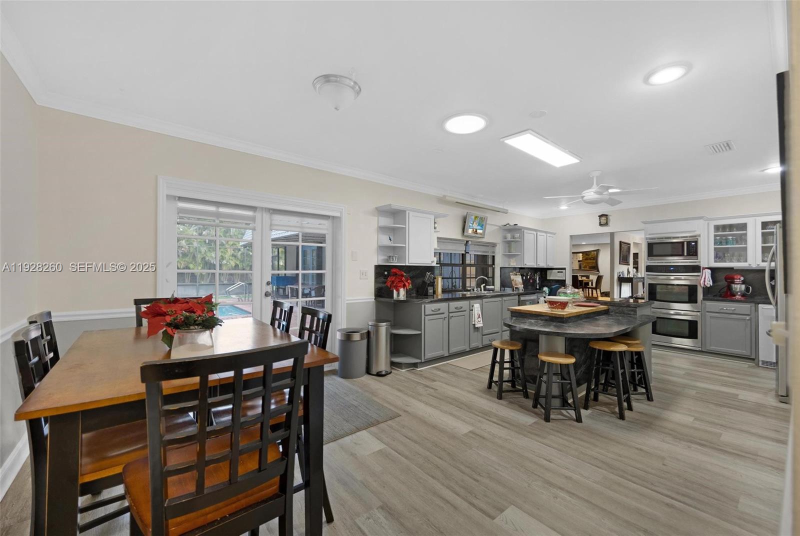 Tucked away at the end of a quiet cul-de-sac, this spacious 5BR/3.5BA pool home sits on nearly half an acre with no HOA and over 3,500 sq ft under air. The flexible tri-split floor plan offers an oversized primary suite with a spa-like bath and two walk-in closets, a junior suite for guests, plus additional bedrooms that give everyone their own space. At the heart of the home is a true chef’s kitchen with a huge pantry, coffee bar, ice maker, reverse osmosis system, and cooking island, opening directly to the pool and patio for easy entertaining. A double-sided fireplace anchors the formal and family living areas, complemented by custom cabinets and built-ins throughout, a dedicated office/den, and a 2-car garage with A/C storage. Outside, enjoy a screened pool with detached spa, summer kitchen with beverage fridge and sink, pavered driveway, and generous parking with room for boat/RV (buyer to verify). A rare combination of space, privacy, and comfort in Homestead—ready for your next chapter.