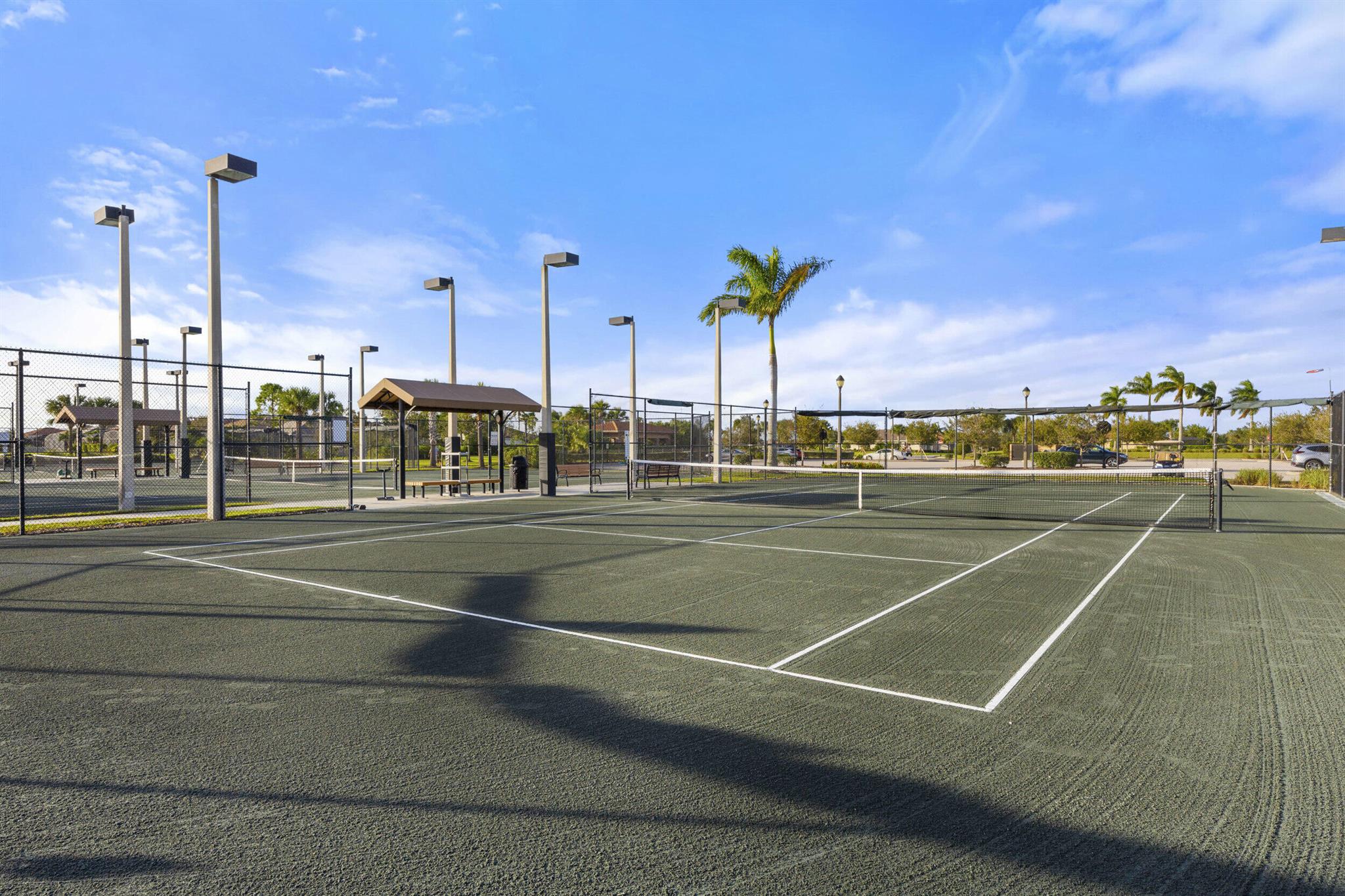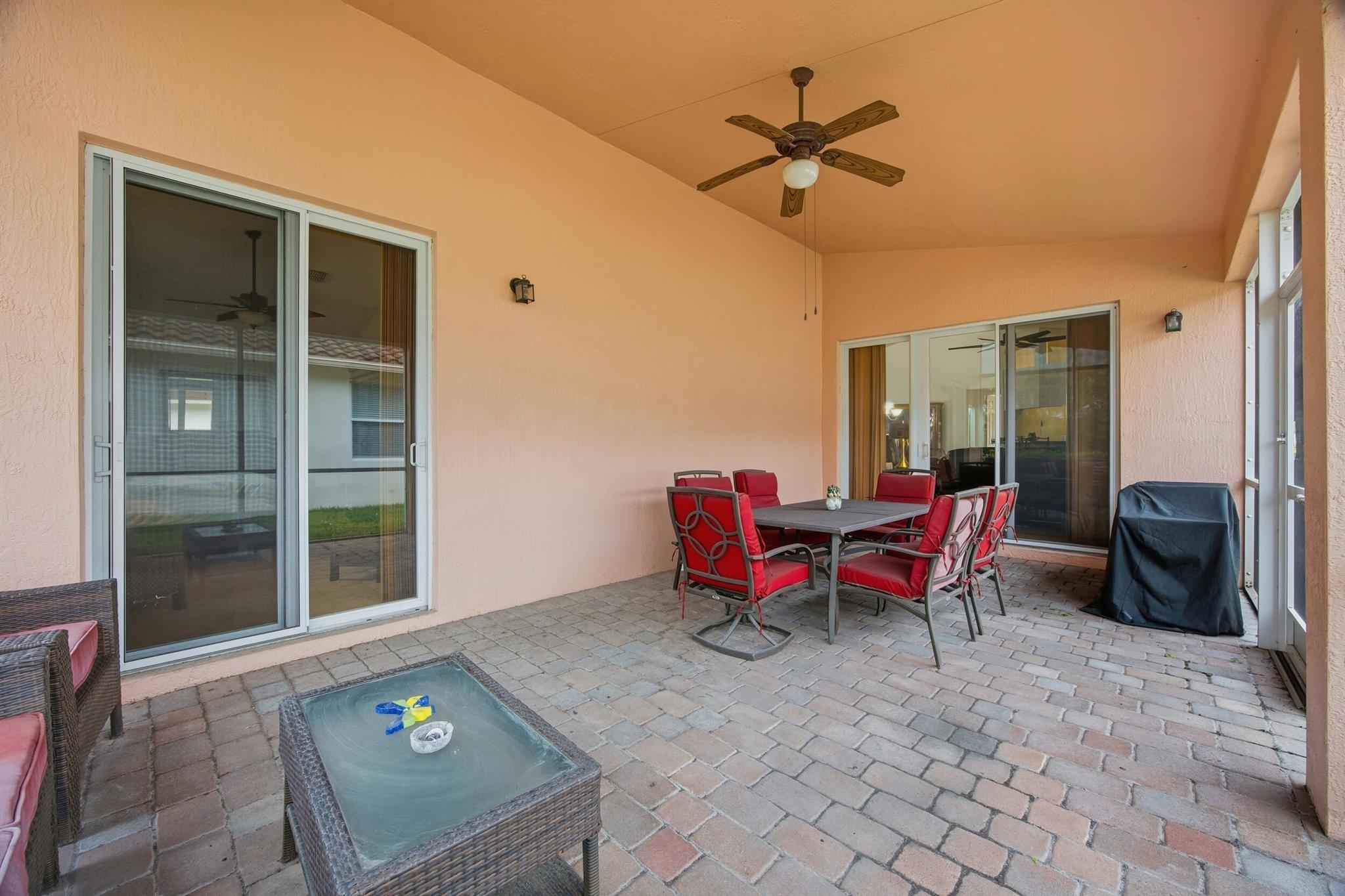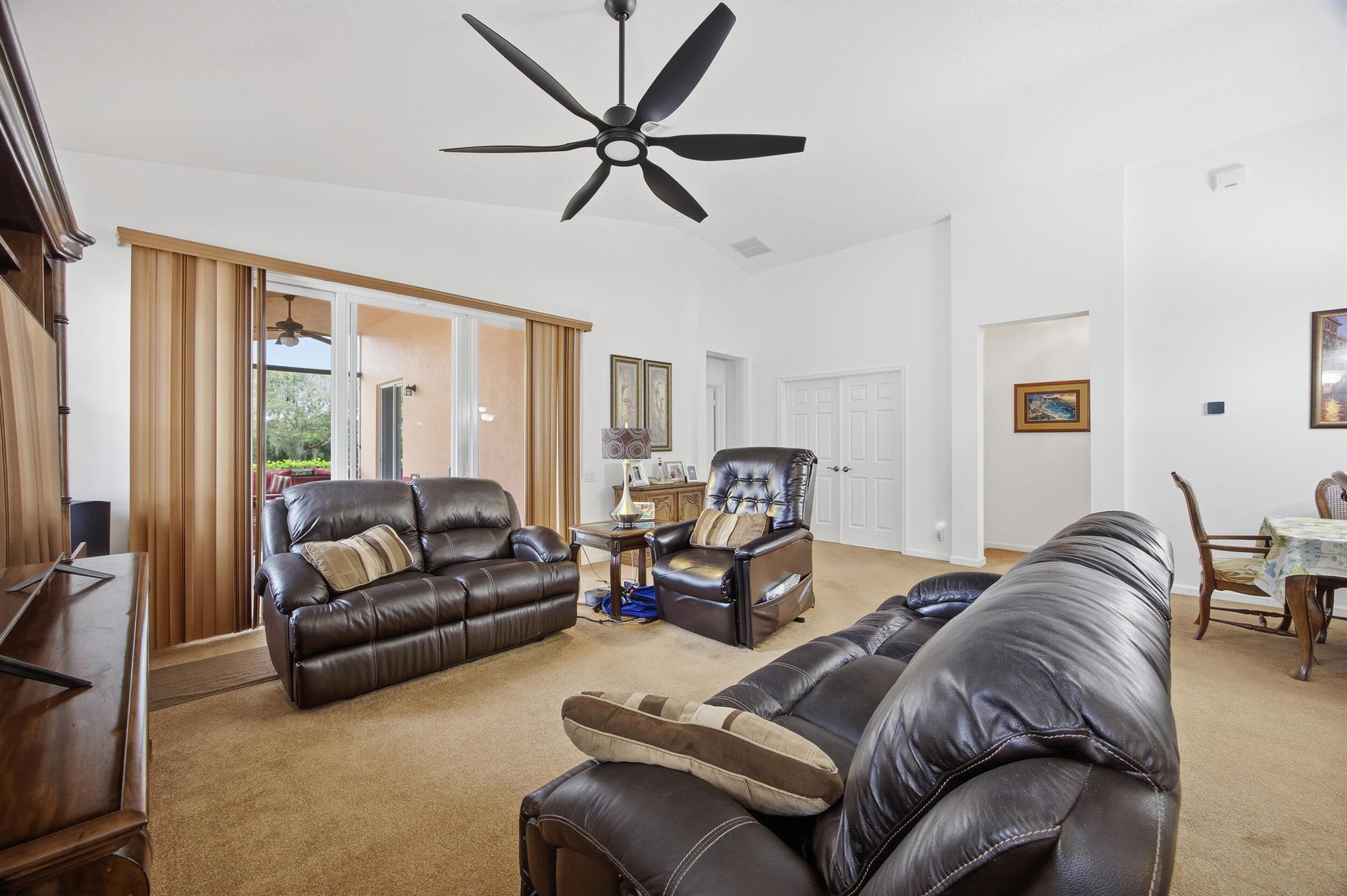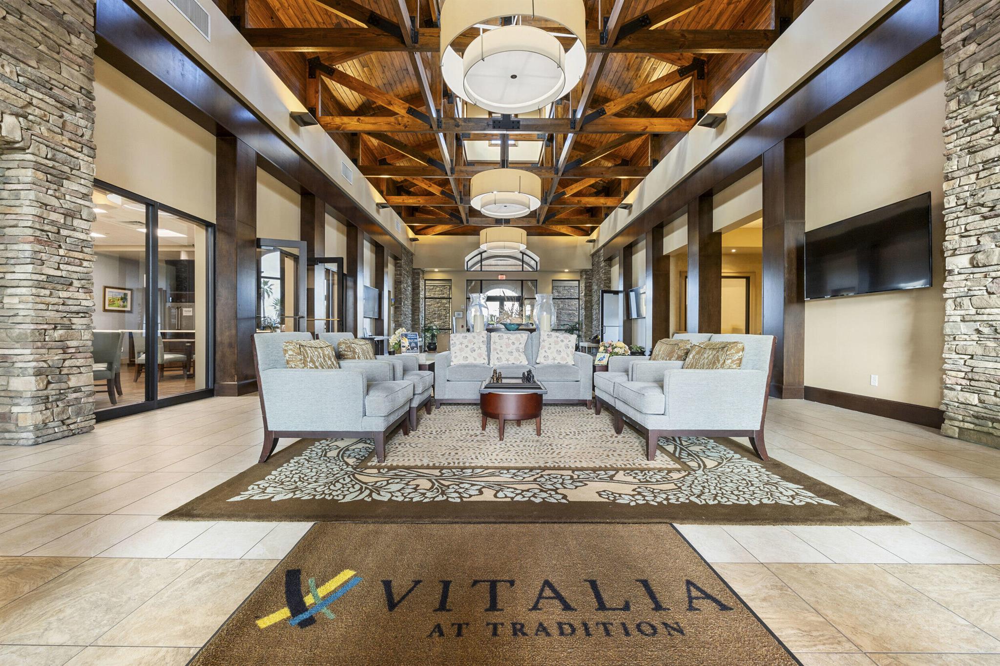 Vitalia at Tradition. Vitalia is an over 55 resort style community. 2 bedroom PLUS den and 2 car garage. Eat in kitchen offers granite counters, wood cabinetry , snack bar and gas range. AC 2025. Tankless water heater 2025. Large primary suite includes 2 walk in closets and access to screened in patio. Walk in shower and soaking tub. Impact hurricane windows. Custom garage flooring and custom storage cabinets. Covered and screened 25x13 patio. 24 hr manned gate.Community offers 24,000 ft clubhouse, tennis, pickle ball, pool, cabanas, fitness center, library, card rooms, computer room and many clubs and classes. HOA fee included cable, internet, security, lawn, sprinkler repair, mulching & tree trimming .