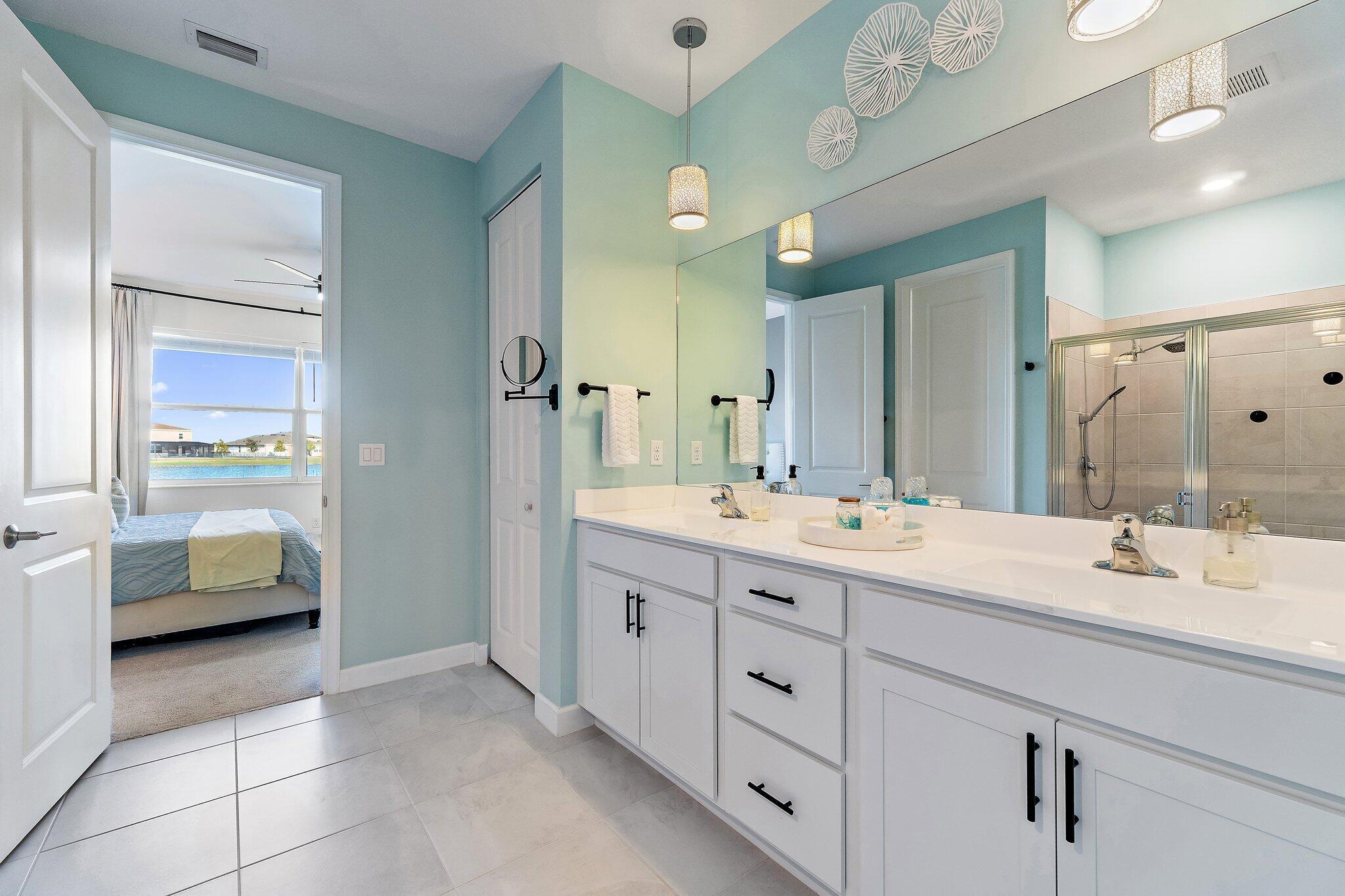Welcome to your Copper Creek dream home! This one-level Lincoln model offers 4 bedrooms plus a den/office on a stunning lakefront lot. Upgrades include a freshly painted interior, motion-sensor lighting, zoned irrigation, a sealed driveway, stamped patio, and UV-C air-quality enhancement. Enjoy an open floorplan with split bedrooms, a chef's kitchen with stainless appliances, quartz counters, elegant fixtures, and a large walk-in pantry with custom door. The spacious great room flows into the dining area and is thoughtfully designed for entertaining. The owner's suite features lake views, dual sinks, and a walk-in closet. Fully fenced large backyard with room for a pool. Enjoy lake views and sunsets under the pergola! A rare 3-car garage and extended paver driveway provide ample parking.
